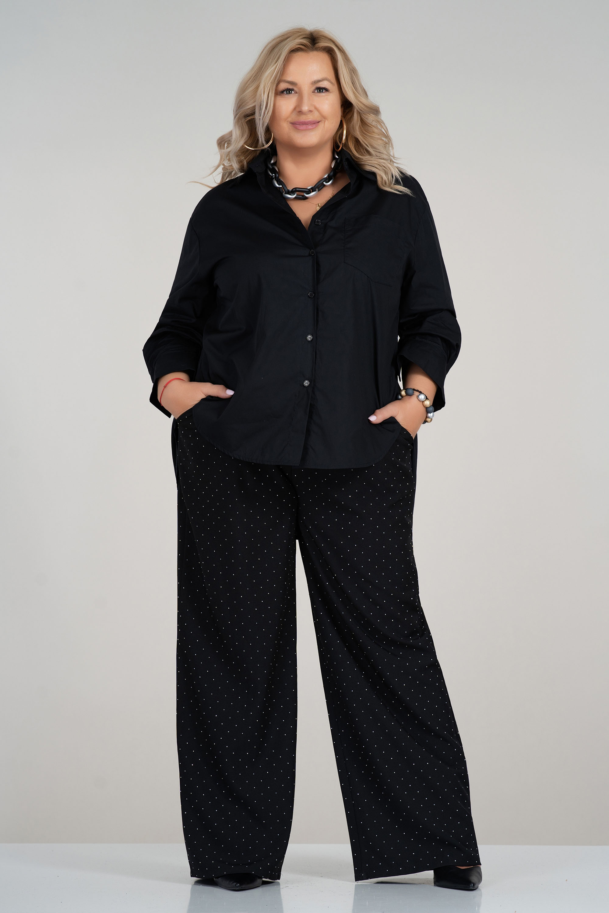 МАКСИ черна макси риза от памук с джоб и класическа яка