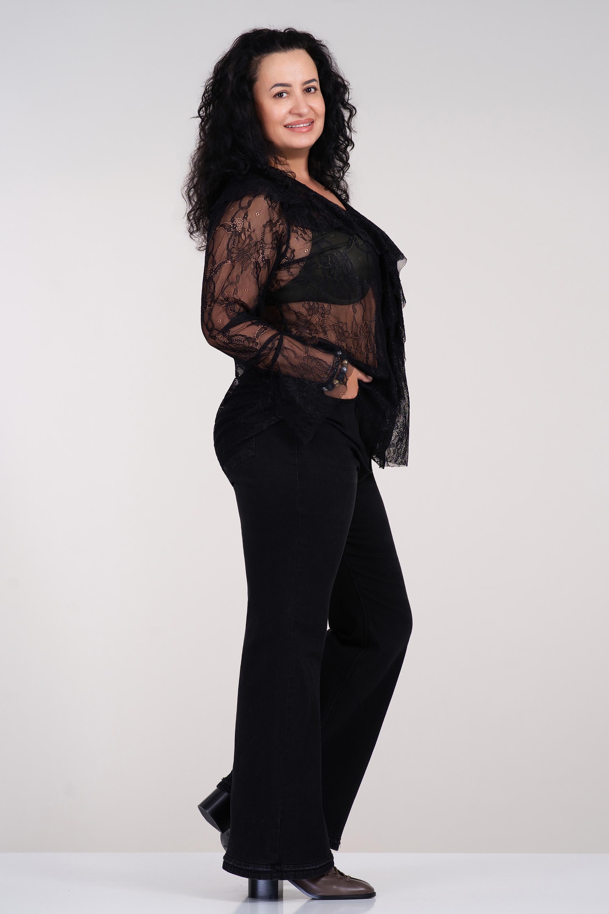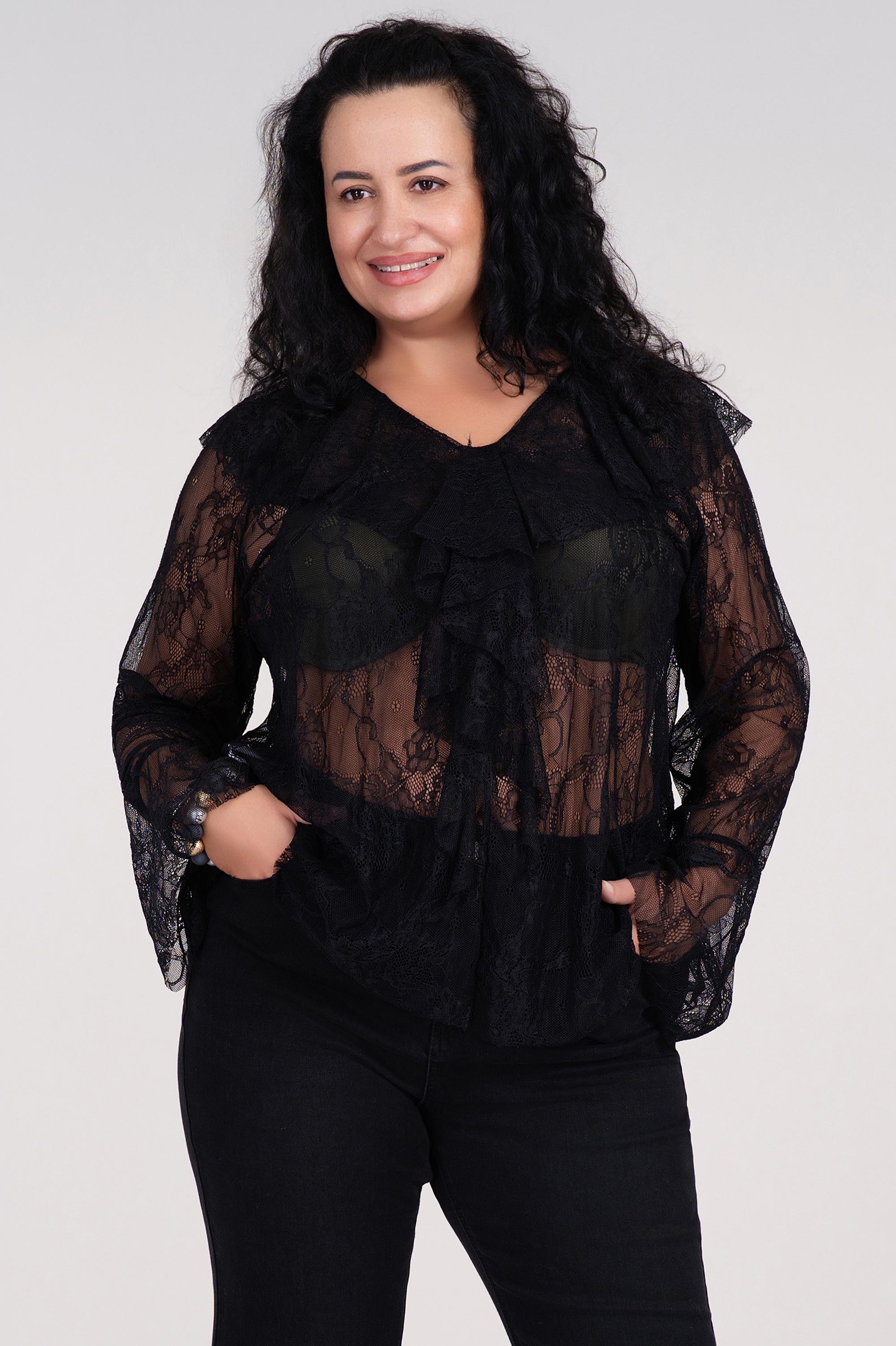 МАКСИ дантелена блуза в черно с ефектна харбала
