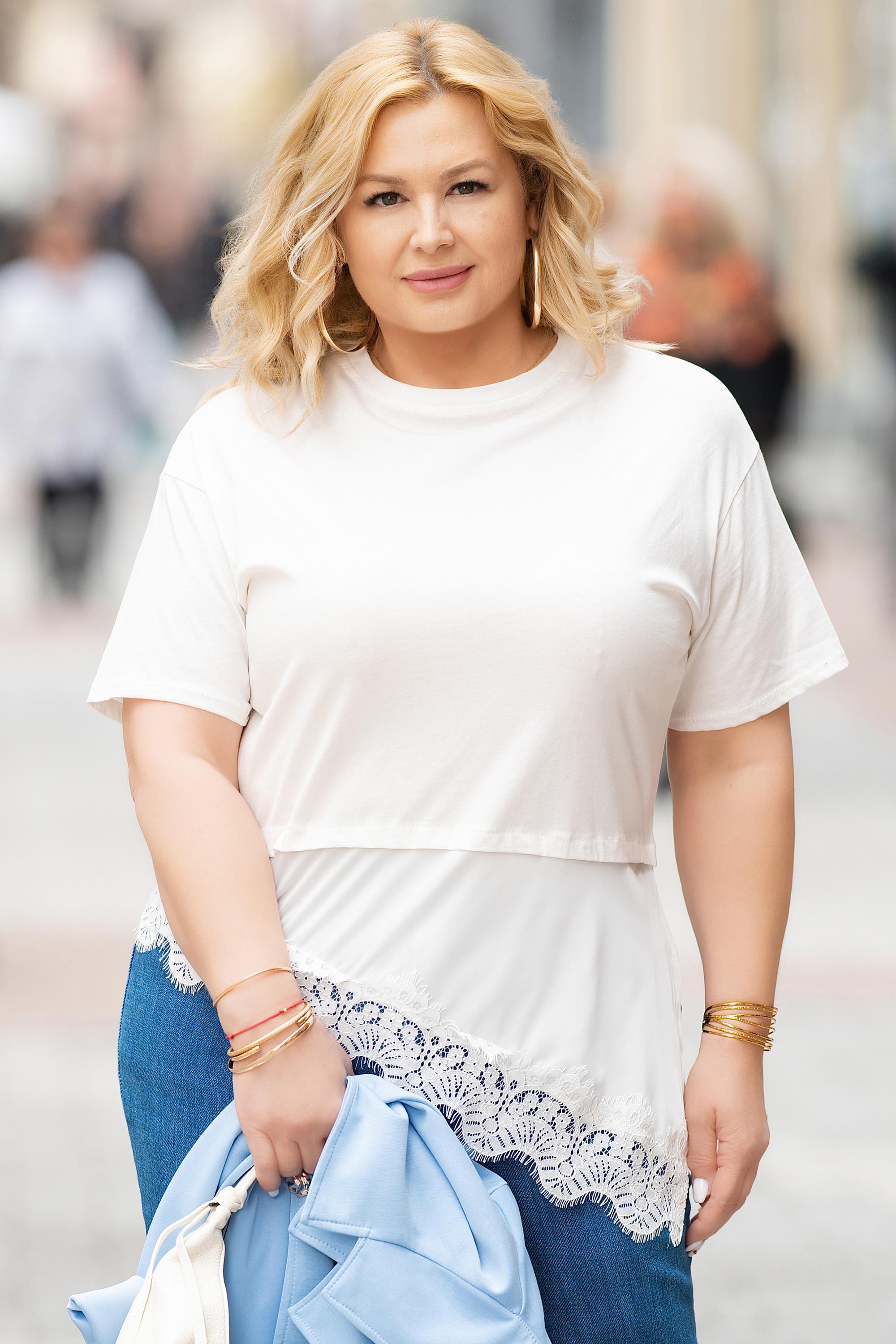 МАКСИ дълга блуза в бяло с прешит сатенен плат и кант рязана бродерия