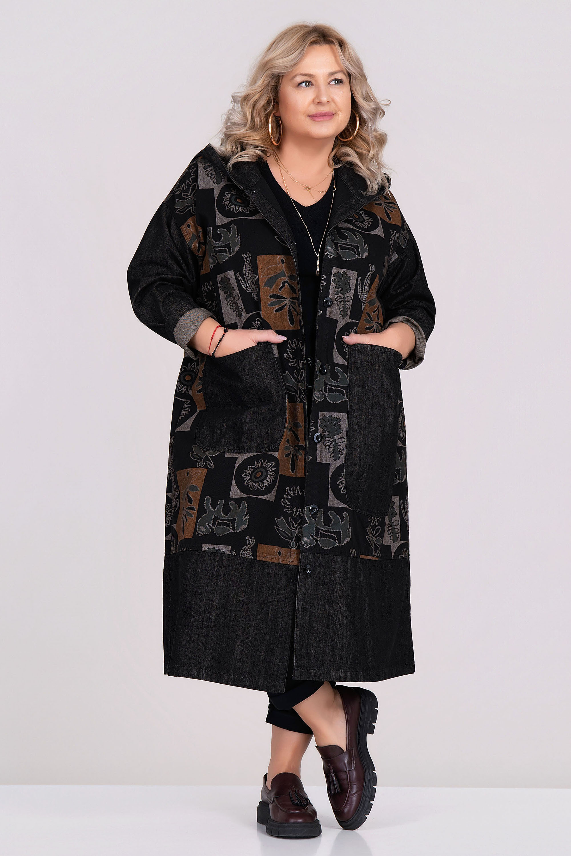 Комфортно и модерно, това макси яке е изработено от висококачествен деним с ефектен принт. Кройката е свободна и удължена – подходяща за есенните дни и лесна за комбиниране с по-дебели пуловери. Двата предни джоба и качулката добавят практичност, а копчетата по цялата дължина осигуряват удобство при носене. Подходящо за ежедневието и градска визия.