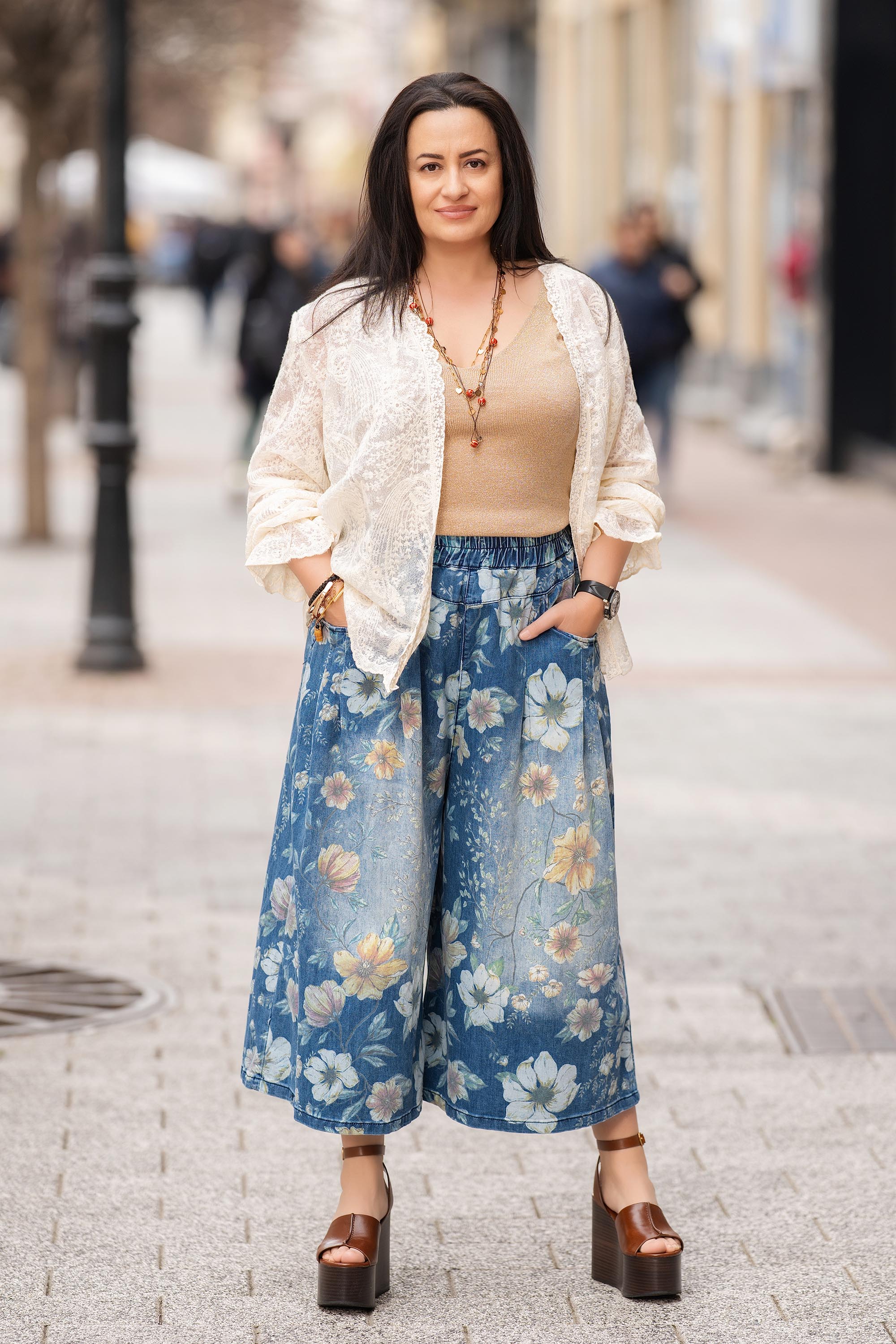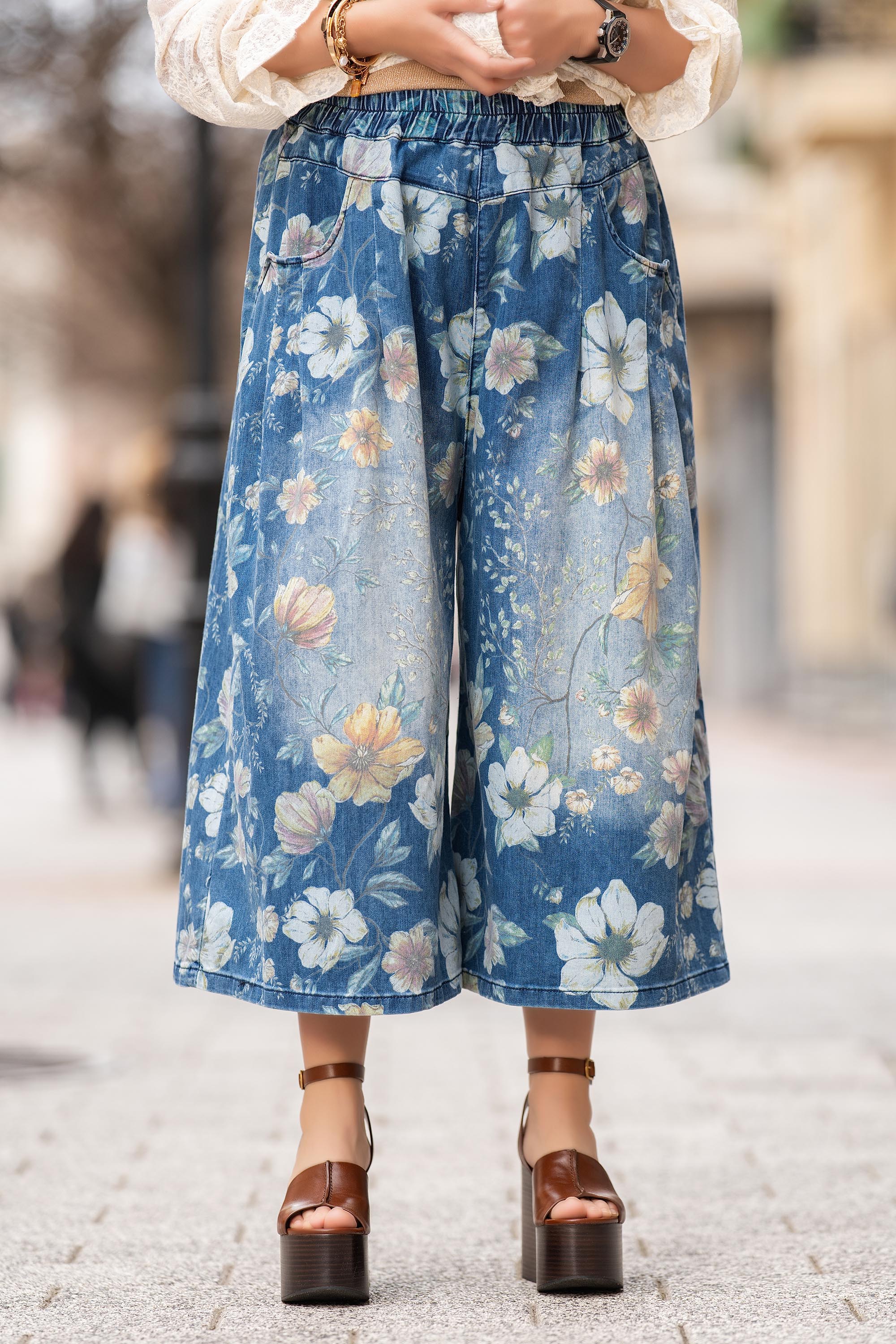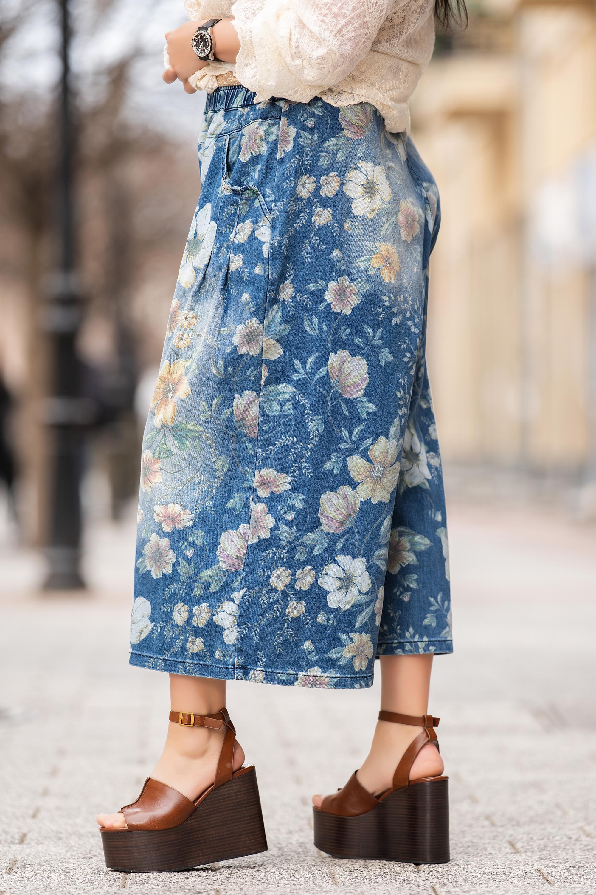 Свежо попълнение за пролетно-летния гардероб, тези дънки "Dragonfly" впечатляват с артистичен флорален принт и комфортна кройка. Изработени от мек деним с еластичност, те са със свободни с широки крачоли в модерен 7/8 силует. Ластикът на талията и страничните джобове добавят практичност и ежедневен комфорт. Подходящи за небрежна визия с риза, топ или тениска.
