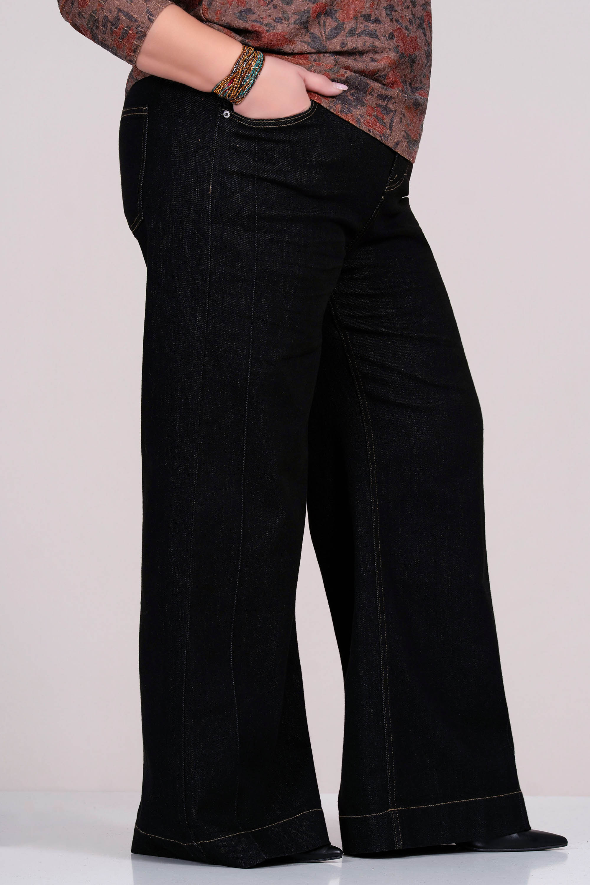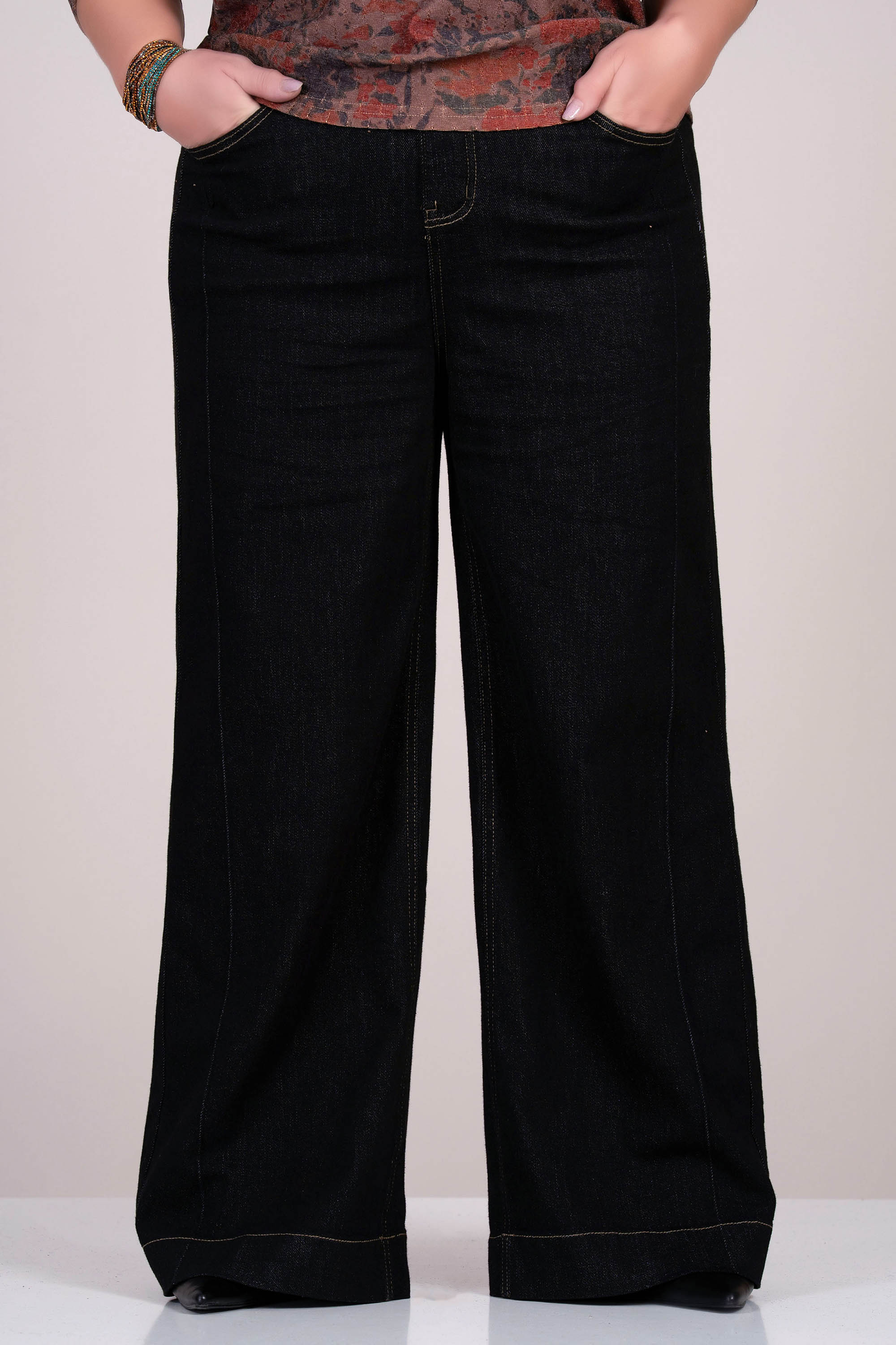 МАКСИ дънки в черно с широки крачоли и ластик в талията