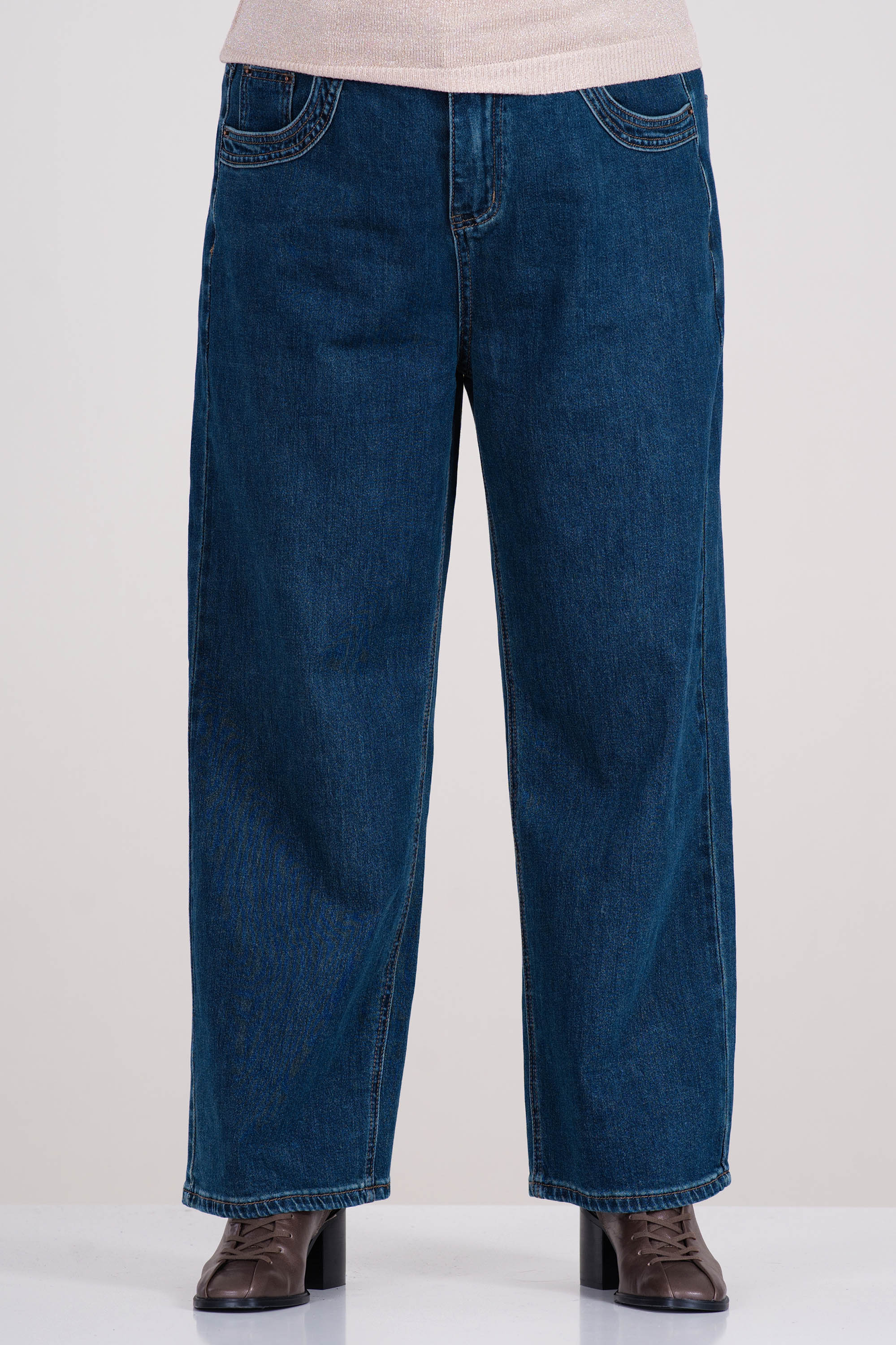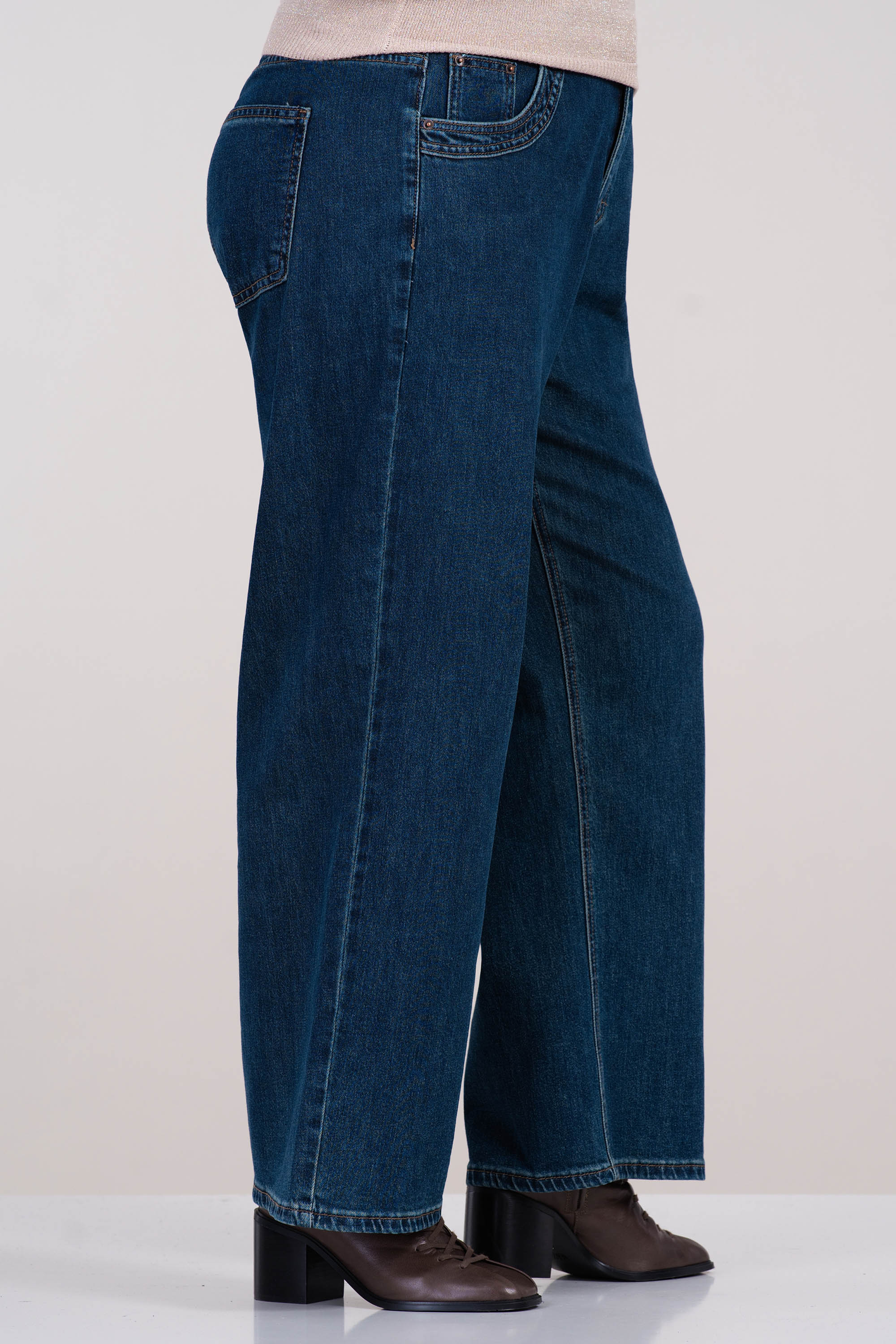 МАКСИ дънки в синьо с еластична талия и права кройка