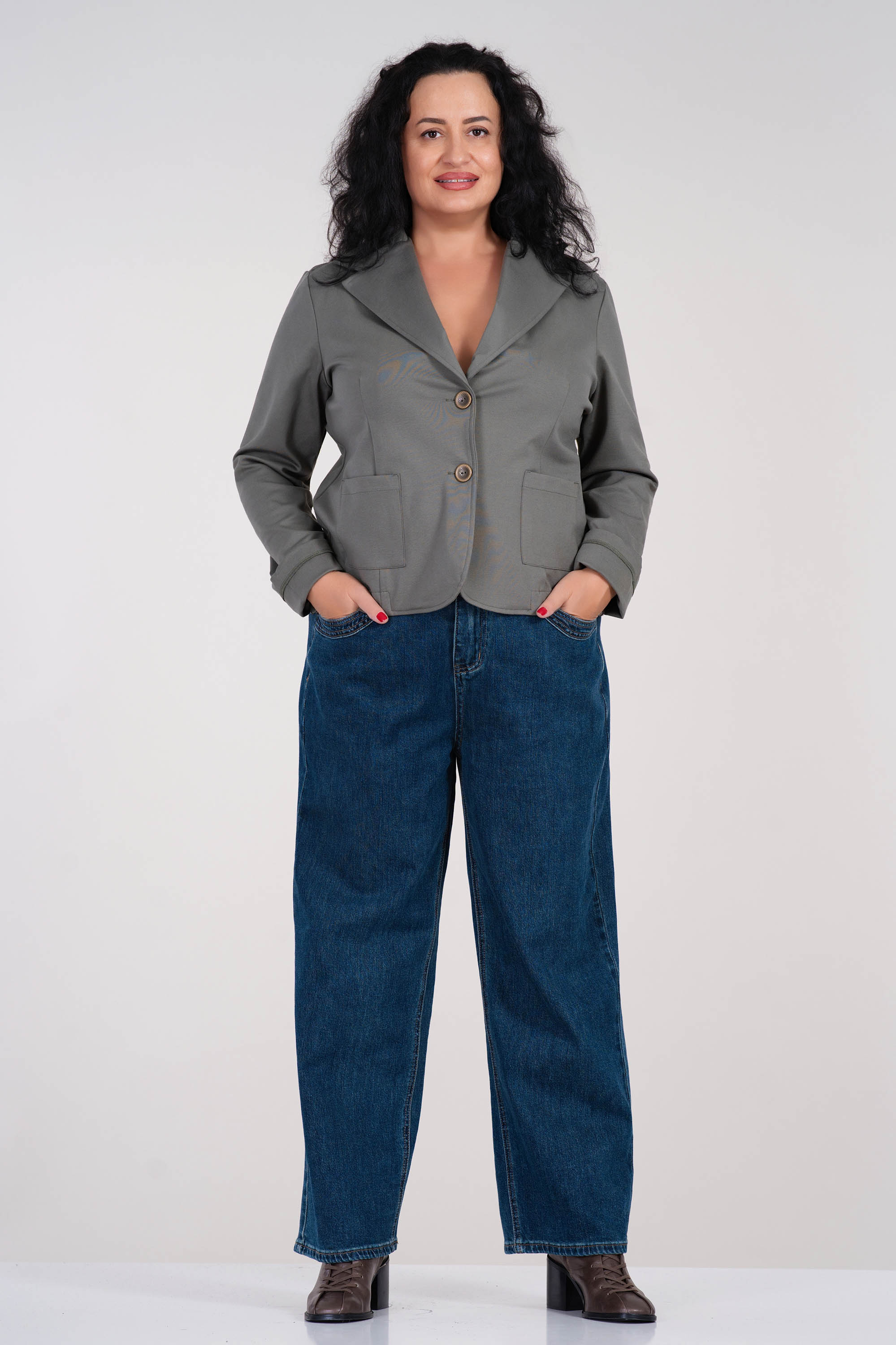 Моделът е висок 165см. и е облечен с размер 46/48