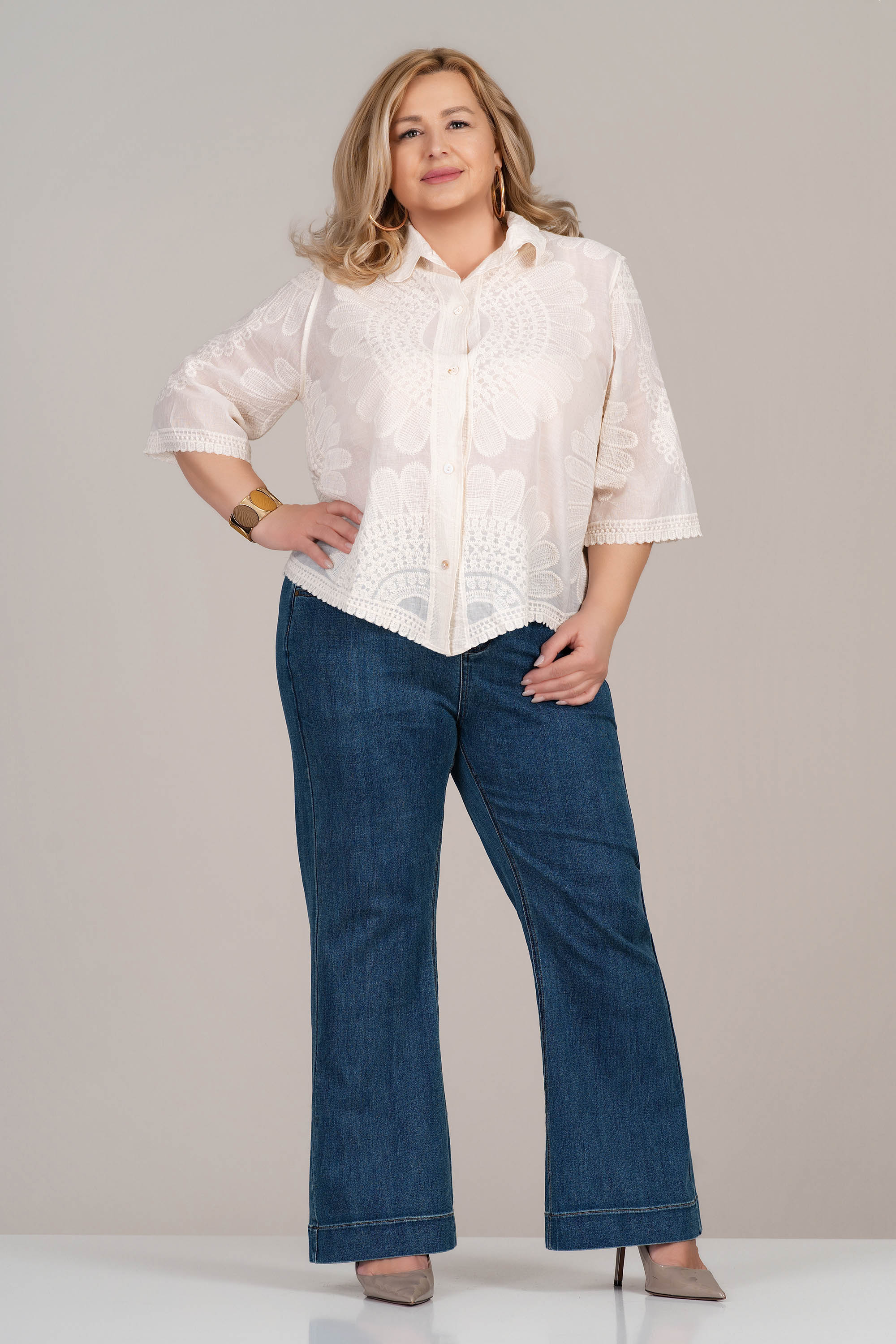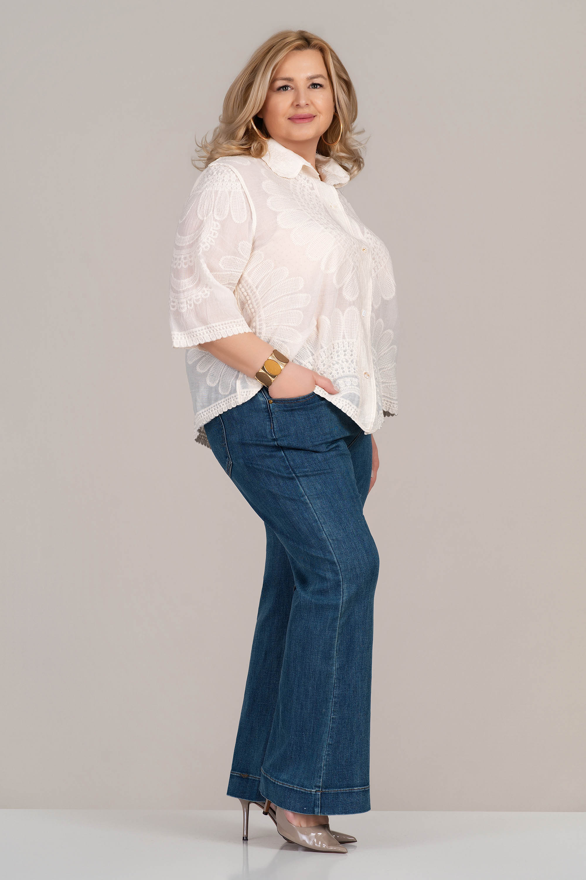 Макси дънки в синьо с разркоен рачол и ластик в талията