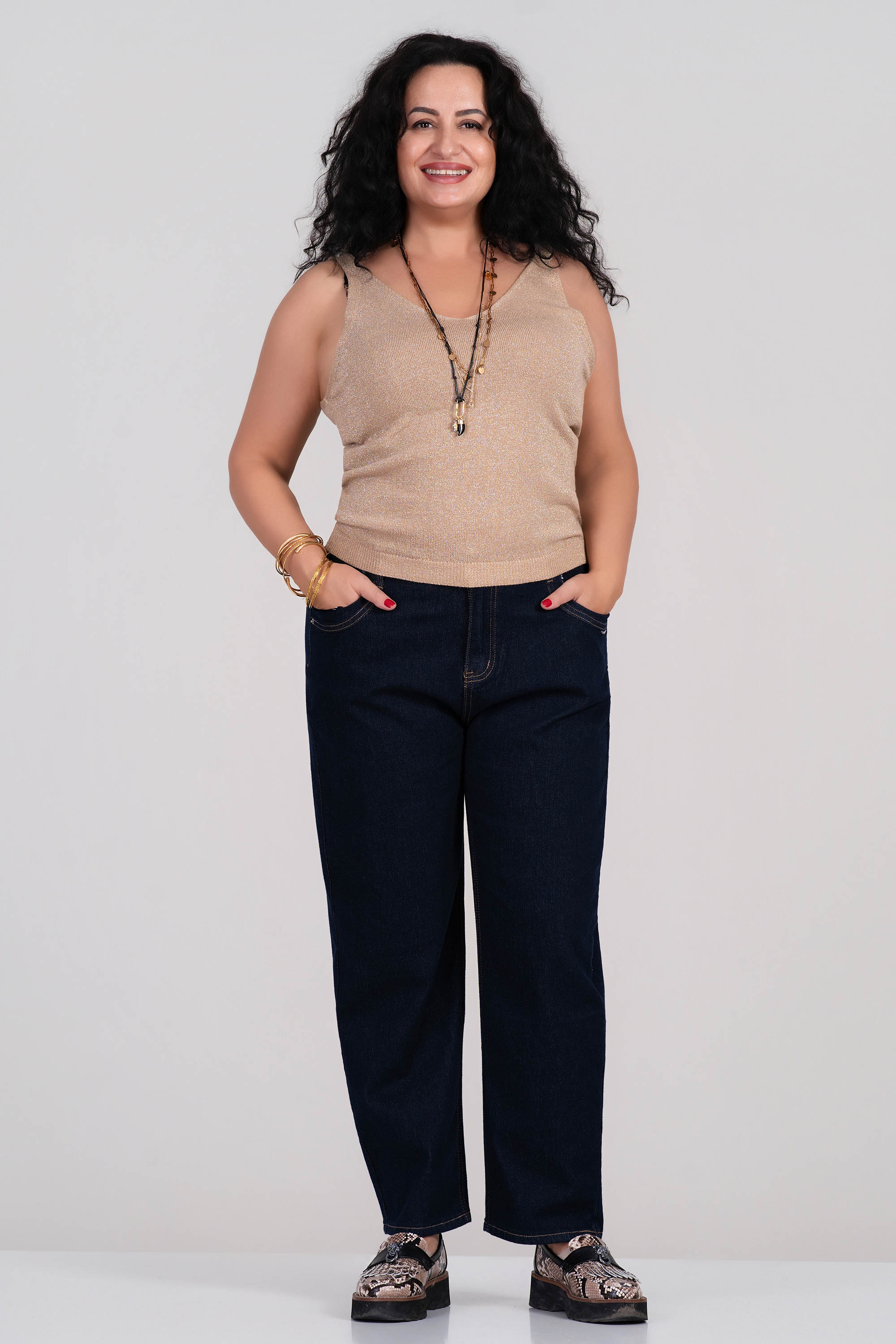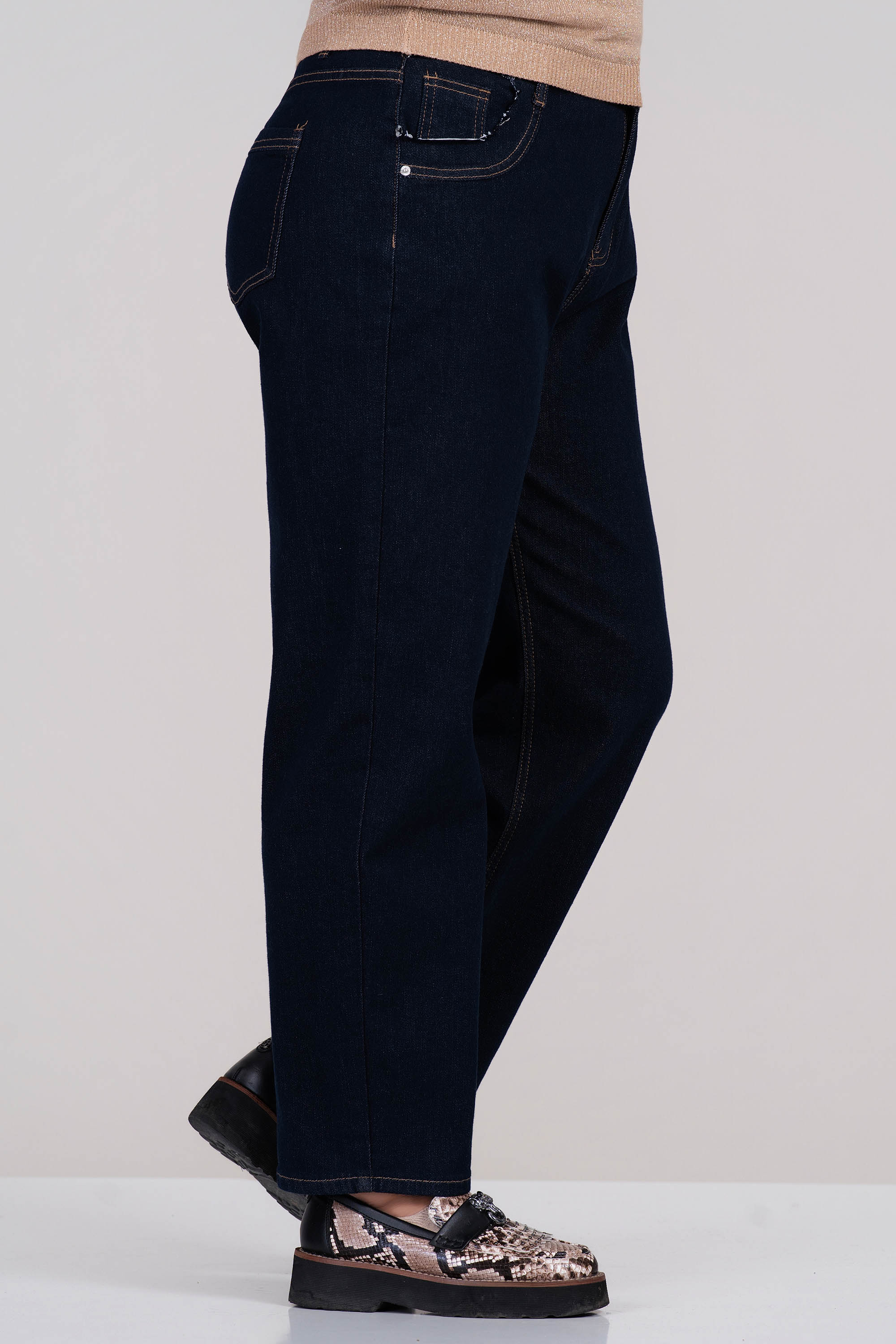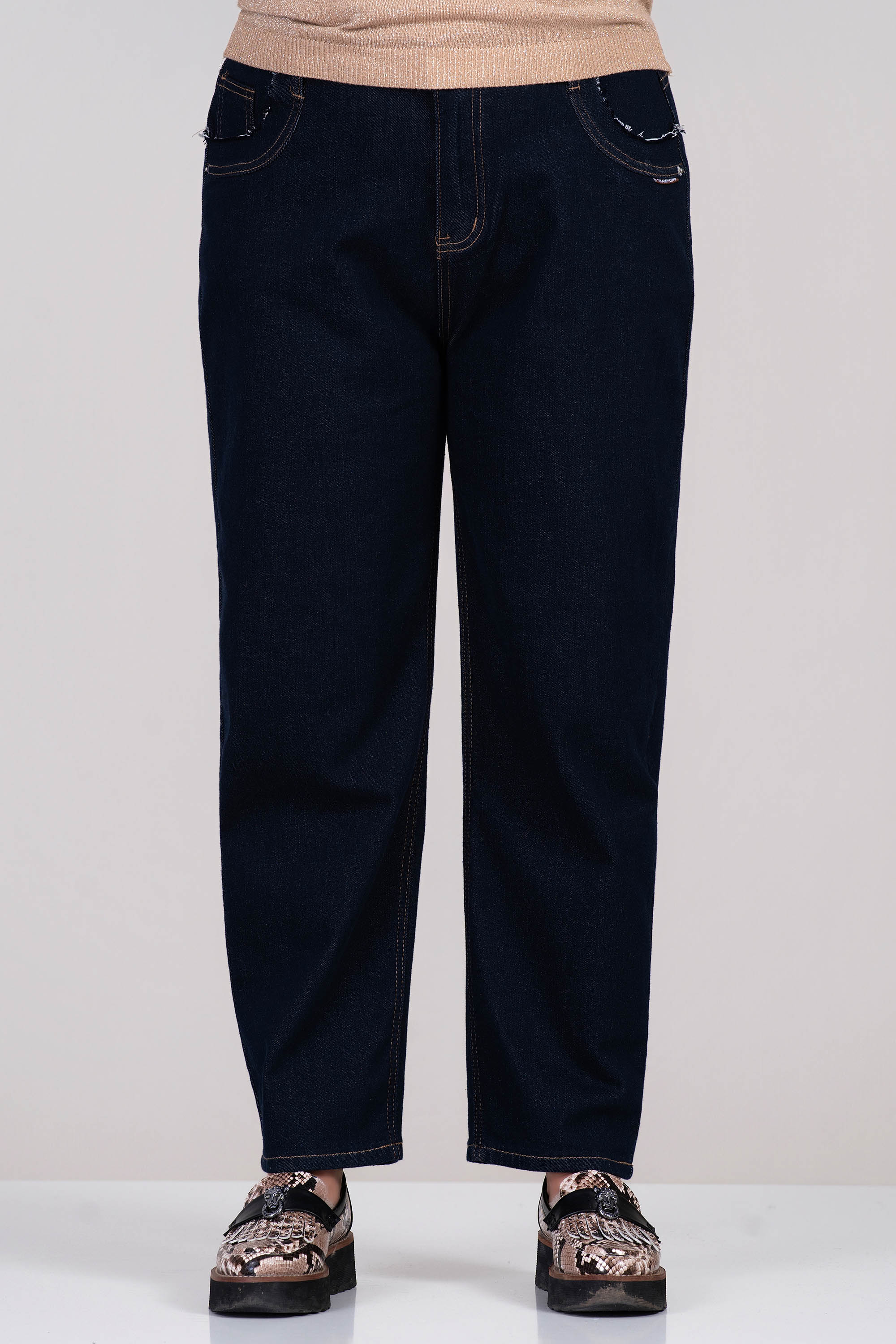 МАКСИ дънки в тъмносиньо с накъсан ефект по предните джобове