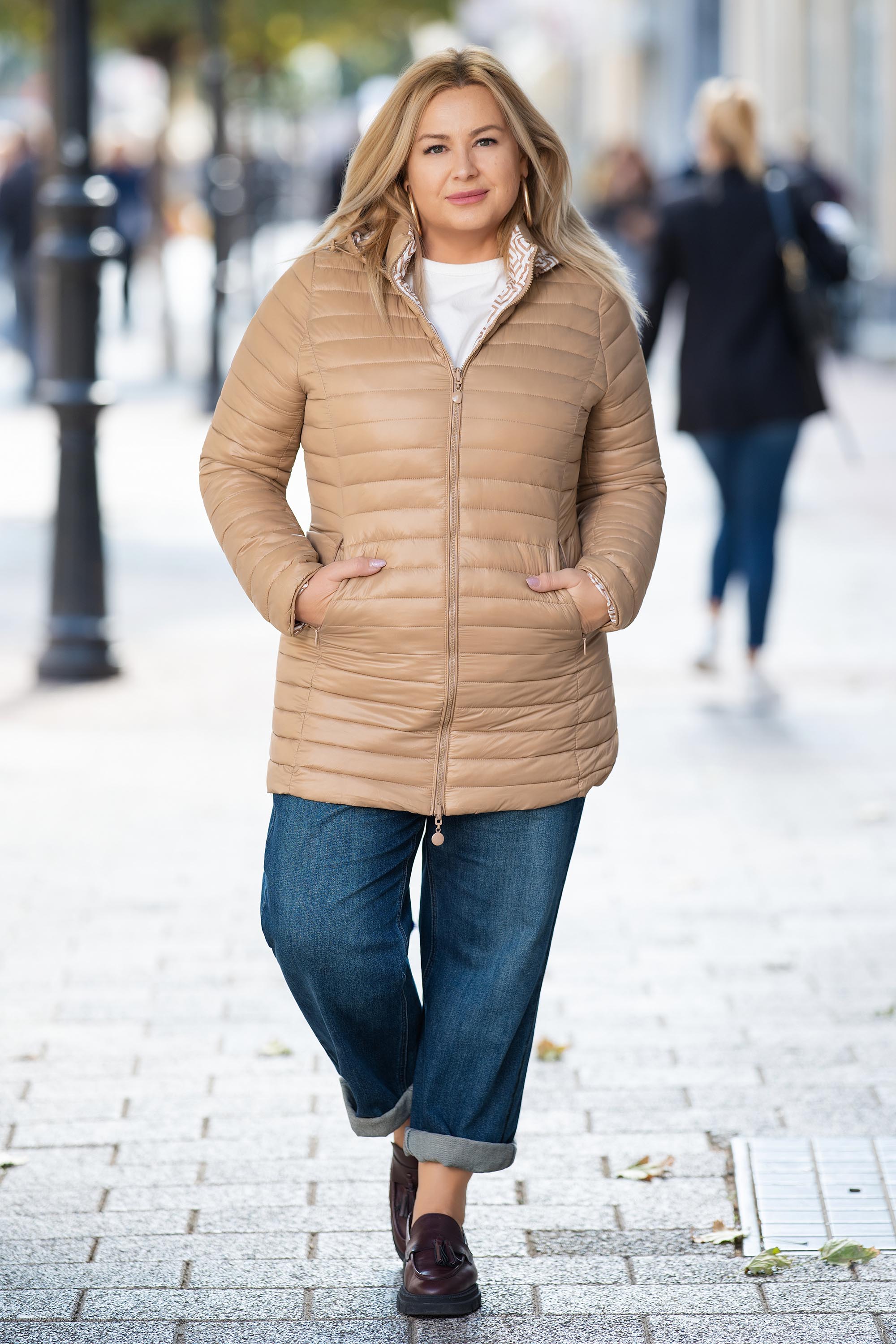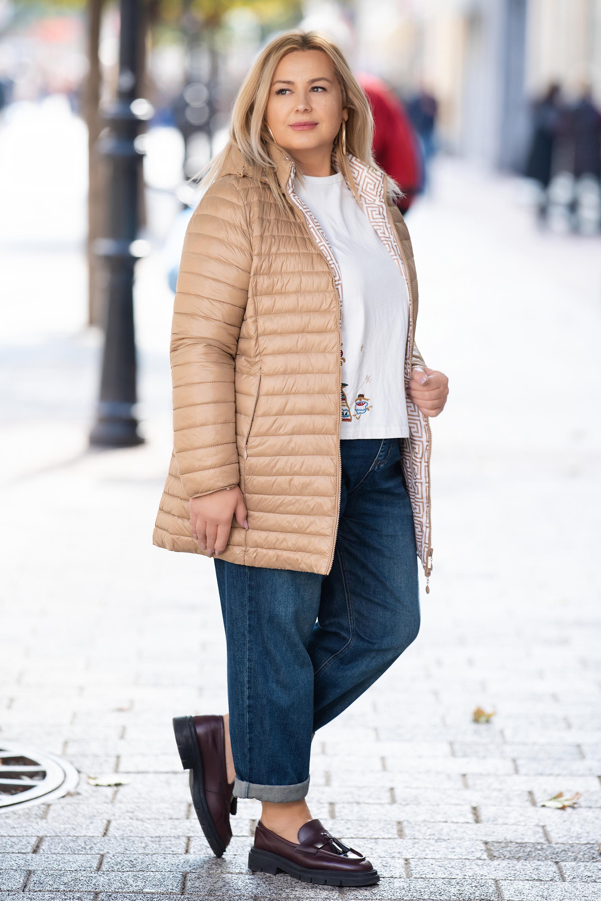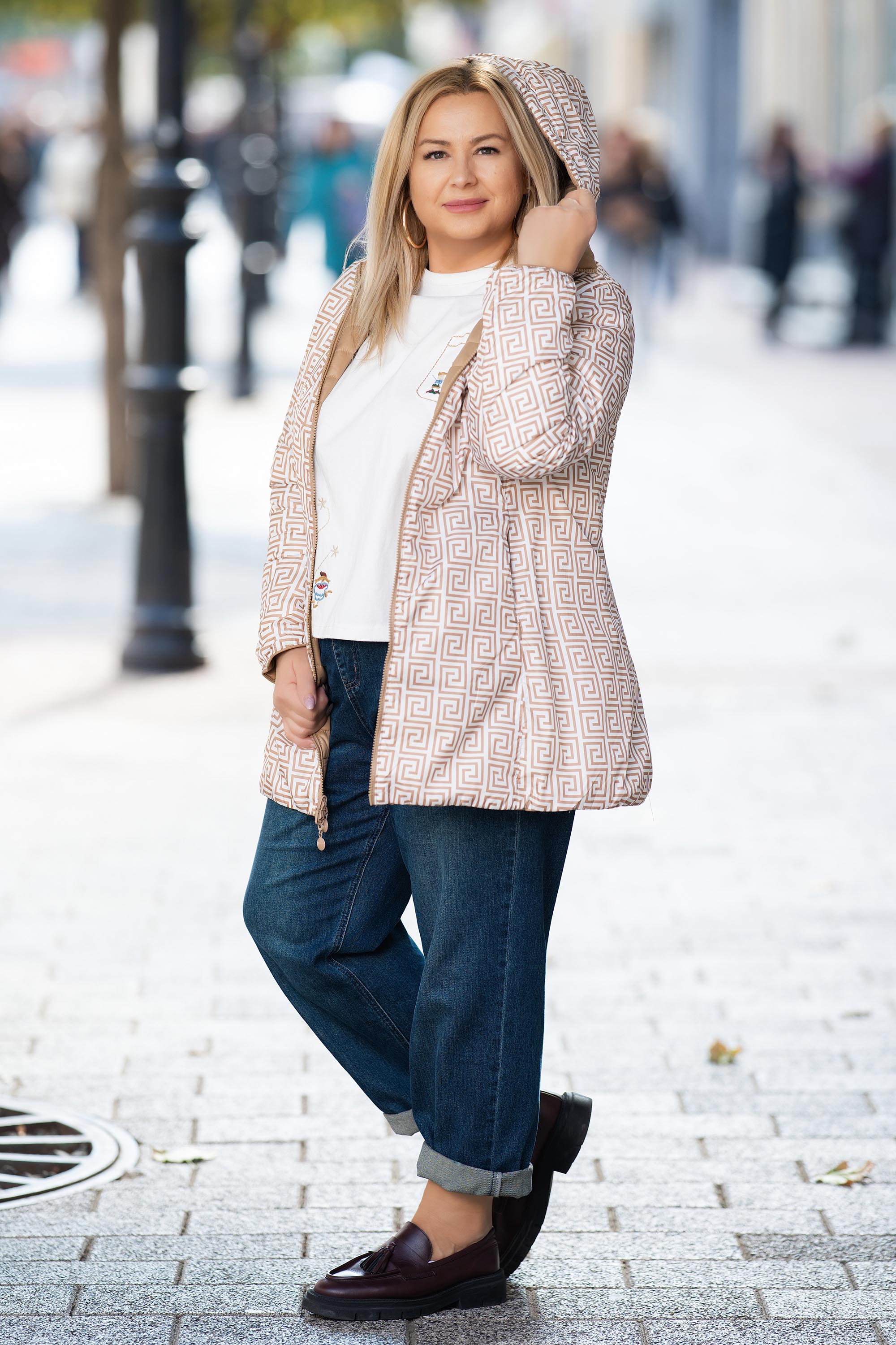 Това двулицево макси яке е съчетание от стил, практичност и комфорт – перфектният избор за динамичното ежедневие. Едната страна е в изчистен, елегантен бежов цвят, а другата впечатлява с модерен геометричен принт в кремаво и светлобежово. Така можеш лесно да променяш визията си – от класическа до ефектна, само с едно обръщане. Моделът е лек, топъл и изключително удобен, изработен от висококачествена материя с мека подплата, подходящ за преходните сезони. Кройката е права и свободна, което осигурява комфорт и свобода на движение, а дължината покрива ханша за допълнителна защита от студа. Якето се закопчава с двупосочен цип и има практични странични джобове. Стилно и функционално, това яке ще допълни чудесно твоя гардероб и ще се превърне в любим избор за есенните и пролетни дни.