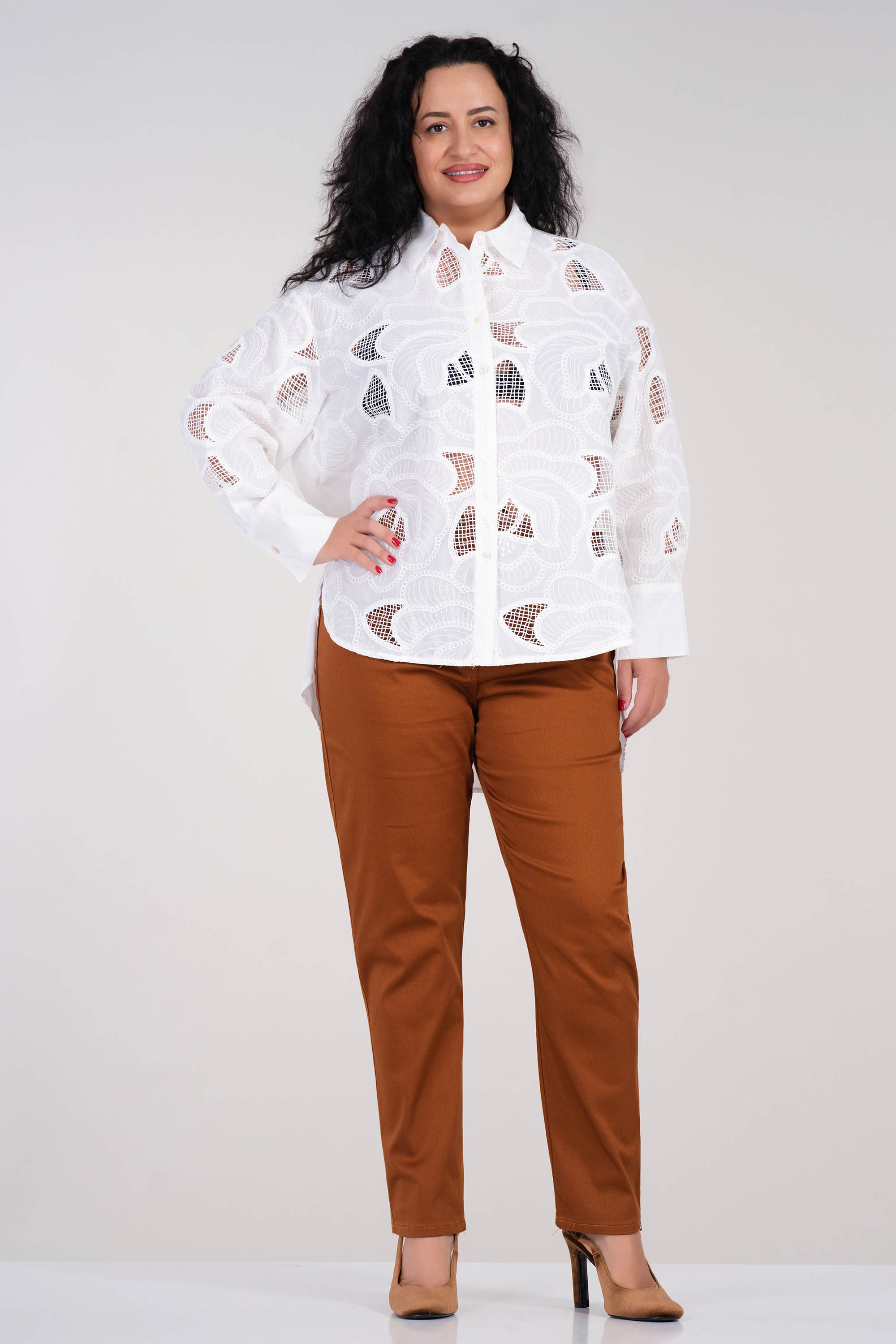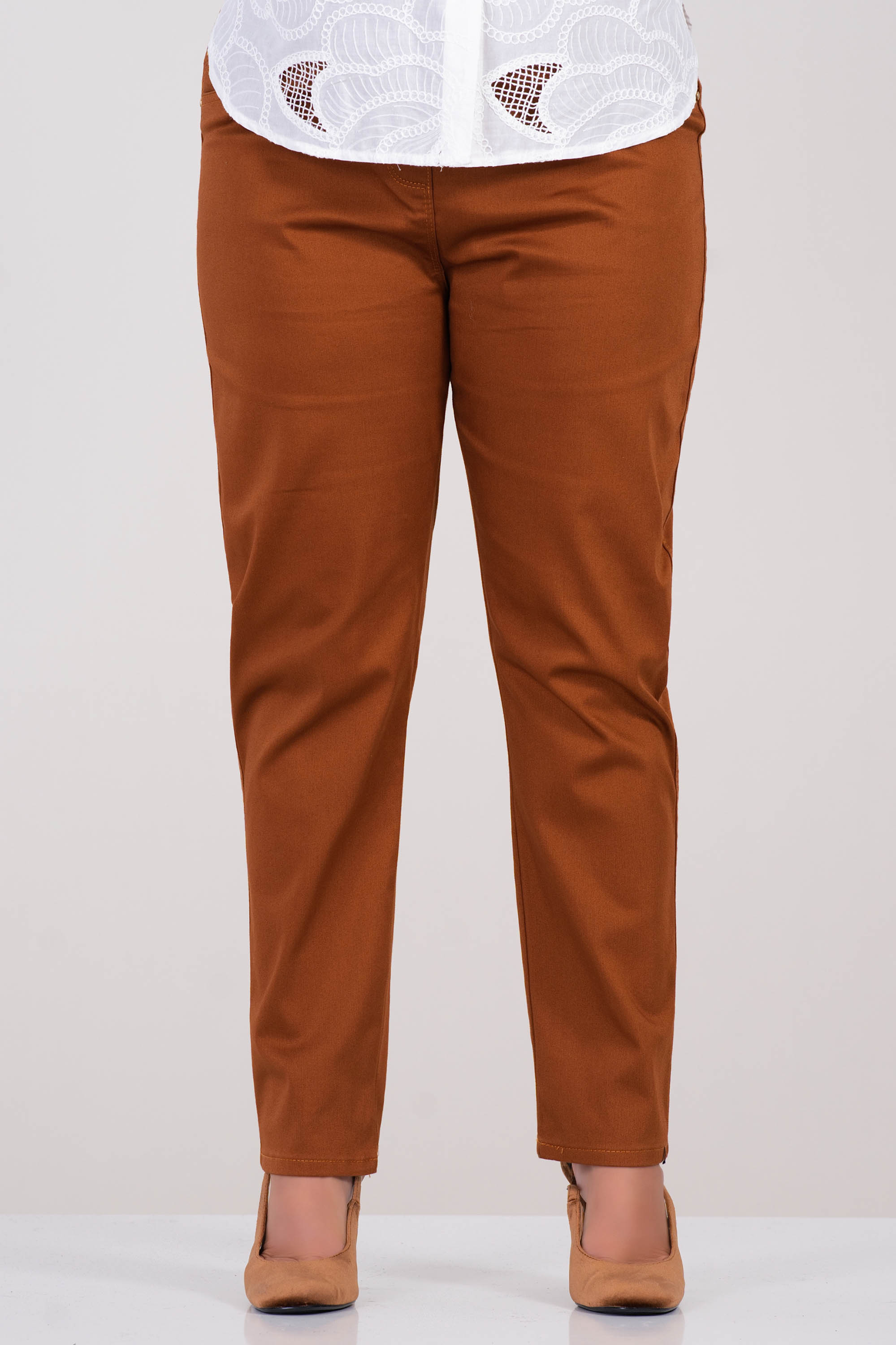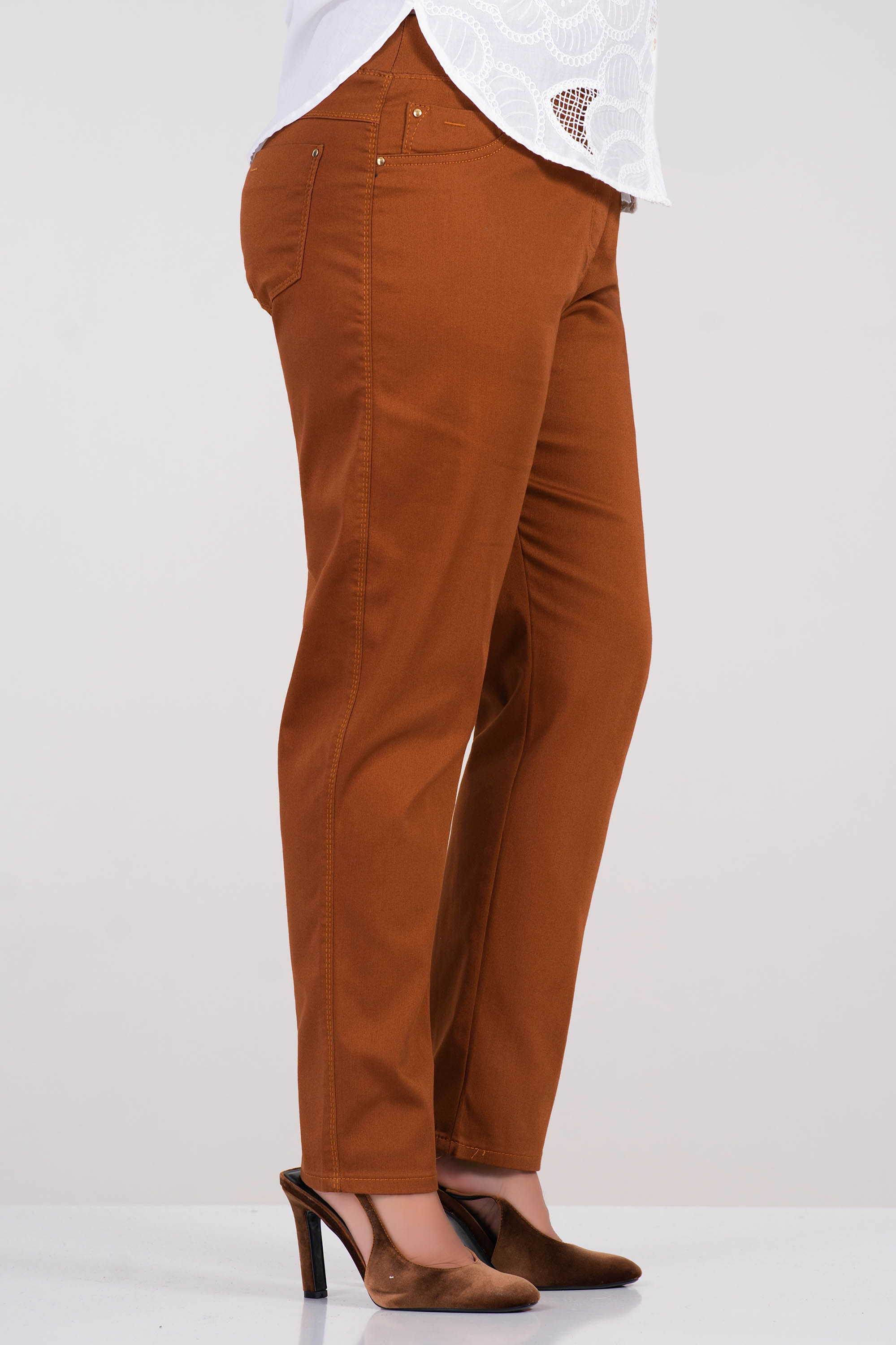 Панталон в топъл карамелено кафяв нюанс, създаден с мисъл за комфорт и свобода на движение. Изработен от памук с добавен еластан, моделът има права кройка и широк ластик на талията, който осигурява удобно прилягане. Декоративните джобове добавят стилен акцент, а едноцветният дизайн го прави лесен за комбиниране с ризи и блузи за ежедневието.
