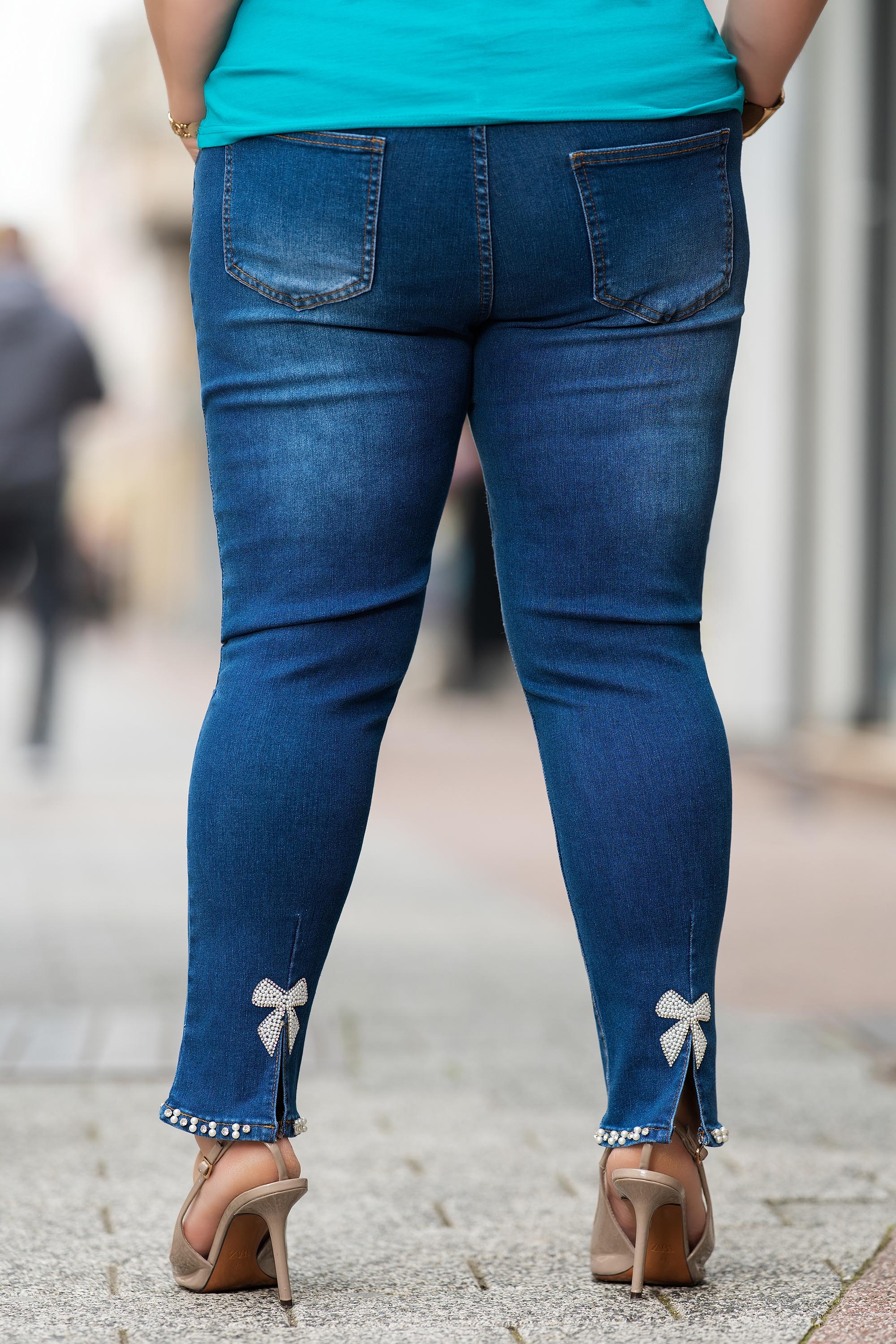 МАКСИ еластични дънки по тялото с декорирана панделка с перли
