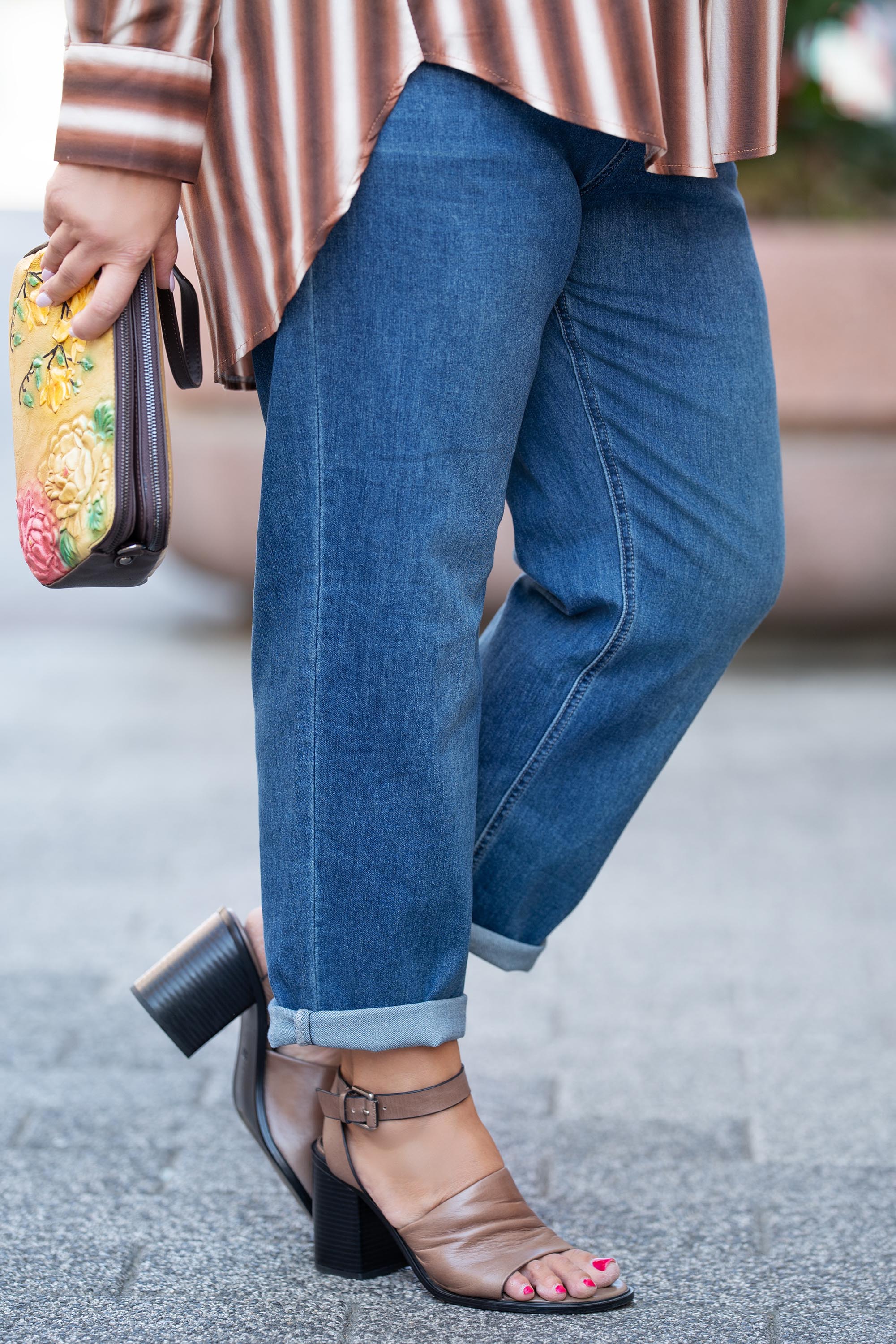 МАКСИ еластични дънки със светъл кант на предния джоб