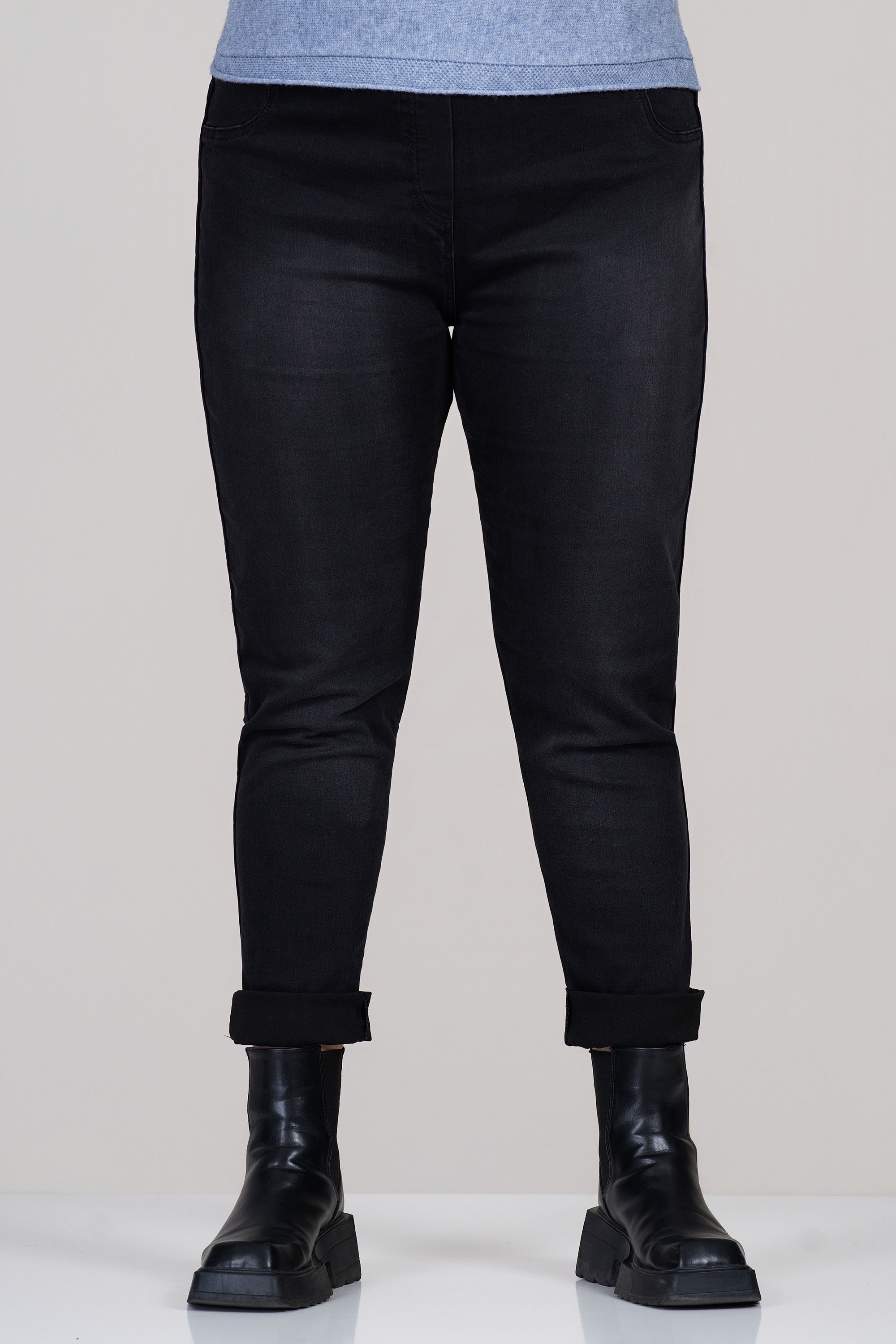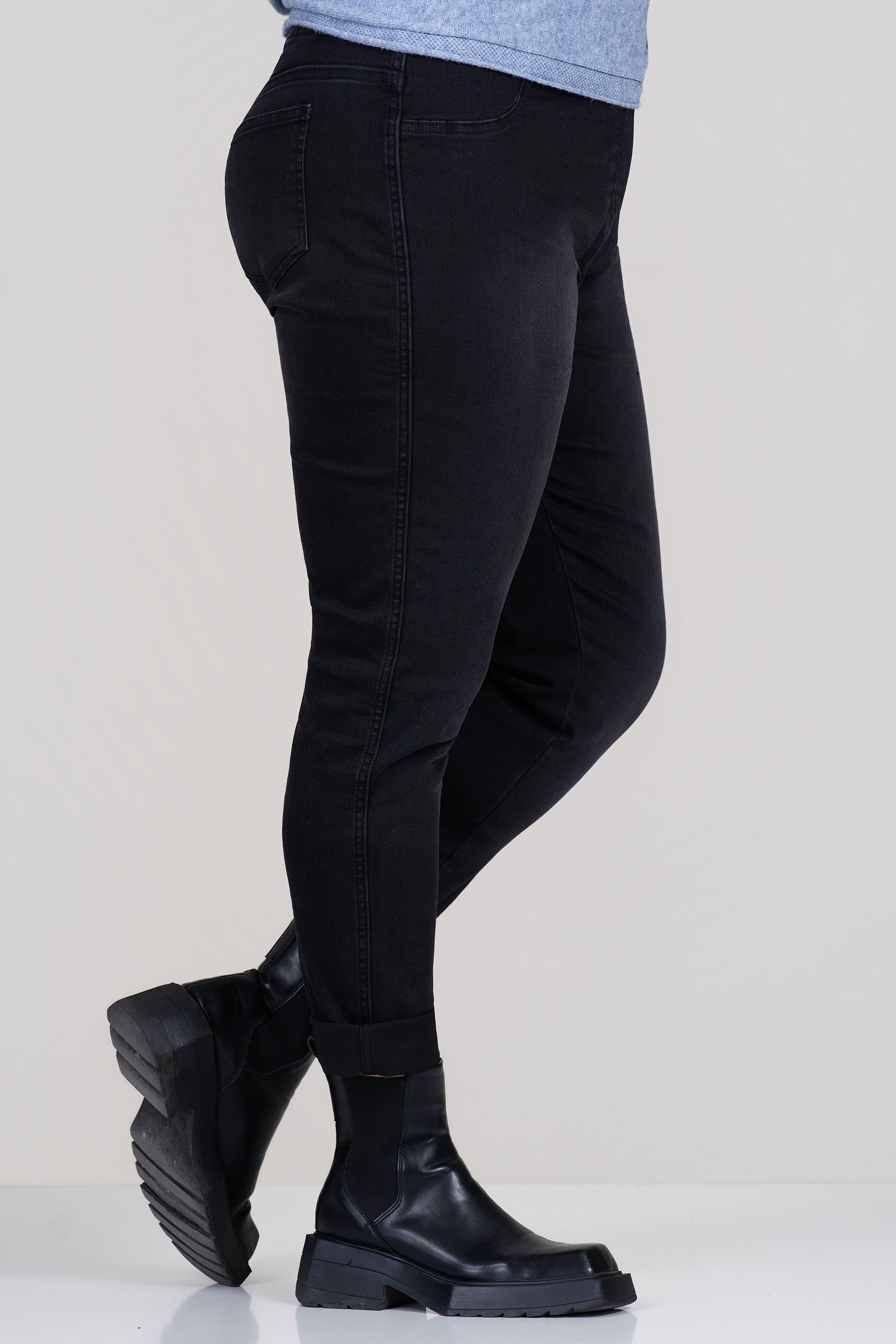 МАКСИ еластични дънки в черно по тялото с широк ластик в талията