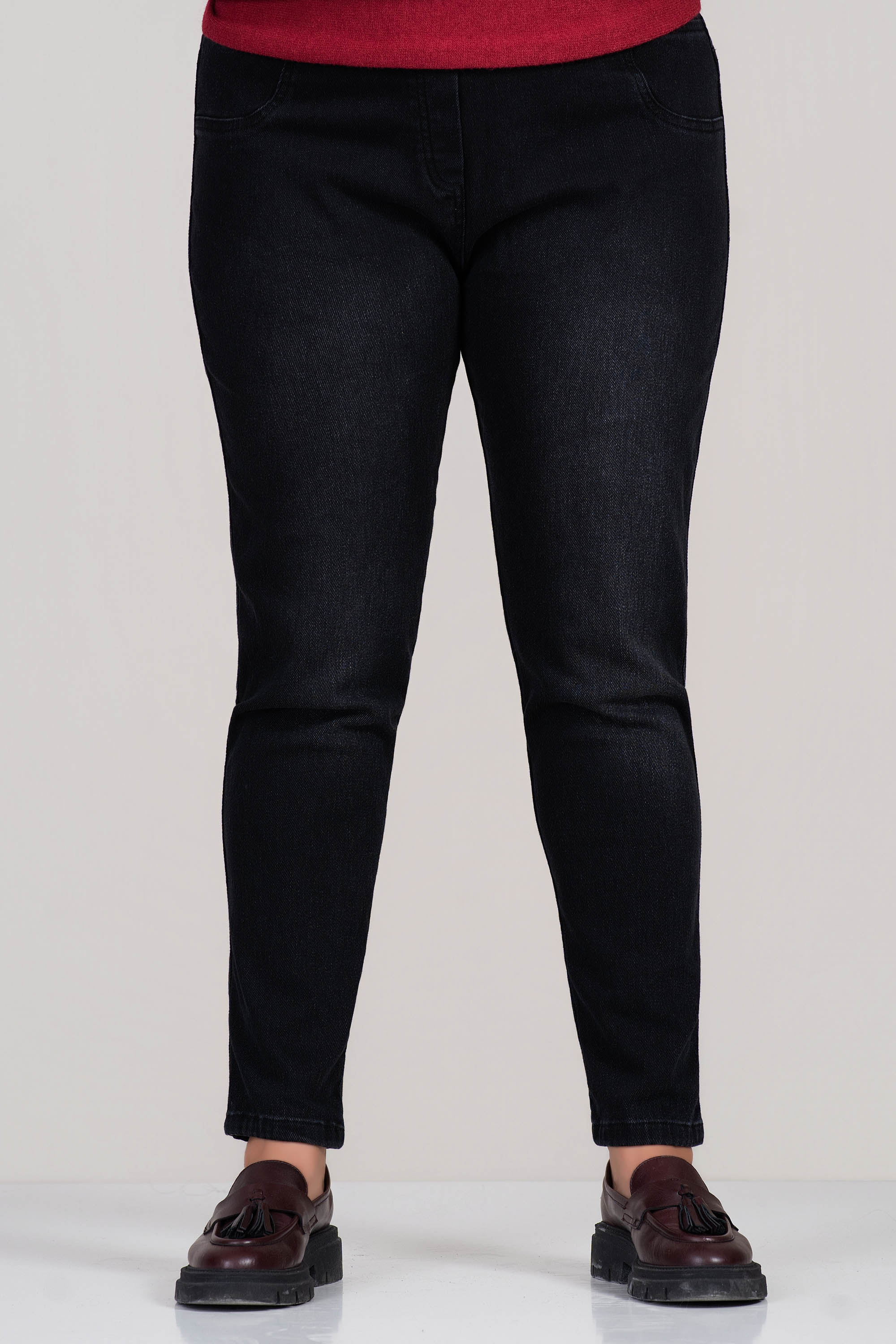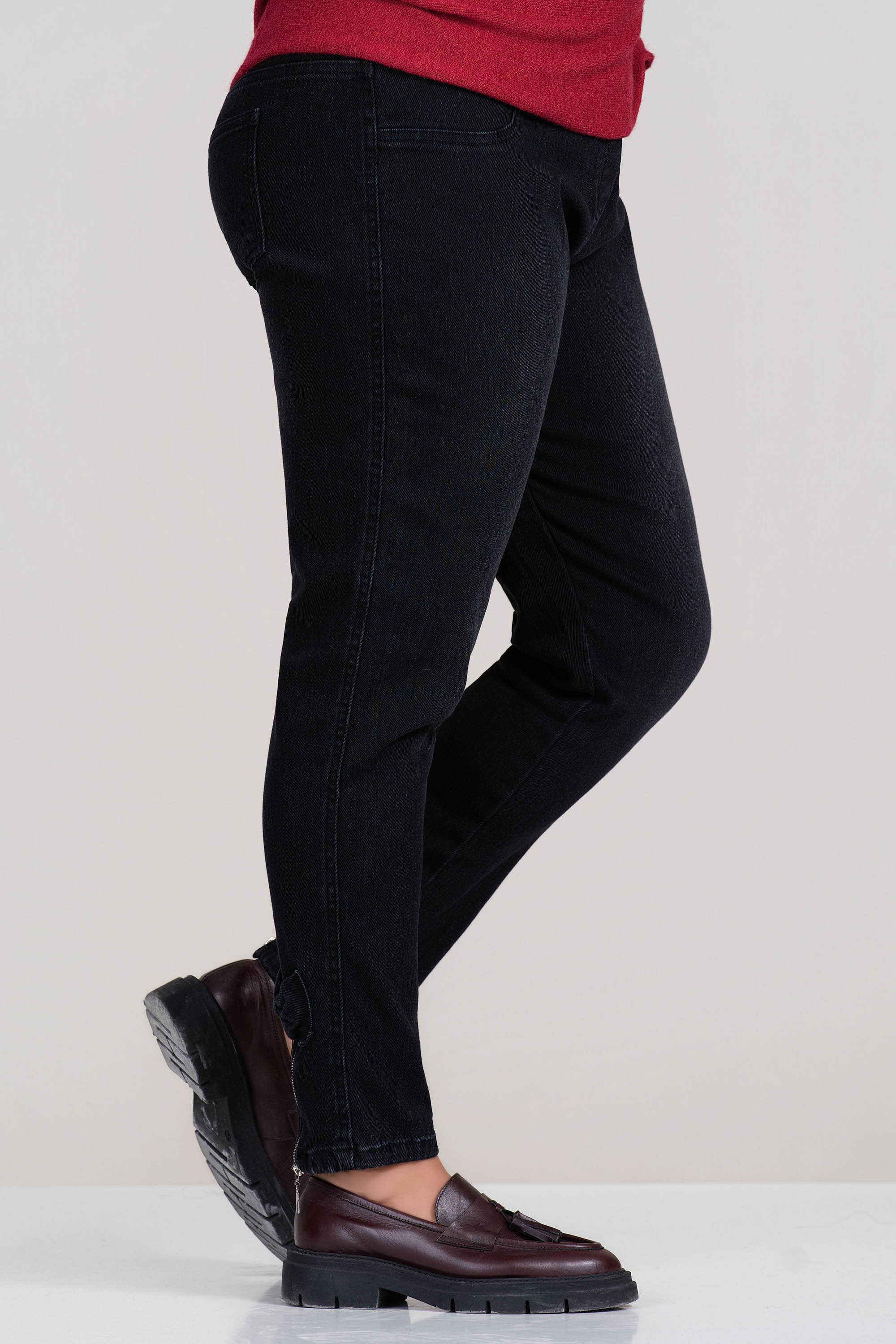 МАКСИ еластични дънки в черно с цип и панделка в края