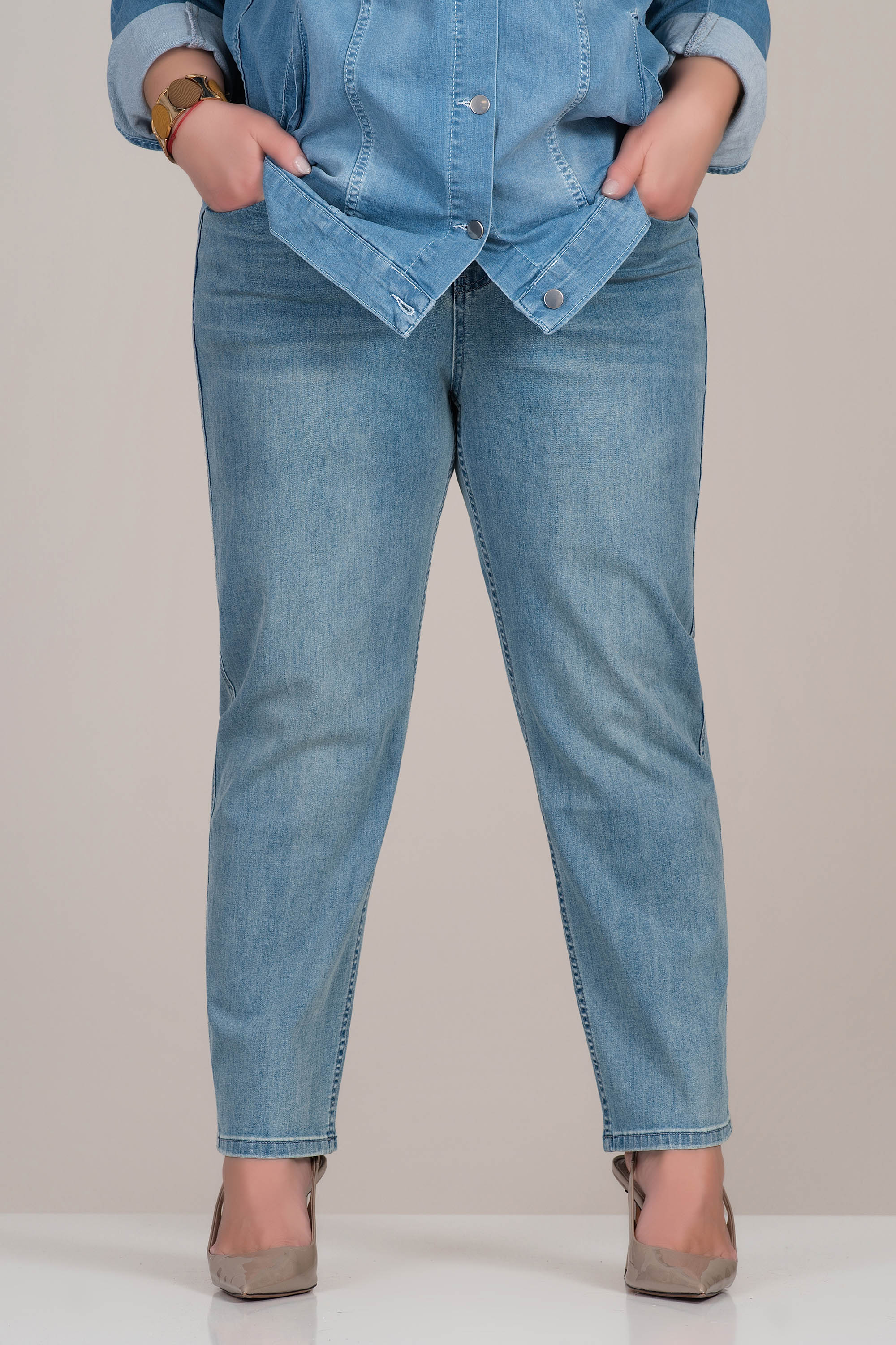 Макси еластични дънки в класически светлосин деним с ластик в кръста