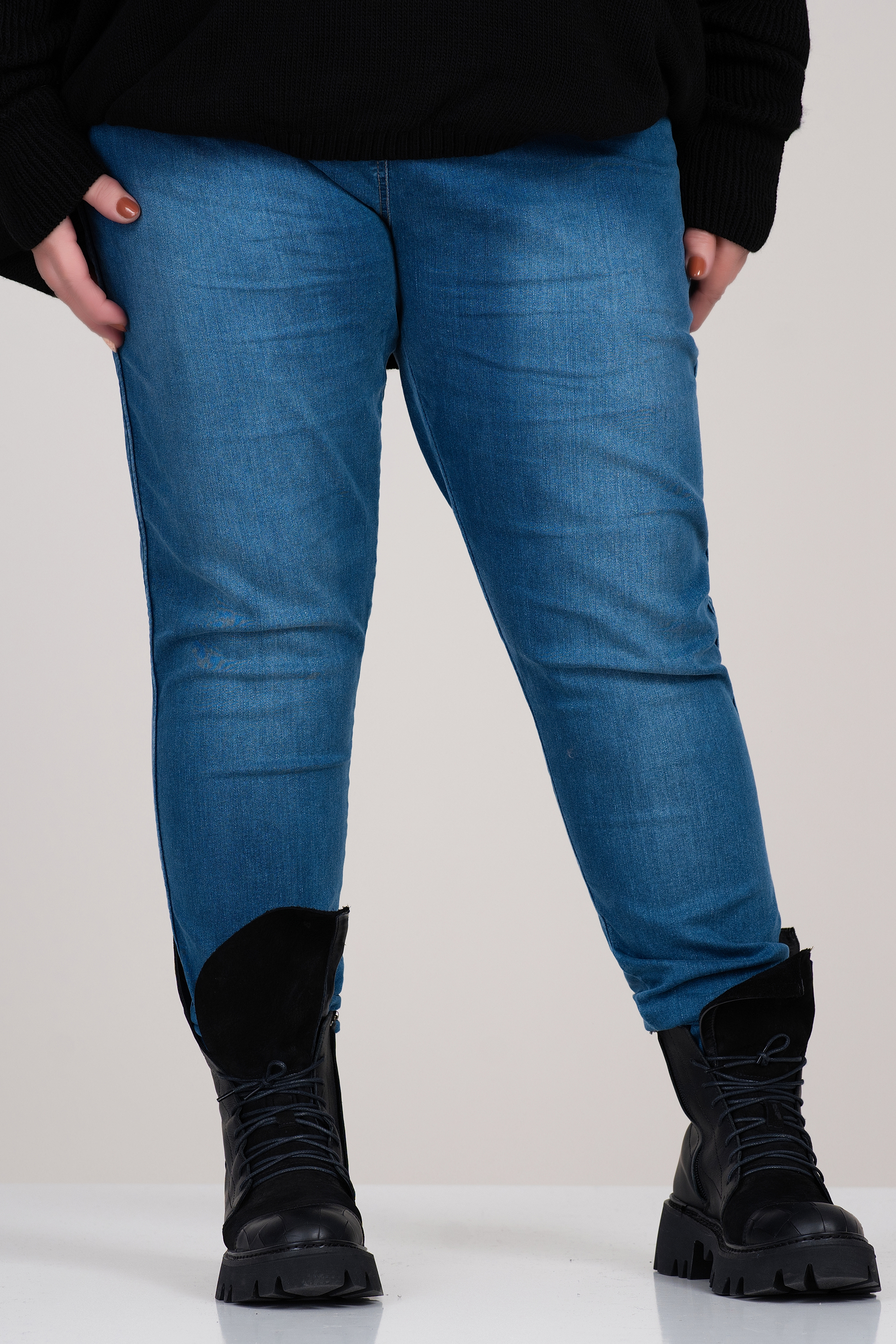 МАКСИ еластични дънки в синьо по тялото с широк ластик в талията