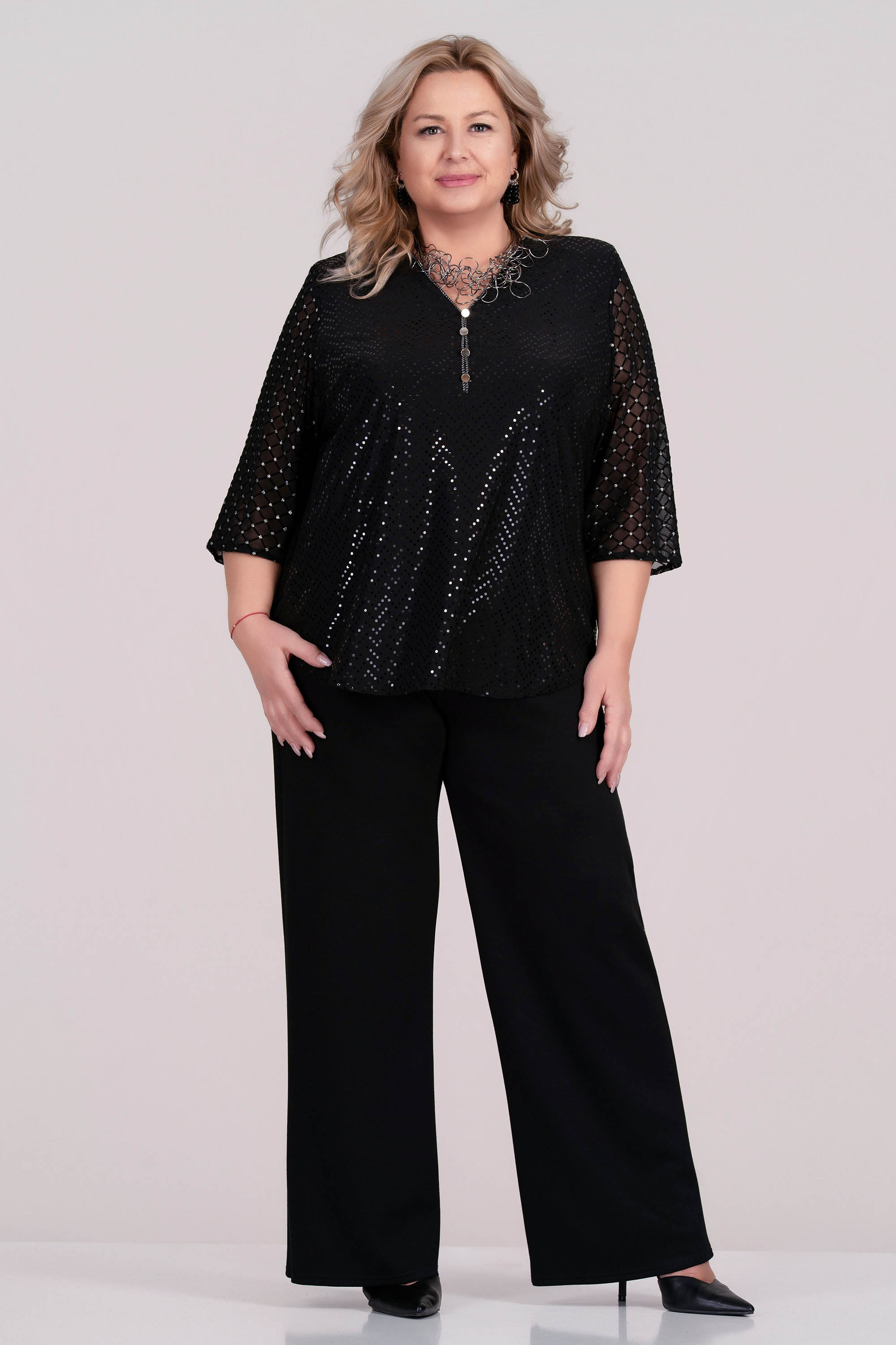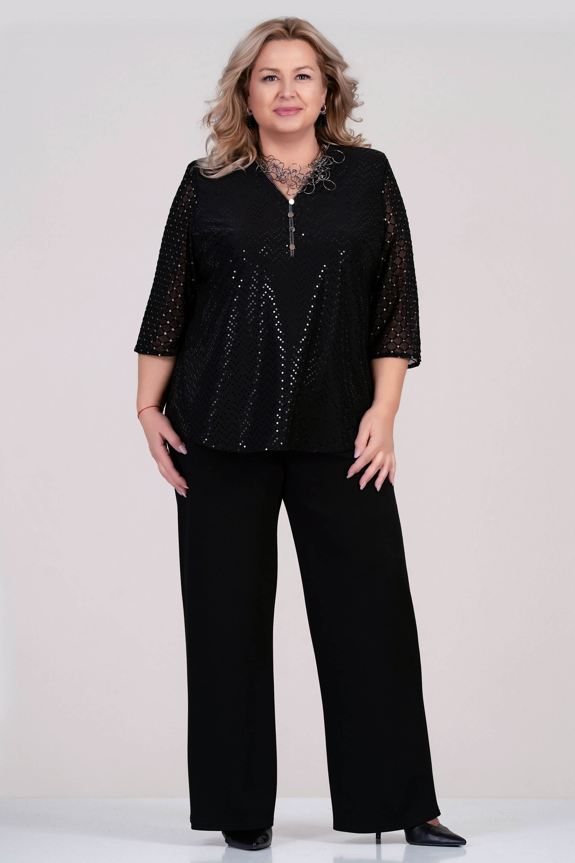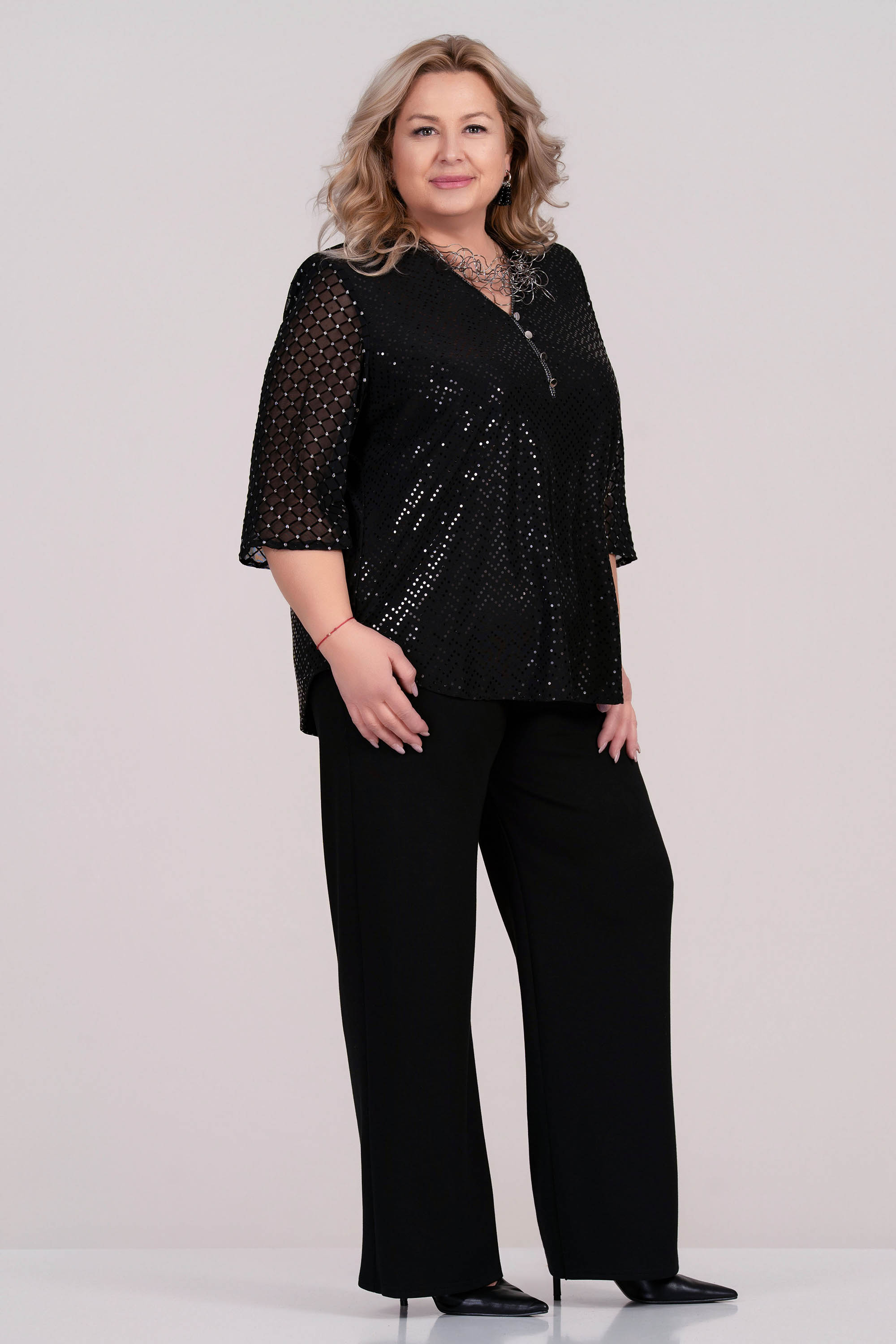 МАКСИ елегантна блуза в черно с лъскави пайети
