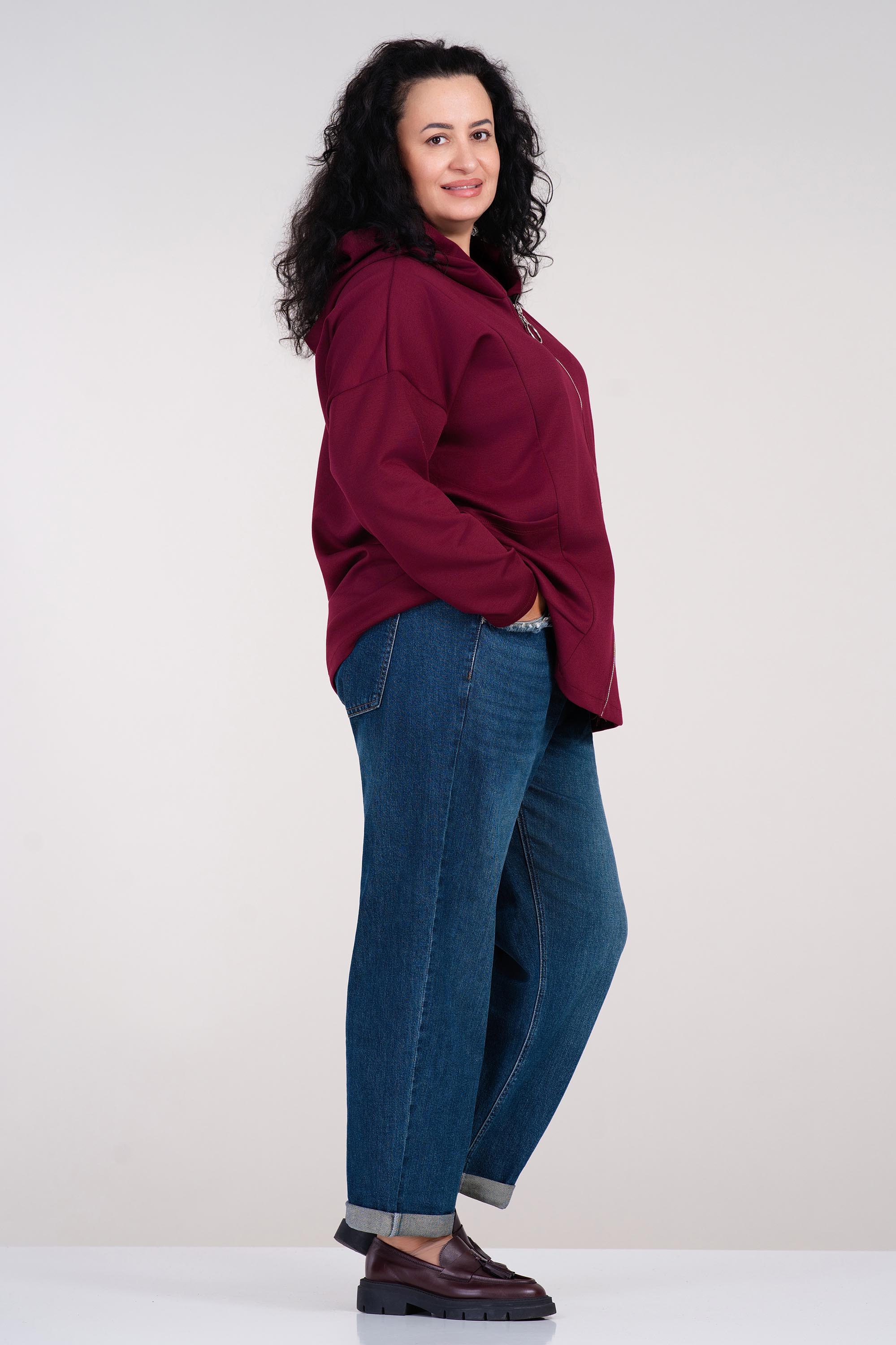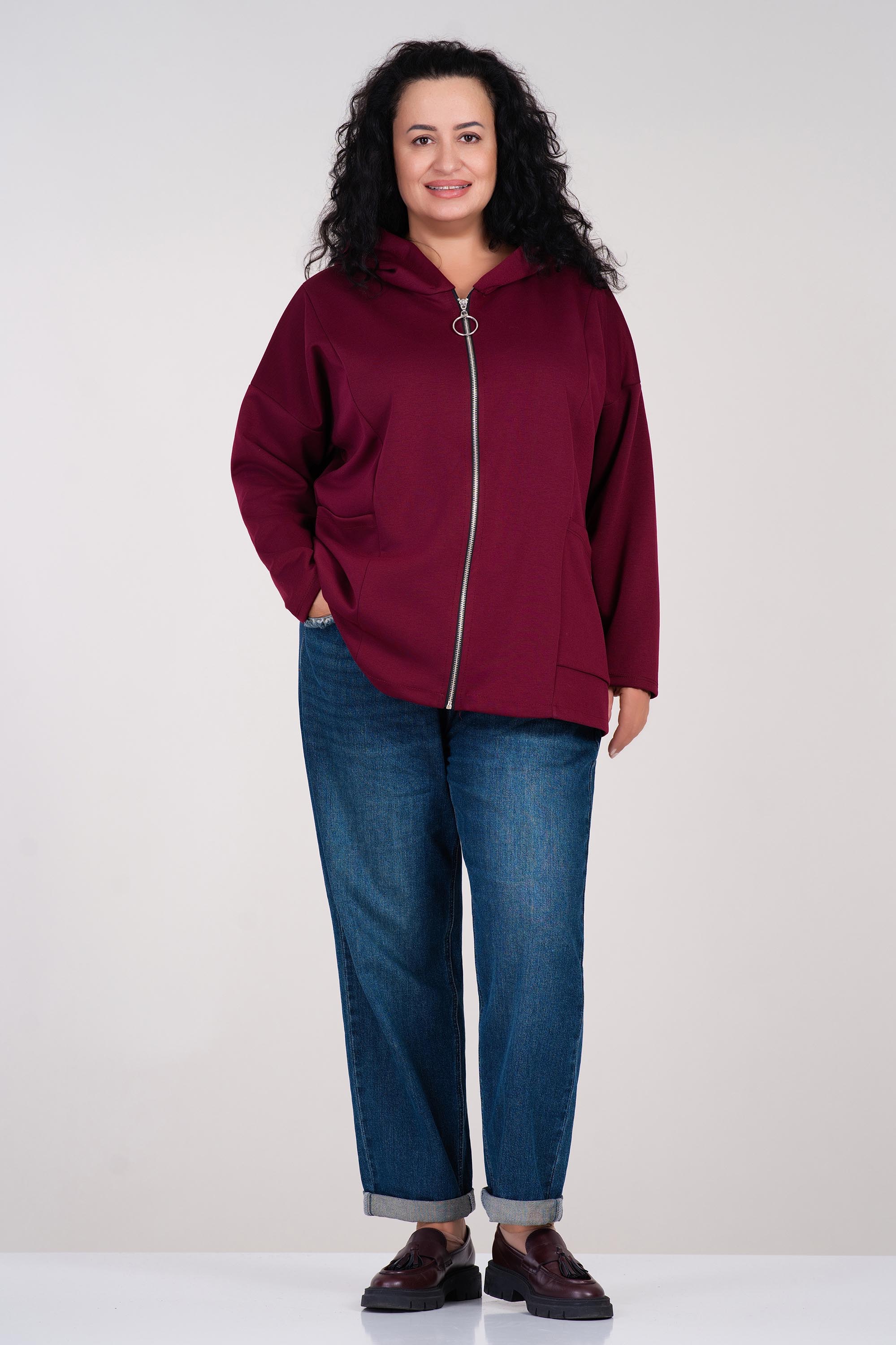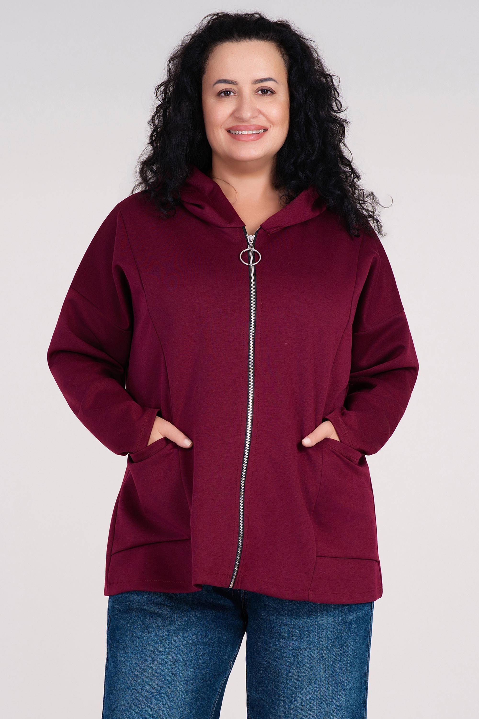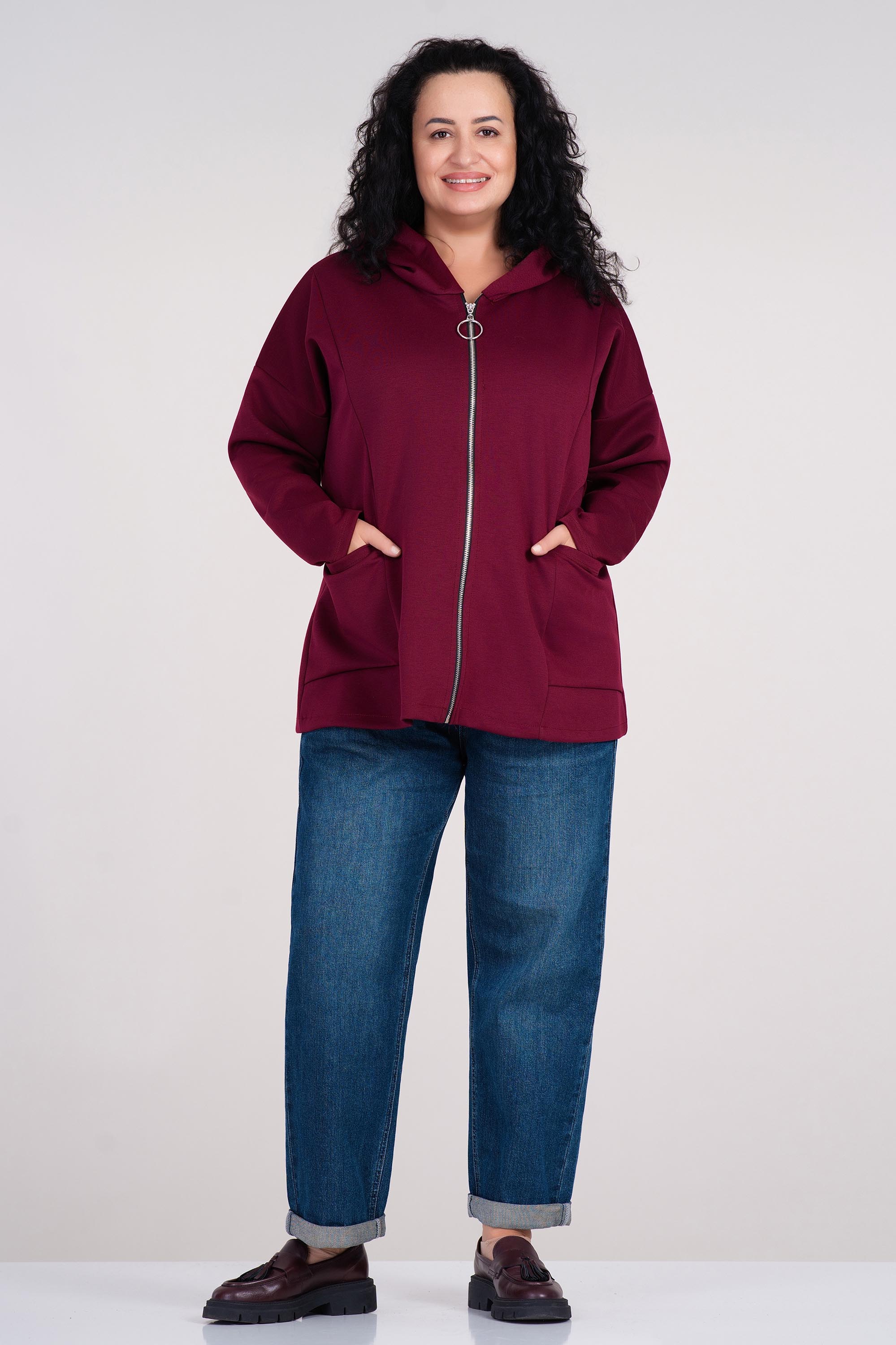 Макси жилетка от памук в цвят бордо с цип и джобове