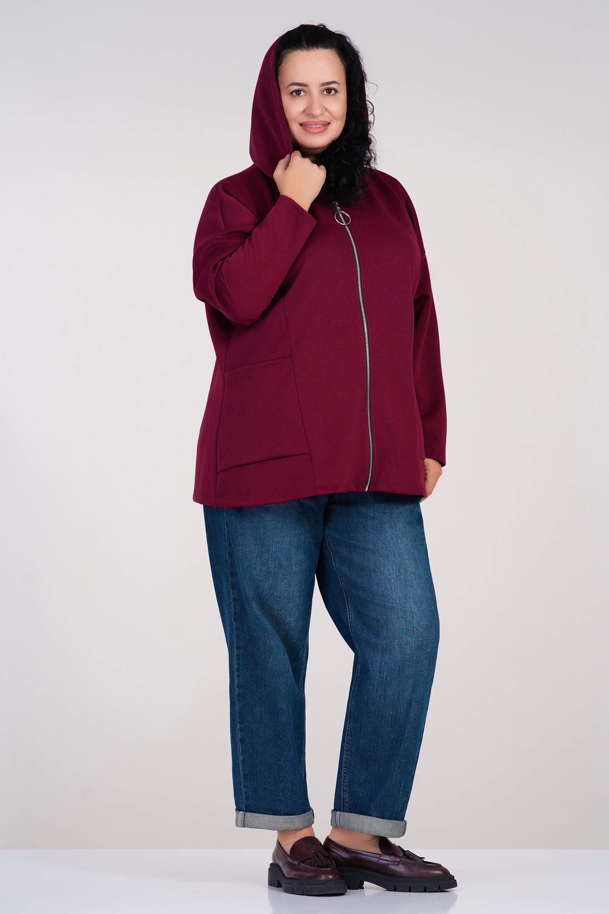 Тази макси жилетка съчетава комфорт и функционалност в едно. Изработена от памучно трико с лек еластичен ефект, тя осигурява мекота и свобода на движение. Ципът по цялата дължина и двата предни джоба добавят практичен елемент, а свободната кройка с качулка я прави отличен избор за преходните сезони.