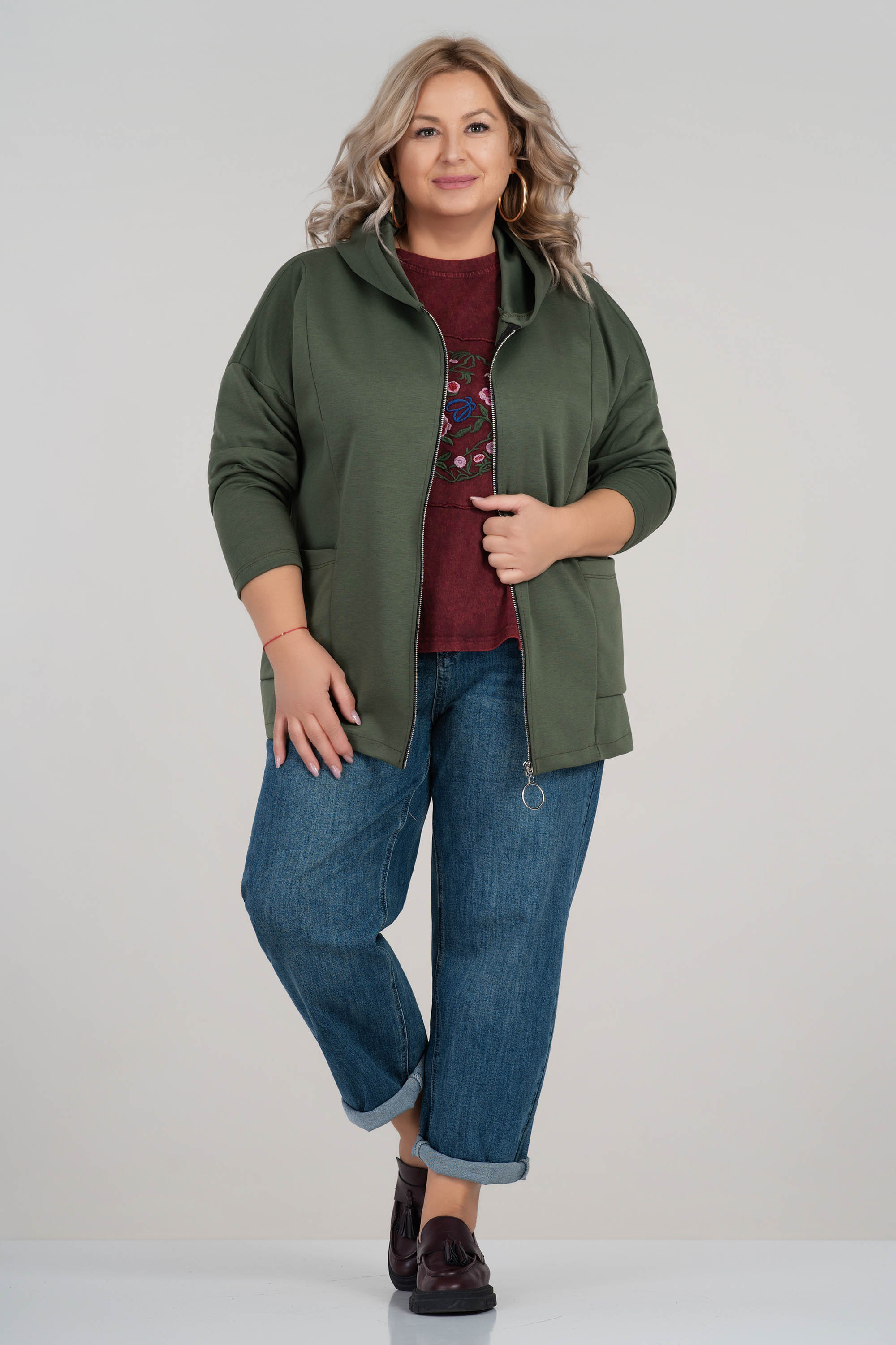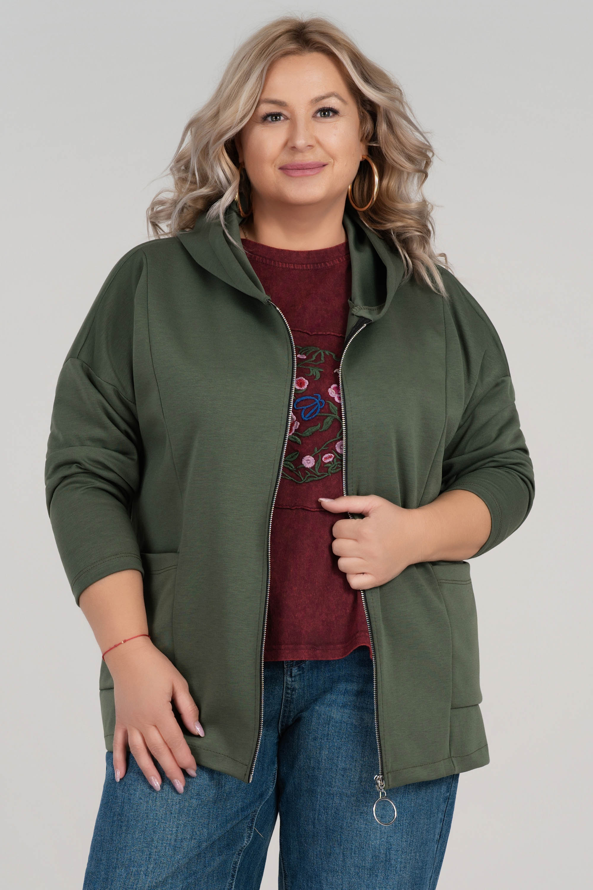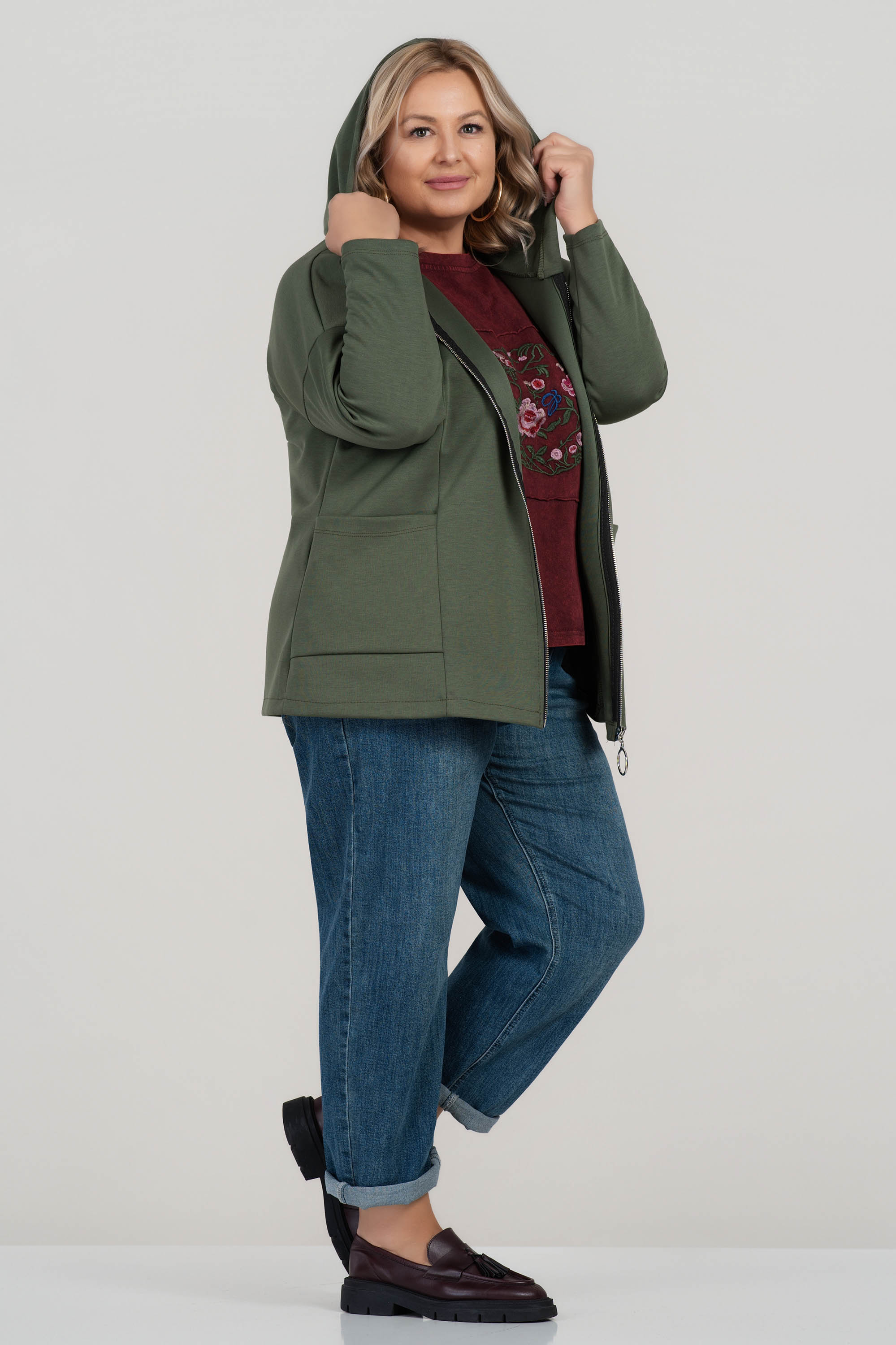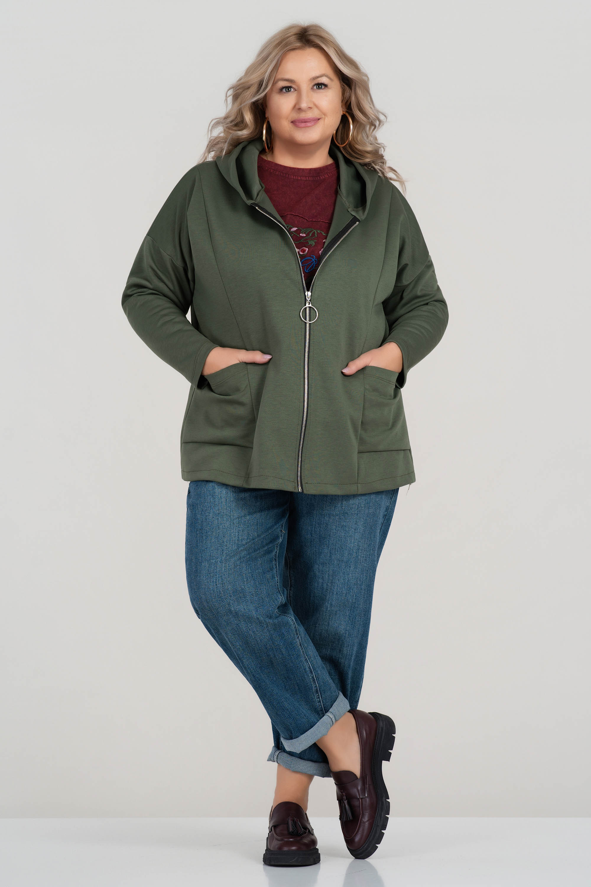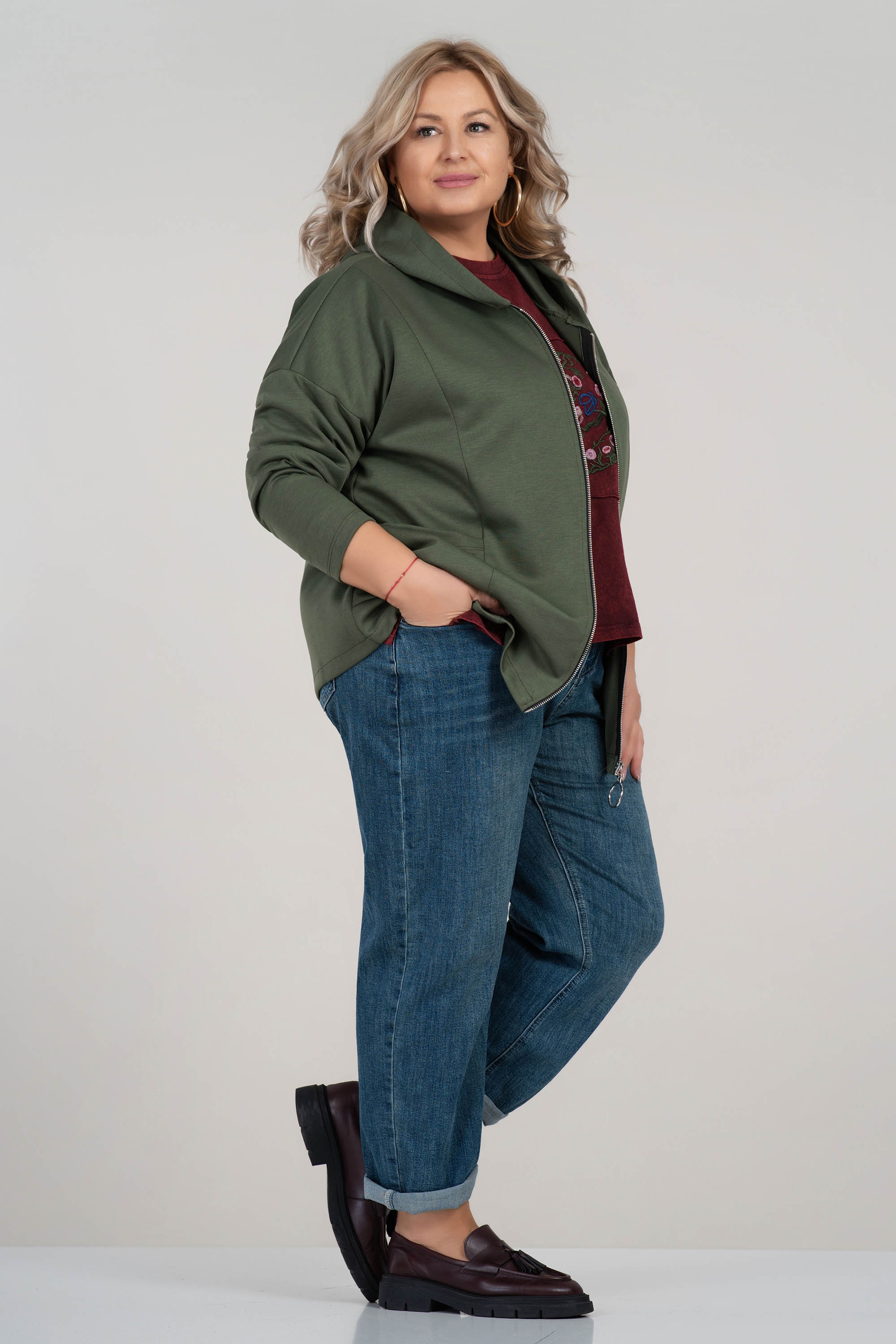 Тази макси жилетка съчетава комфорт и функционалност в едно. Изработена от памучно трико с лек еластичен ефект, тя осигурява мекота и свобода на движение. Ципът по цялата дължина и двата предни джоба добавят практичен елемент, а свободната кройка с качулка я прави отличен избор за преходните сезони.