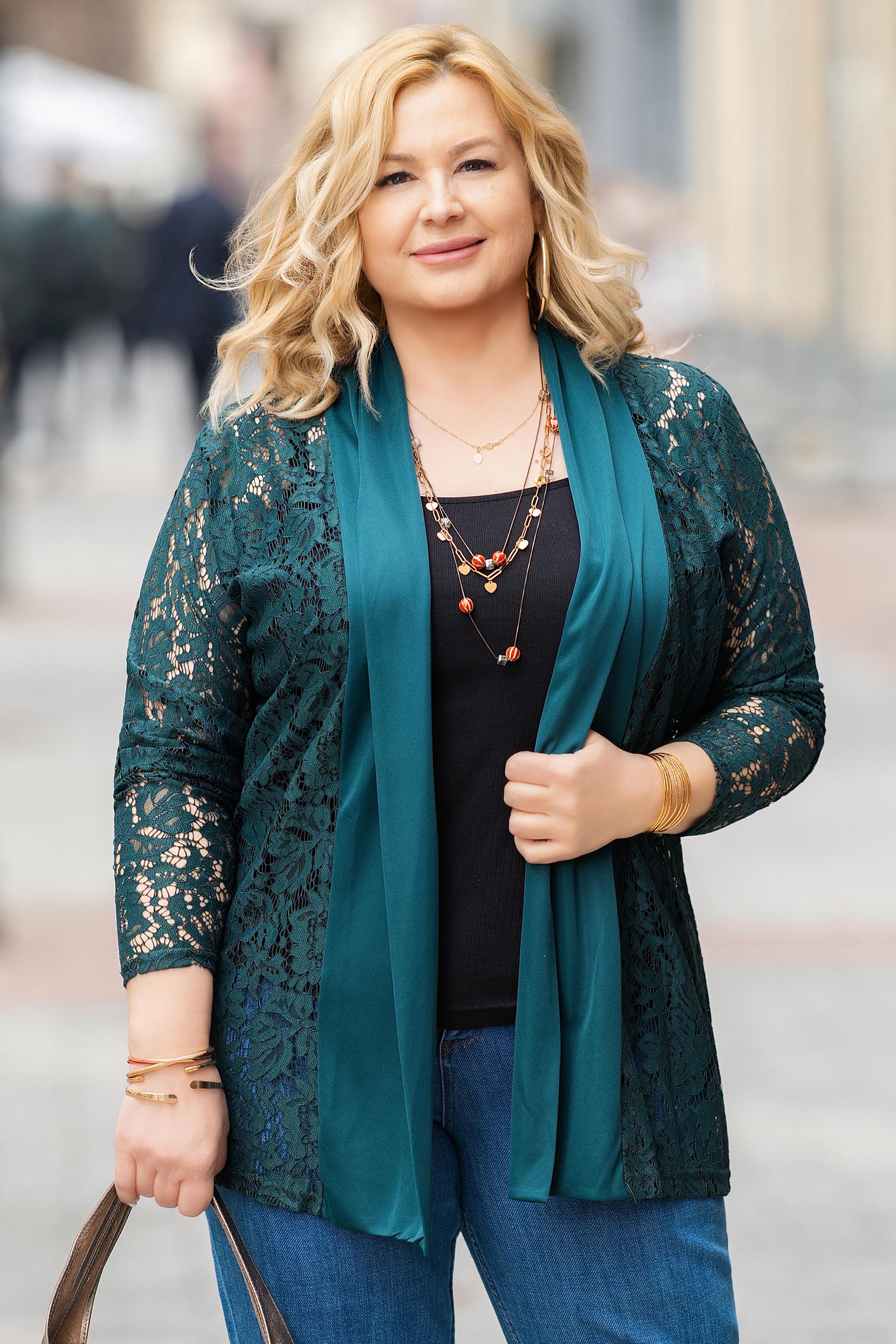 Стилна макси жилетка с изчистена линия и ефектни дантелени детайли. Вискозната материя осигурява мекота, а добавеният еластан допринася за по-добро прилягане и комфорт. Дългият силует създава елегантна визия и визуално издължава фигурата. Идеален избор за завършване на тоалета с лекота и женственост.