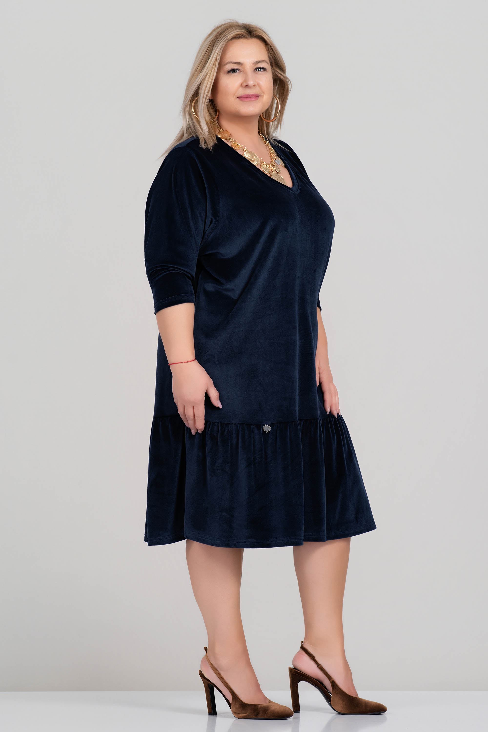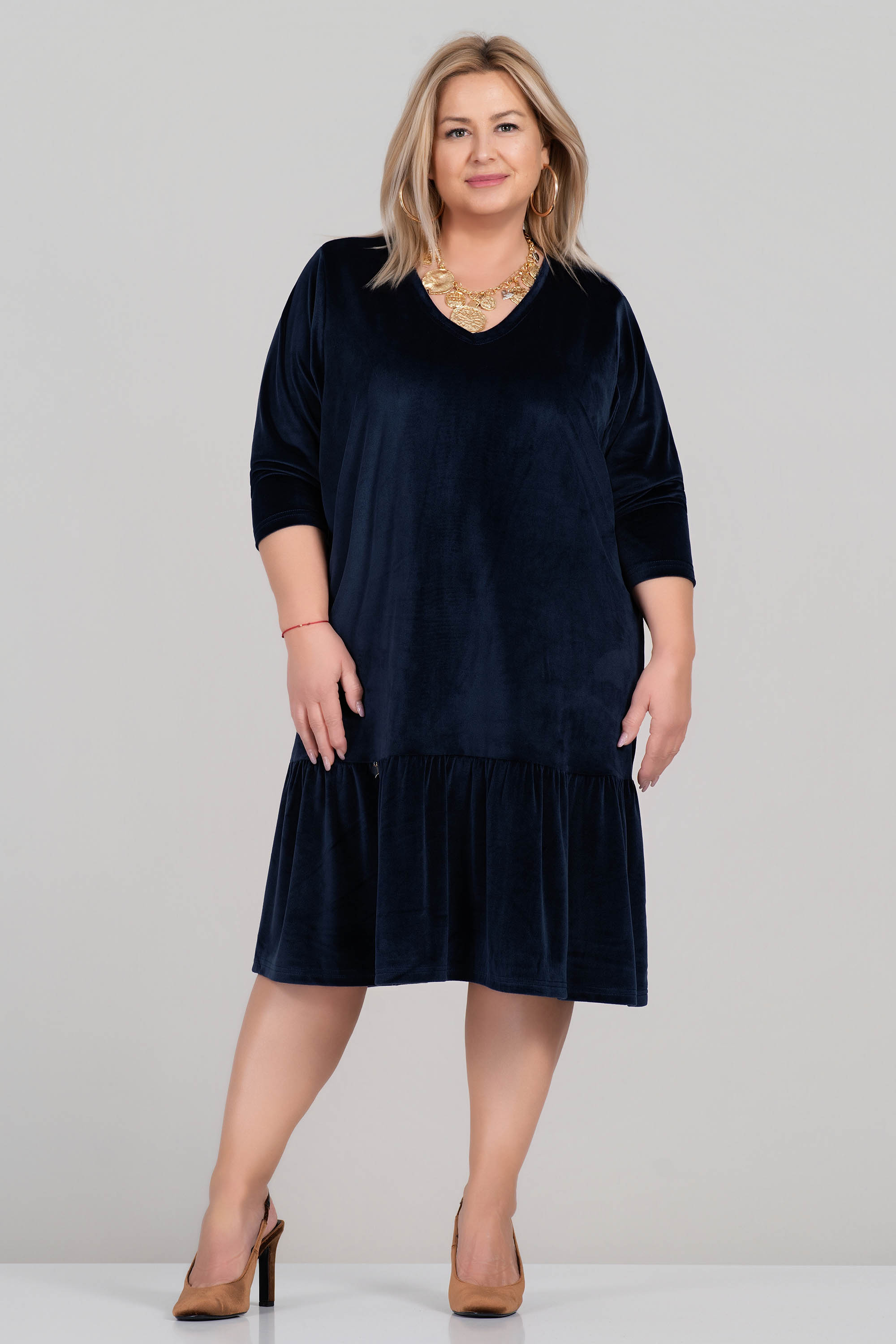 МАКСИ кадифена рокля в тъмносиньо със свободна кройка