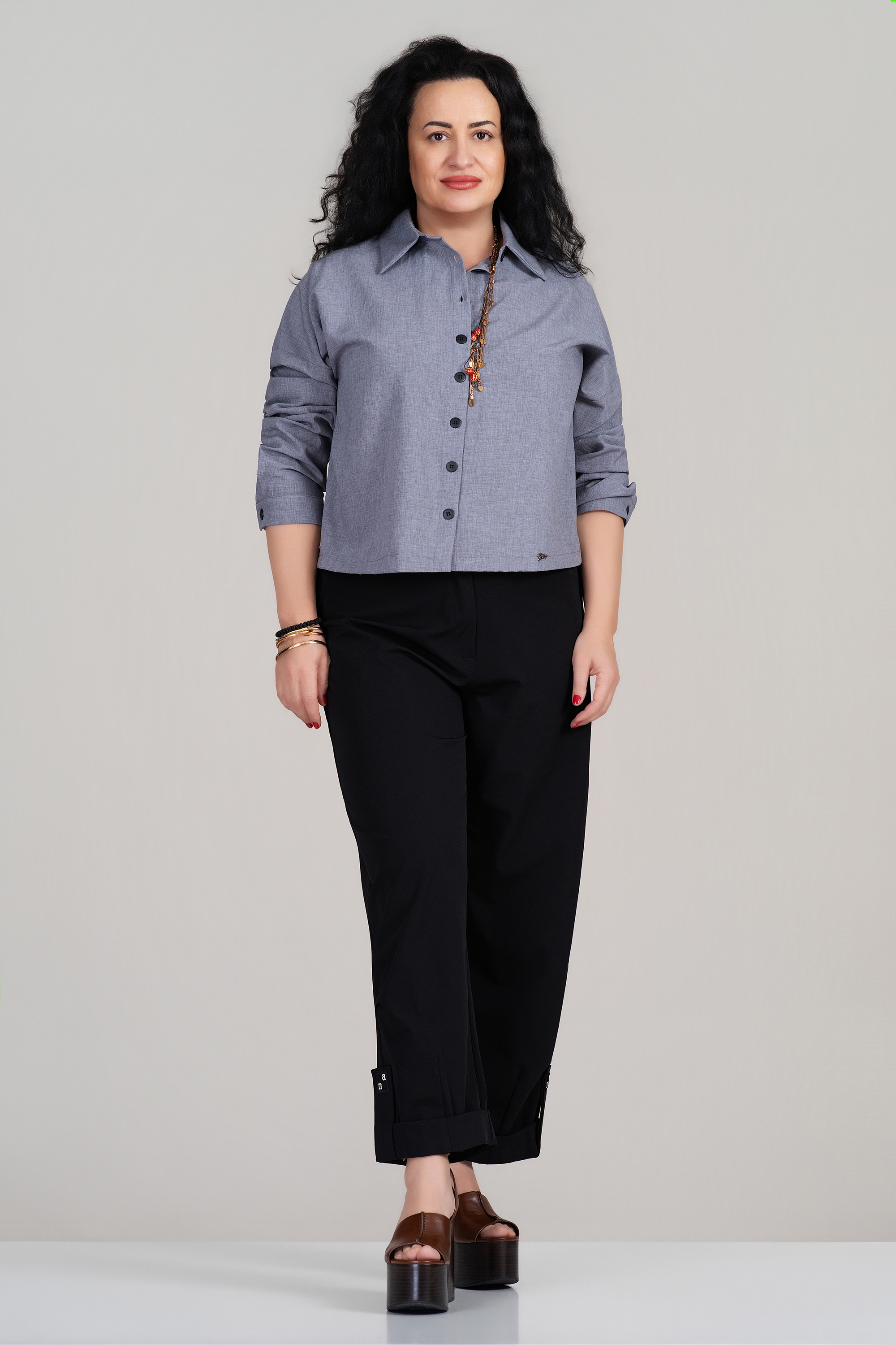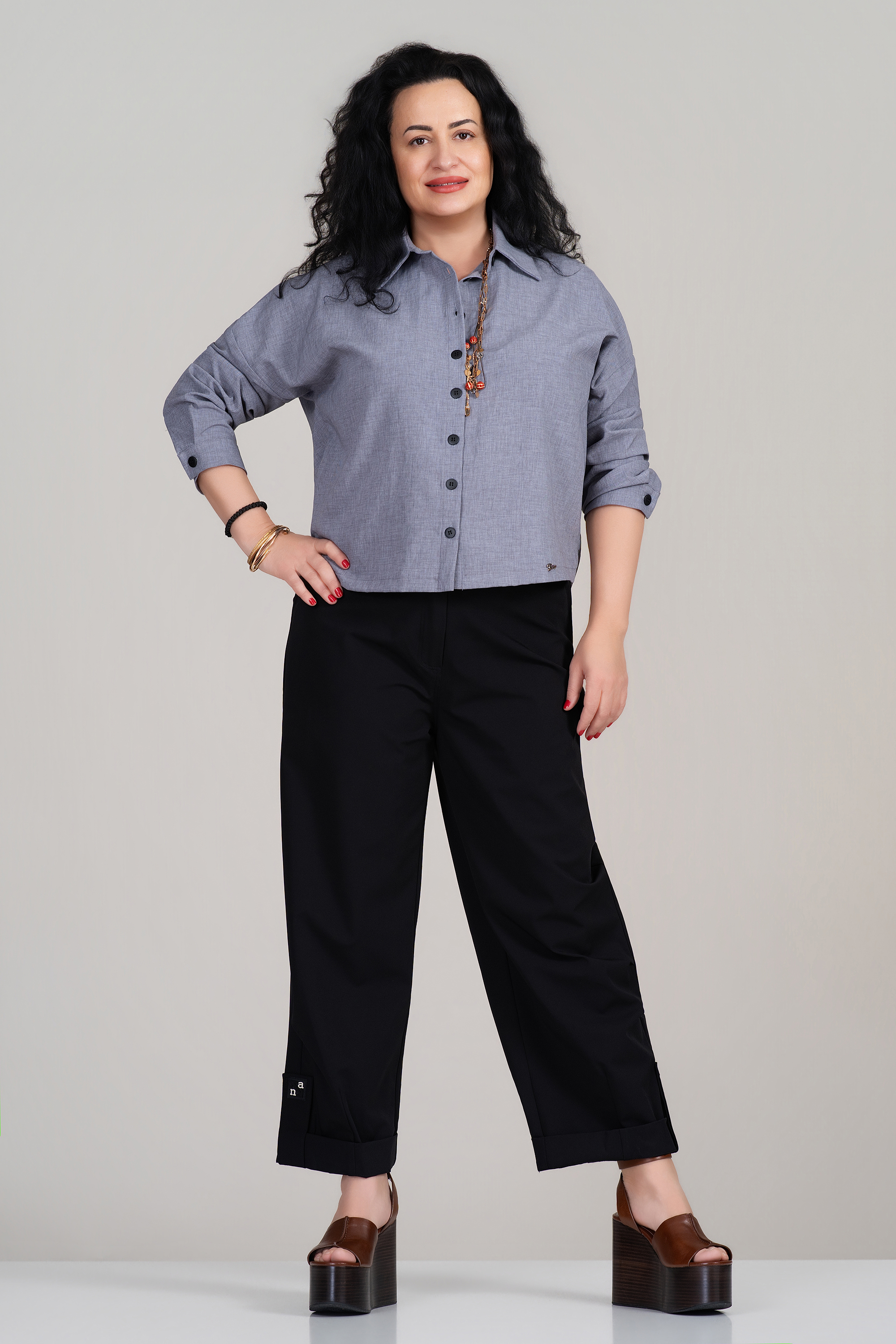 Тази макси риза в елегантно сиво е създадена да осигури увереност и комфорт през целия ден. Изработена от мека вискозна материя с добавена еластичност, тя пада свободно по силуета и не очертава излишно, като същевременно подчертава формите по балансиран начин. Черните копчета добавят фин контраст и стилен акцент. Моделът е подходящ както за офис визии, така и за ежедневни комбинации през пролетно-есенния сезон.