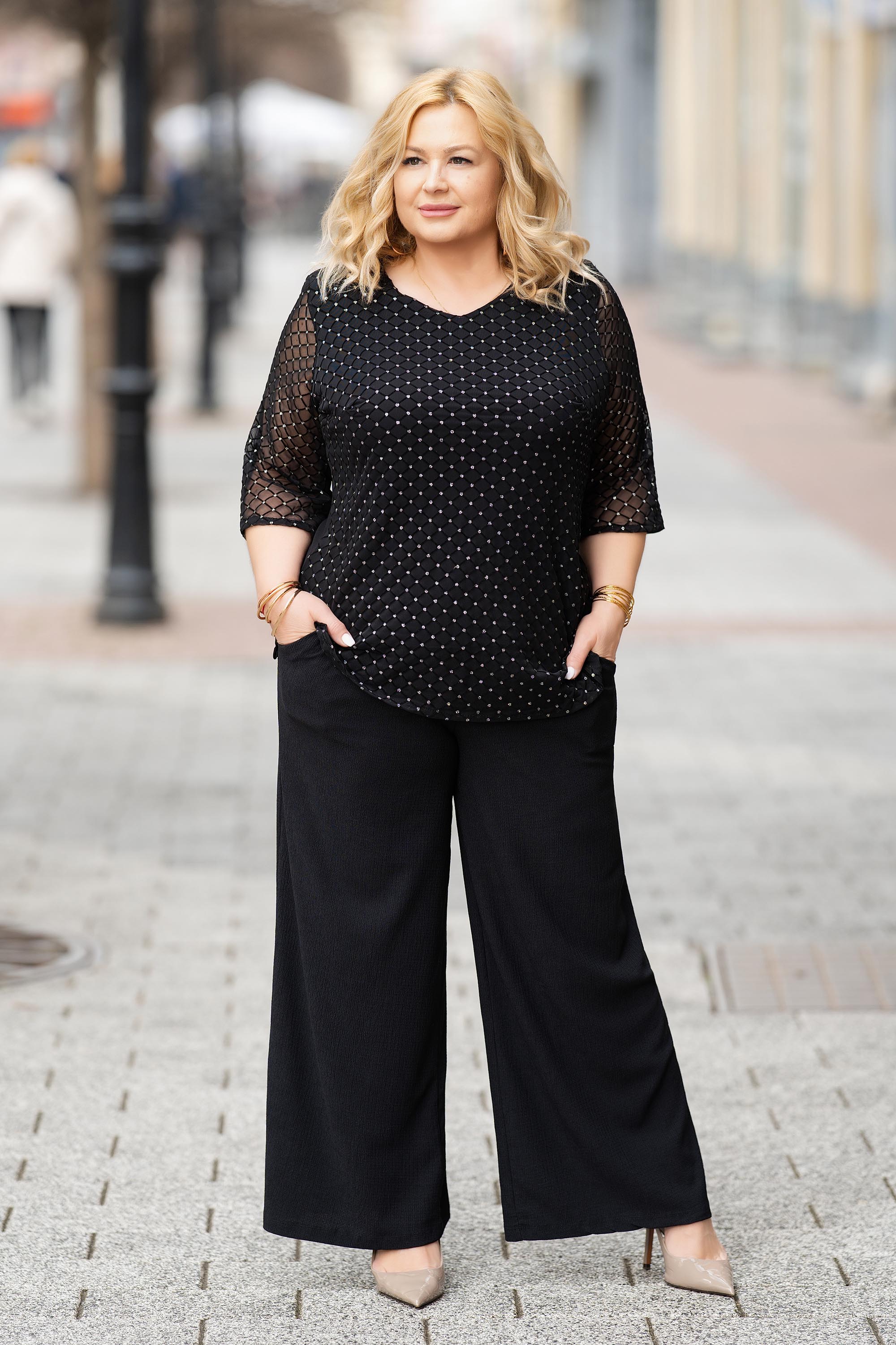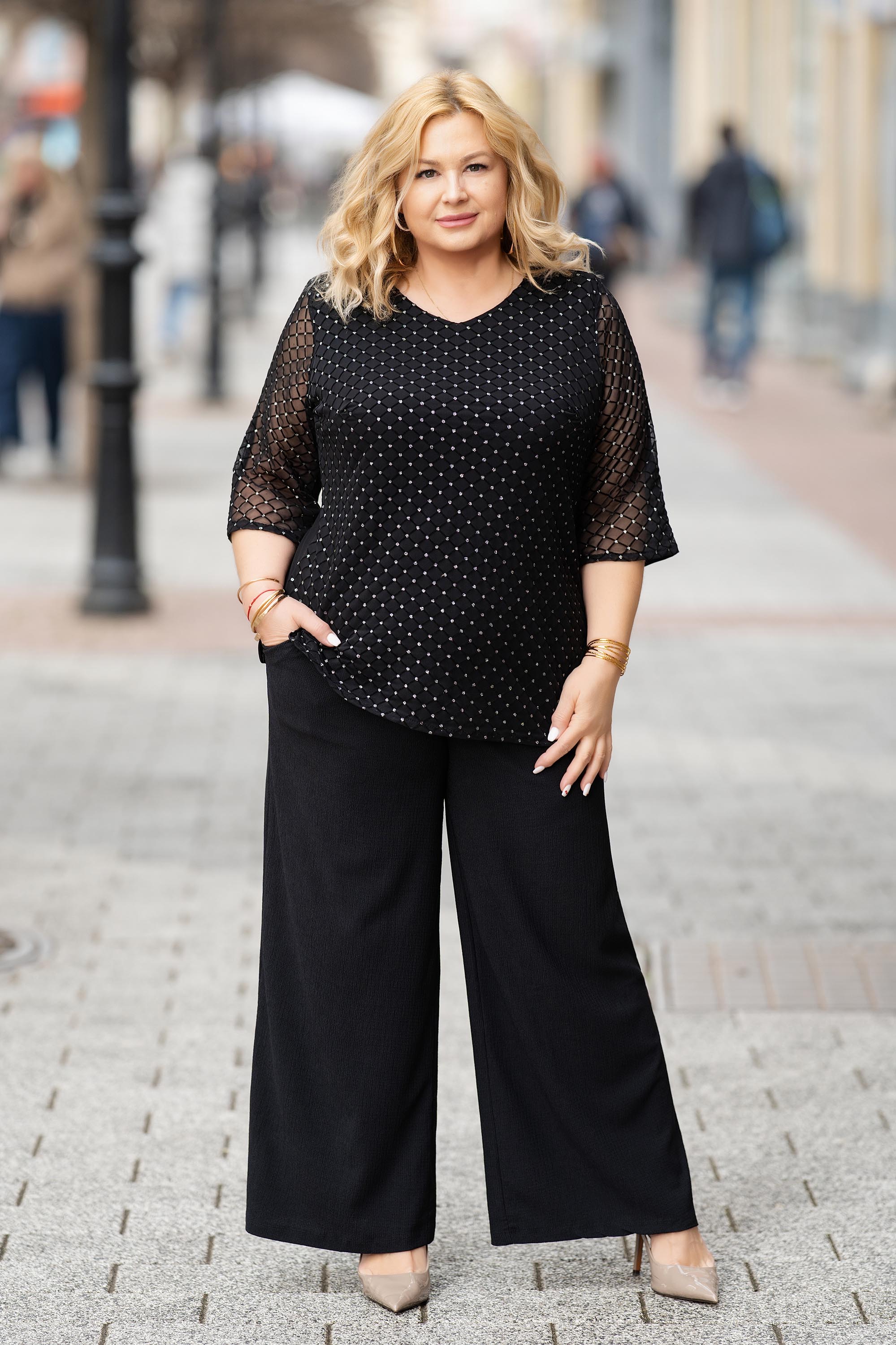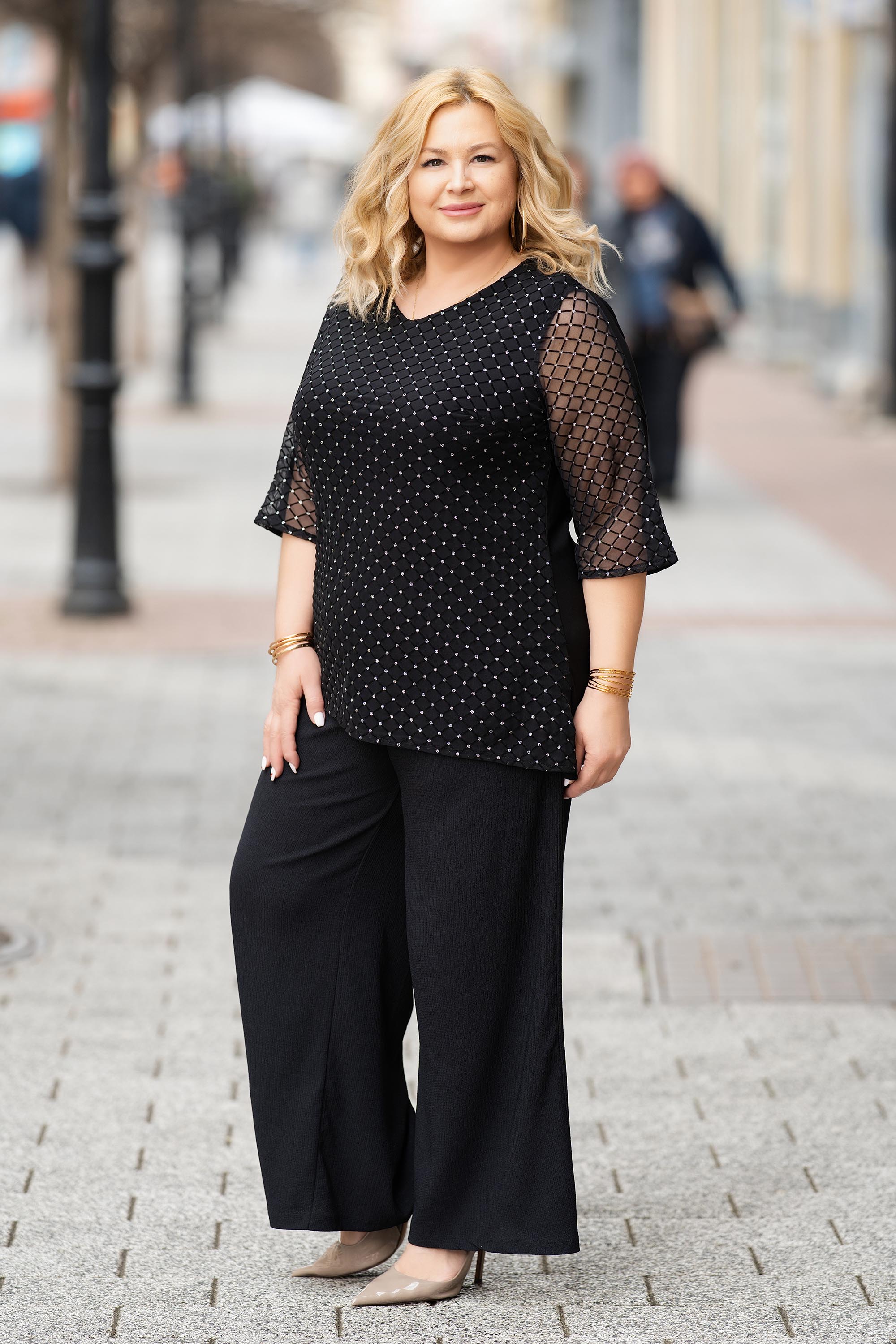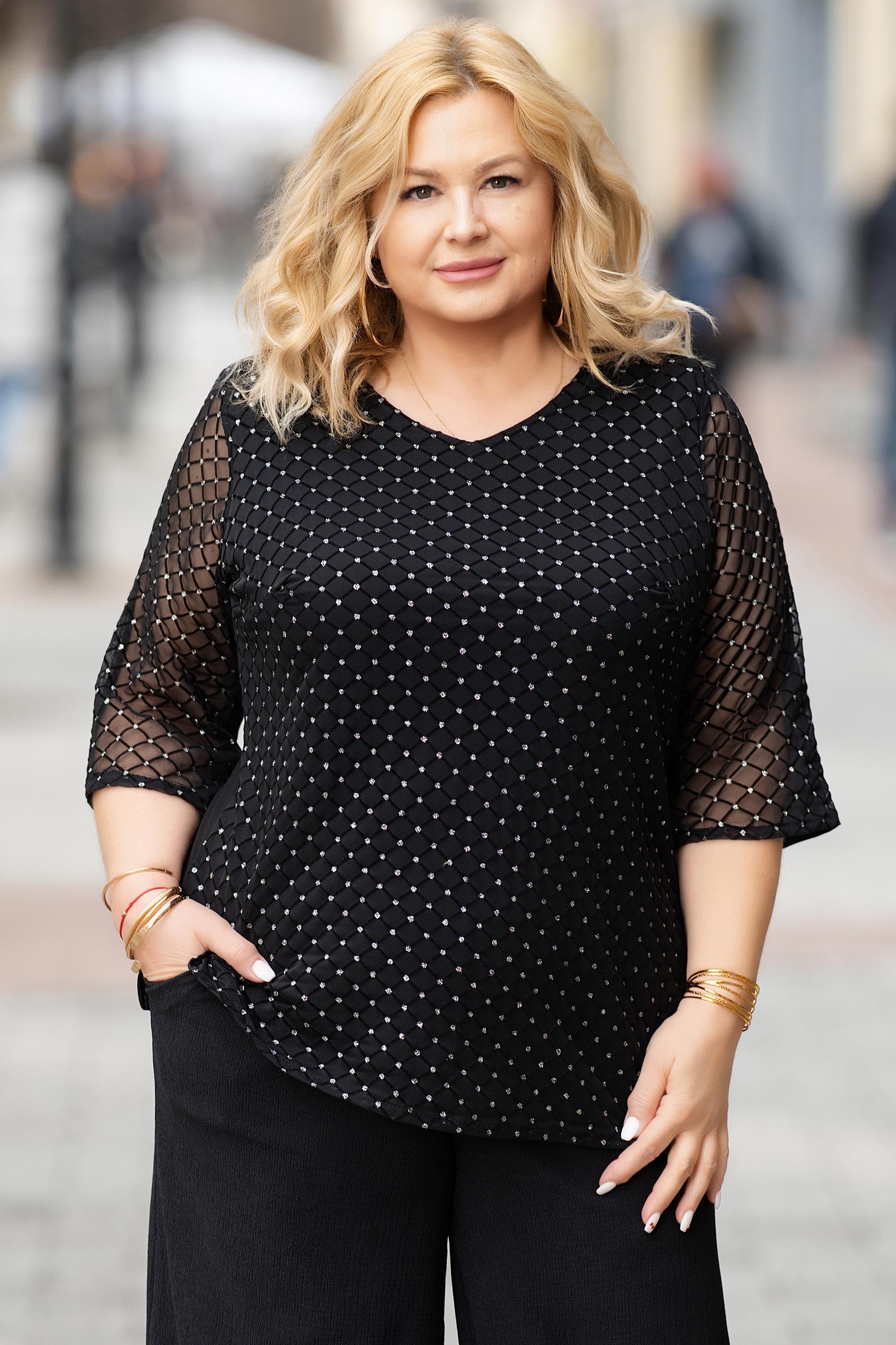 Стилна макси блуза, създадена да подчертае женствените форми с комфорт и увереност. Леко еластичната материя пада плавно по тялото и осигурява свобода на движение през целия ден. Острото деколте оформя красив силует в горната част, а 7/8 ръкавът придава балансирана пропорция. Акцентът от мрежа с камъни внася дискретен блясък и превръща модела в отличен избор за вечерни излизания или стилна градска визия.