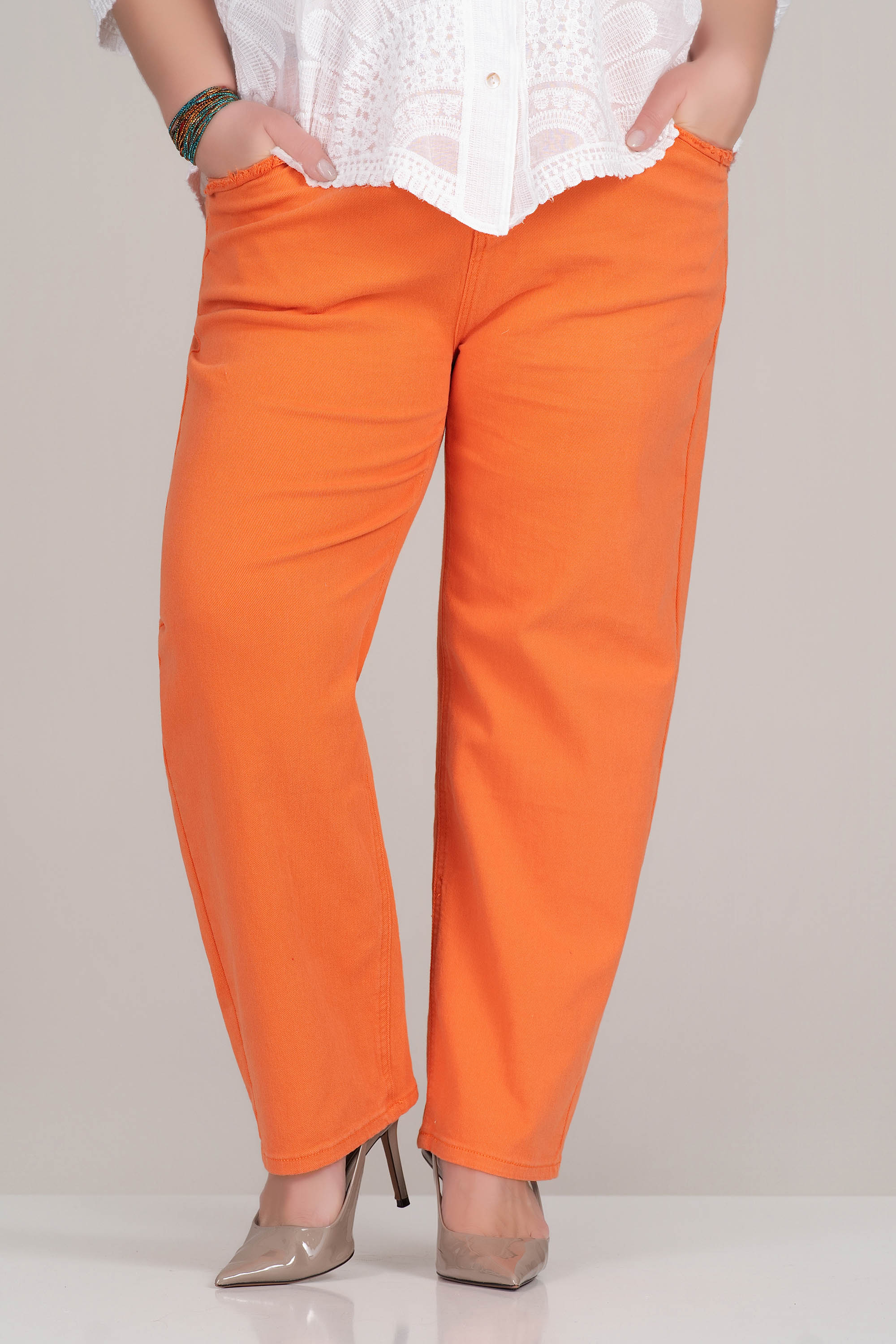 МАКСИ памучен панталон в оранжево с ластик в талията и бродерия