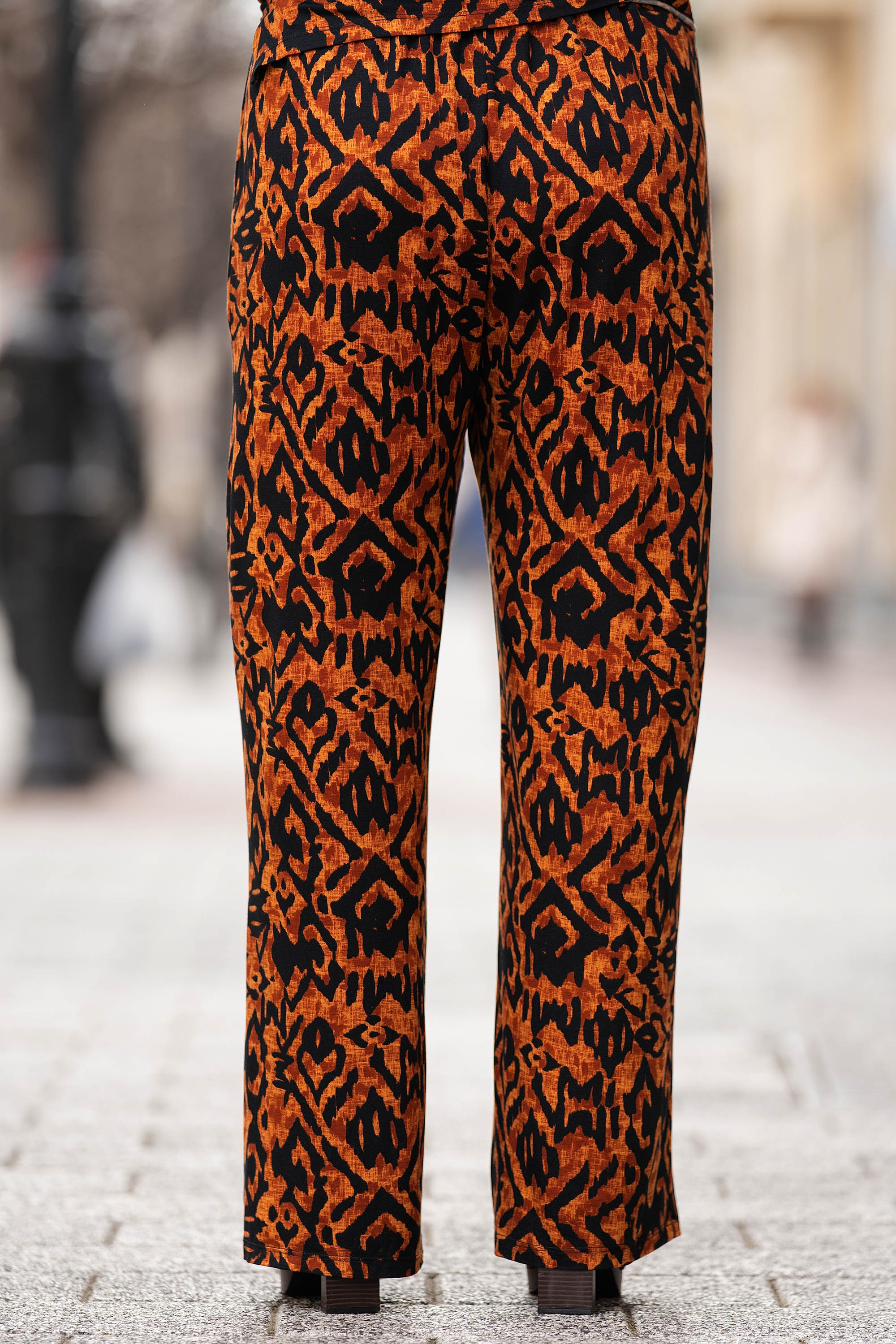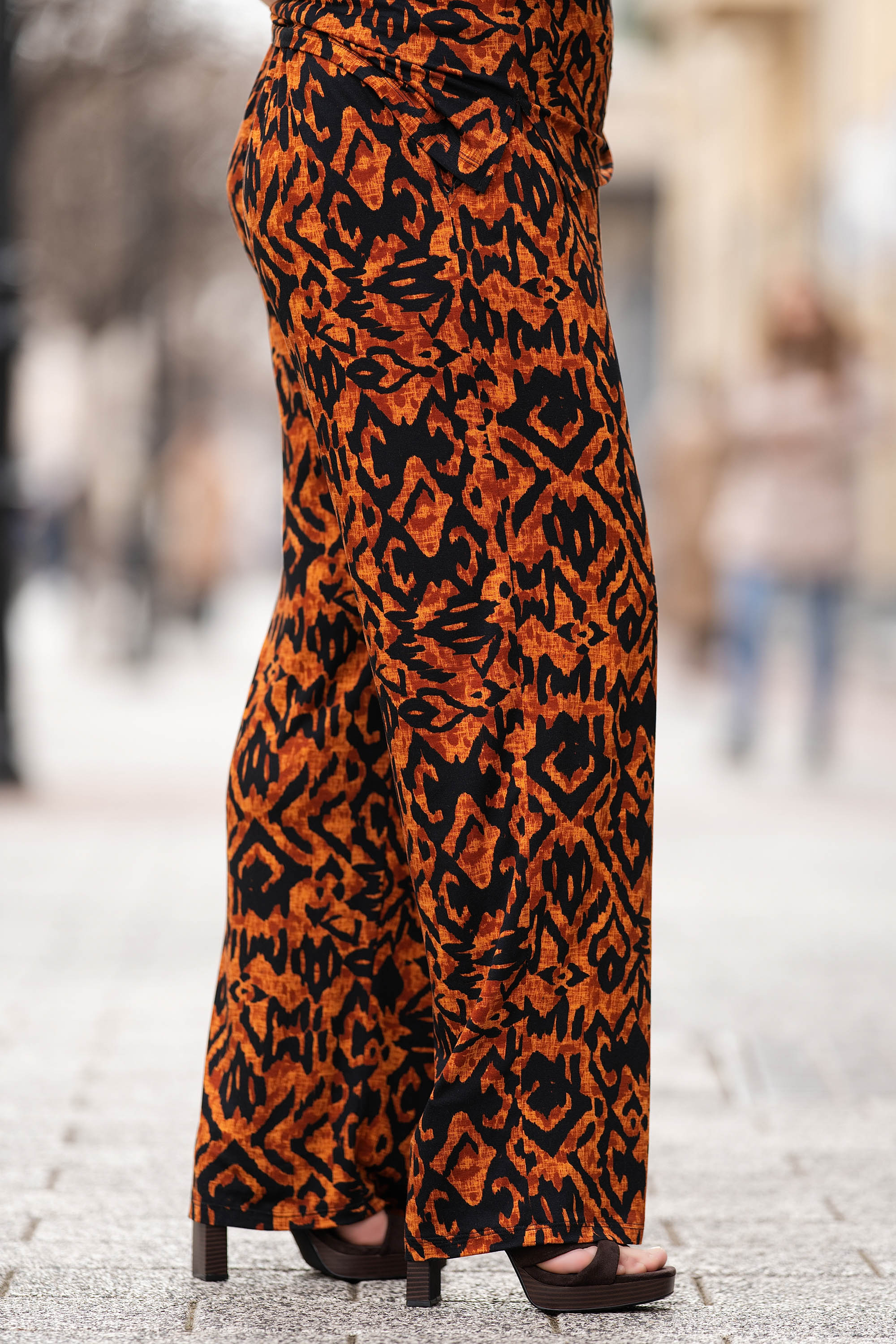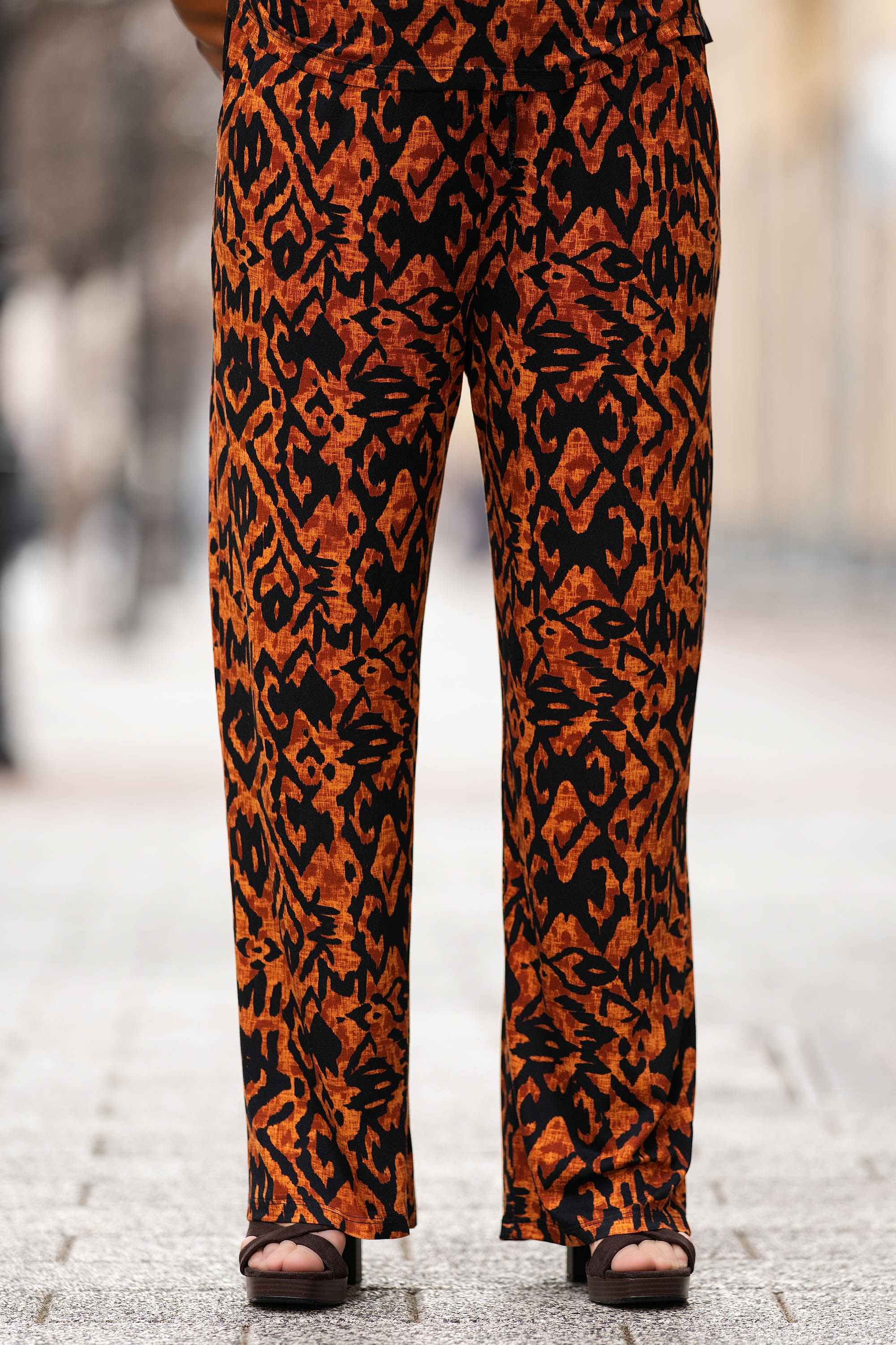 Макси панталон в цвят керемида с черен етно принт