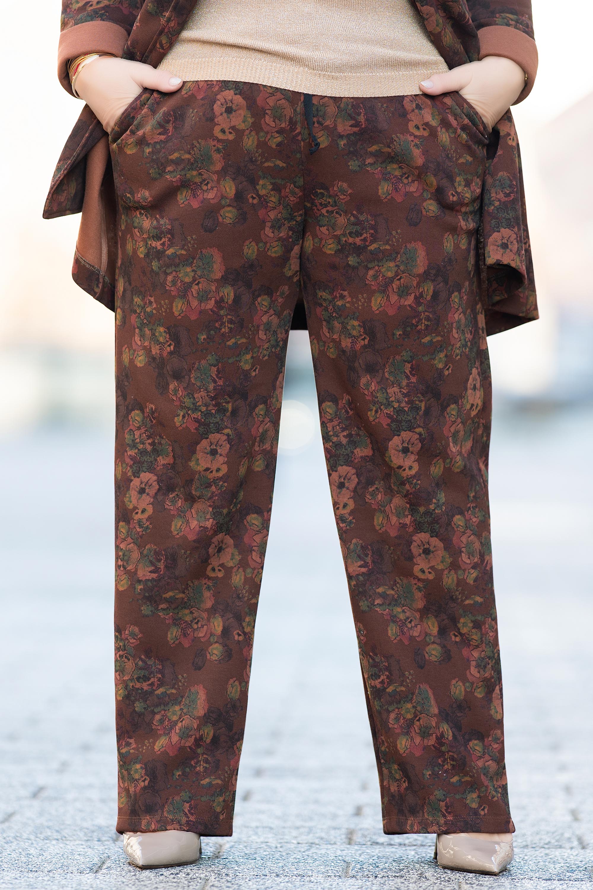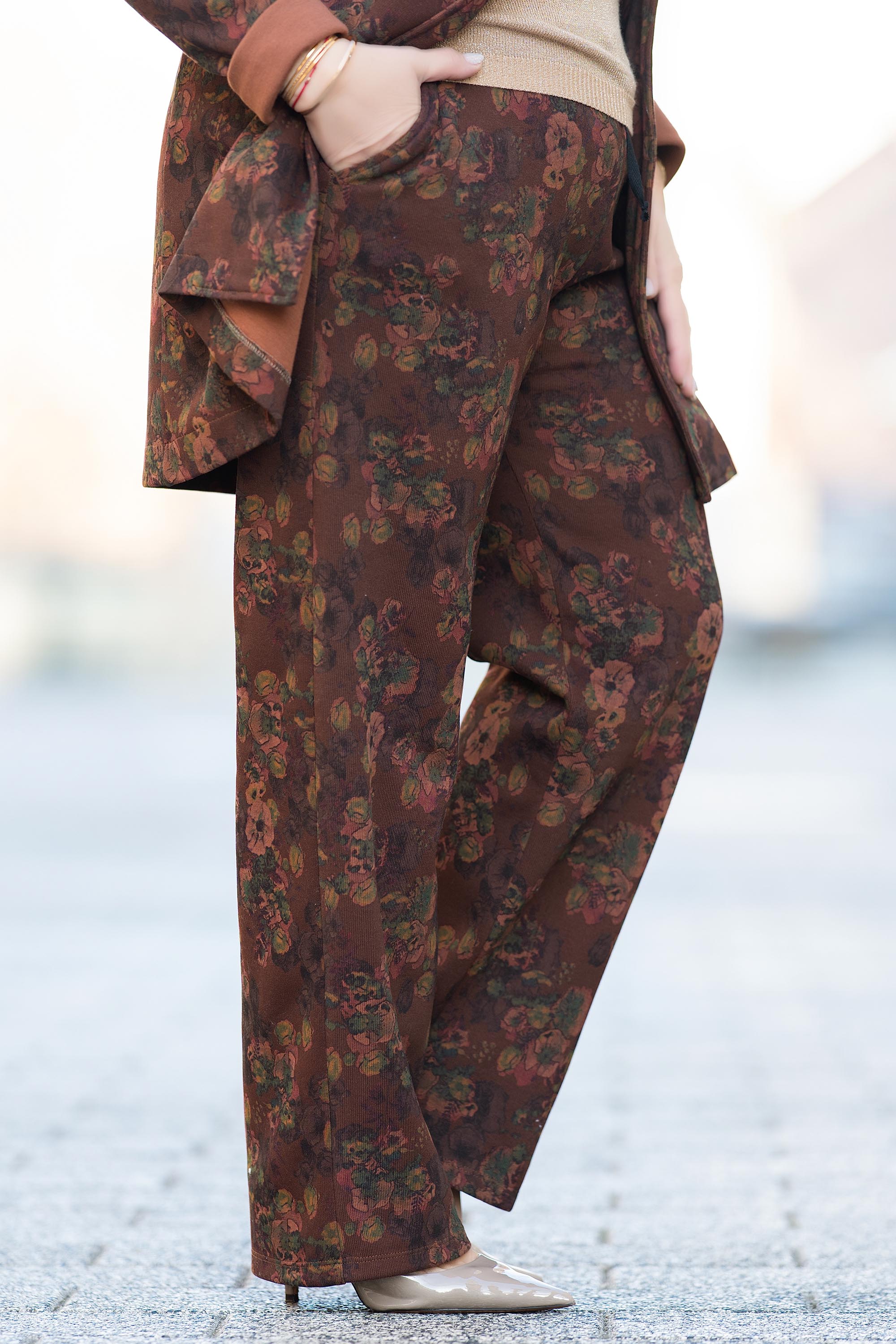 МАКСИ панталон в кафяво със флорален принт и свободна кройка