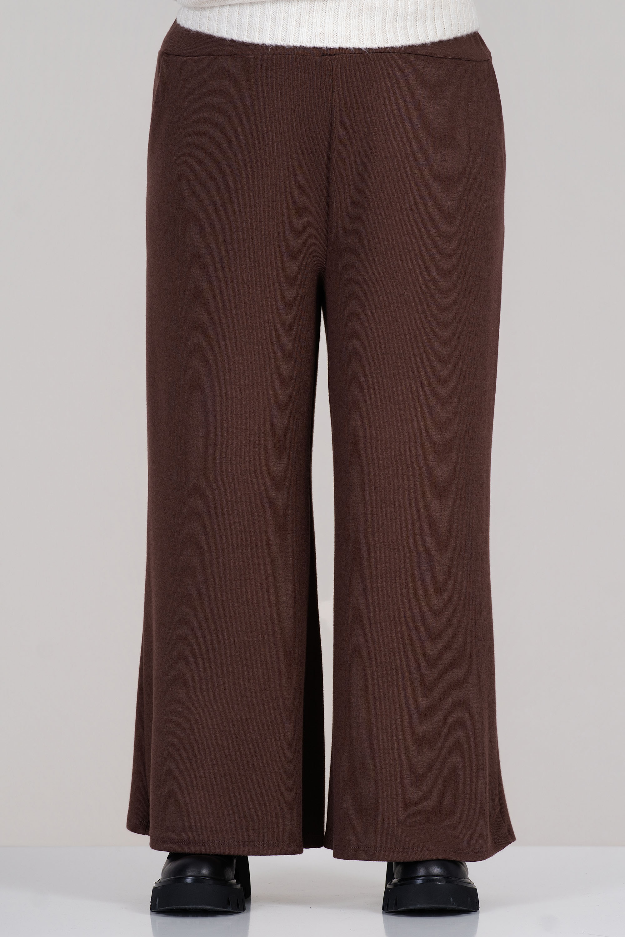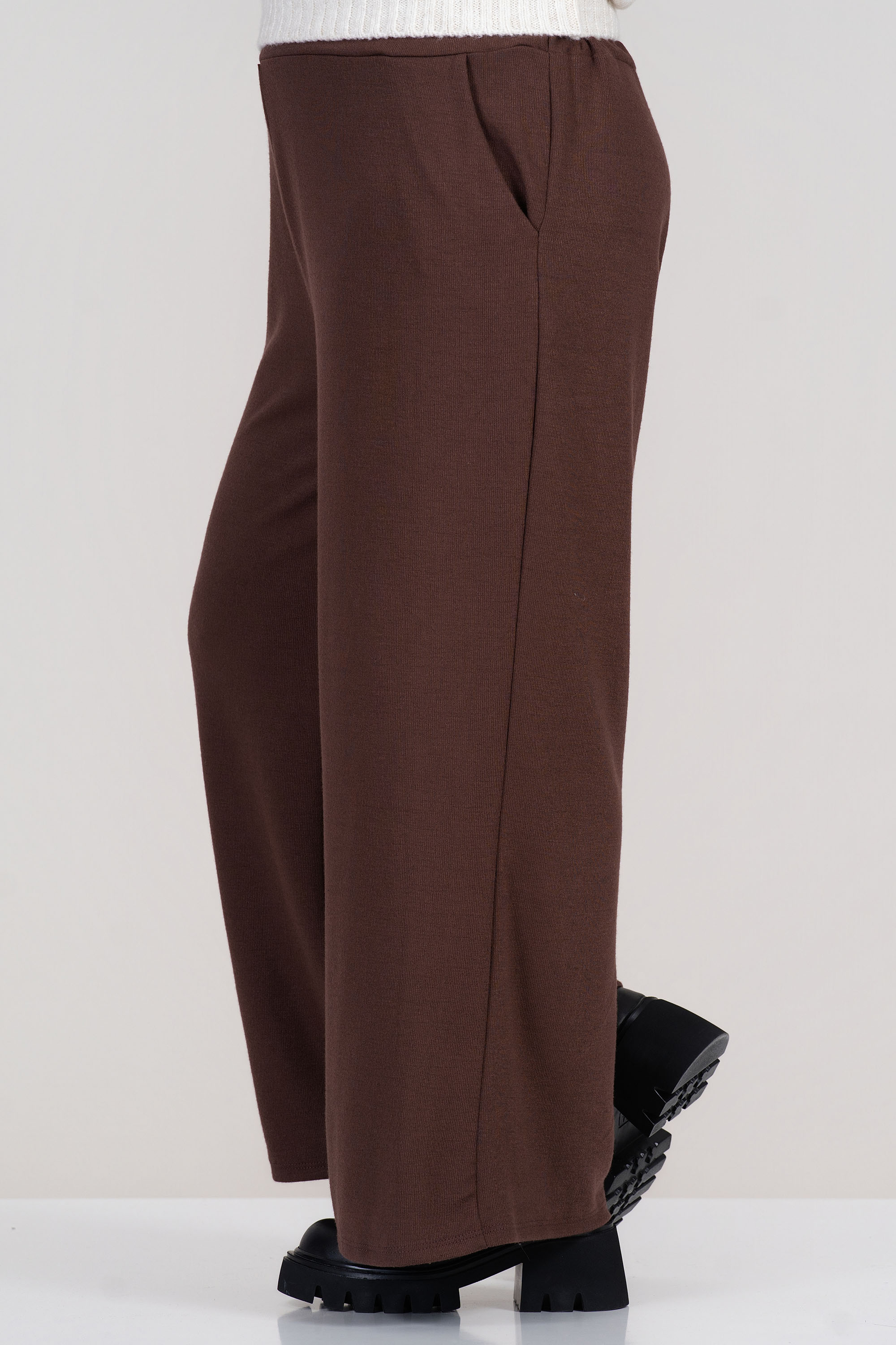 Фино плетен панталон в кафяв цвят с изчистена линия. Създаден с мисъл за ежедневна практичност и свобода на движението. Еластичната талия гарантира отлично прилягане, а меката му материя осигурява комфорт през целия ден. Перфектно се съчетава с блузи и пуловери за завършена визия в ежедневието през студените дни.