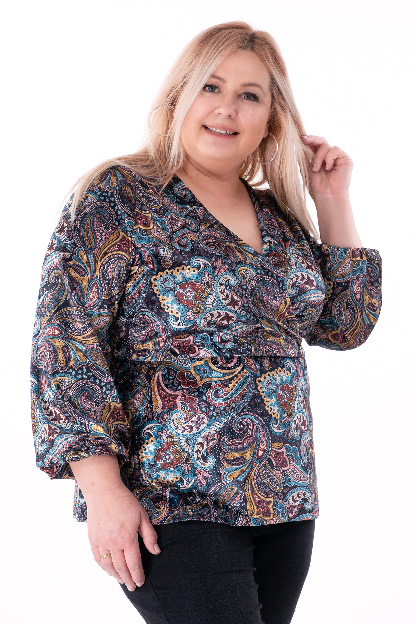 МАКСИ плюшена блуза с цветен флорален принт