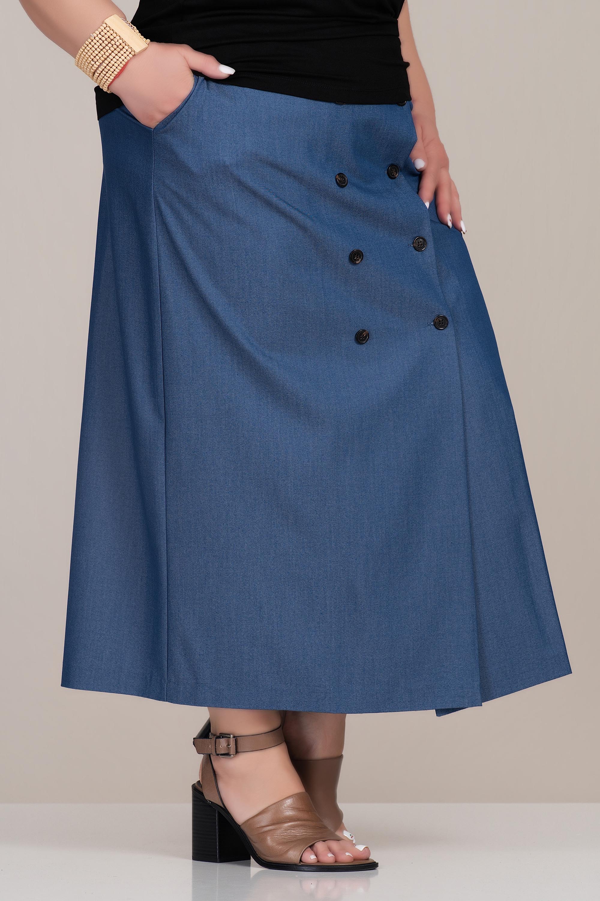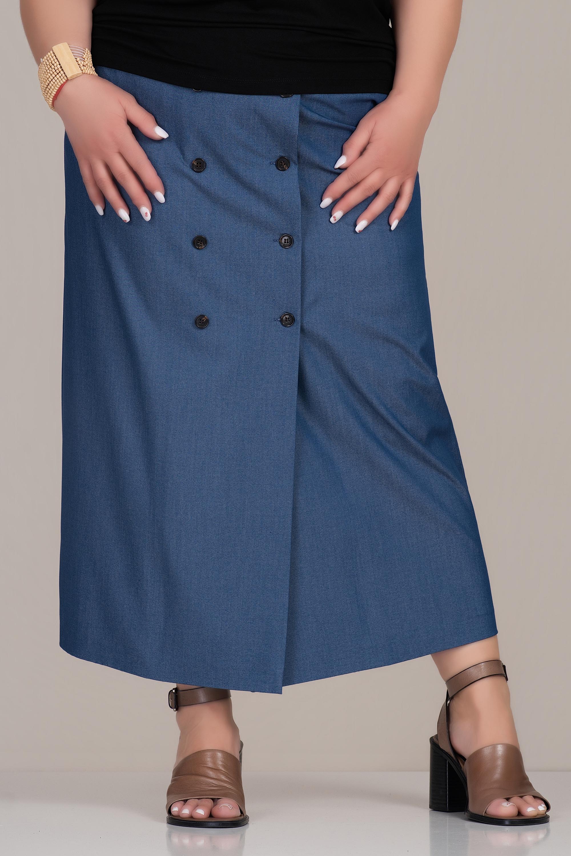 МАКСИ пола с ефект син деним с двуредно закопчаване