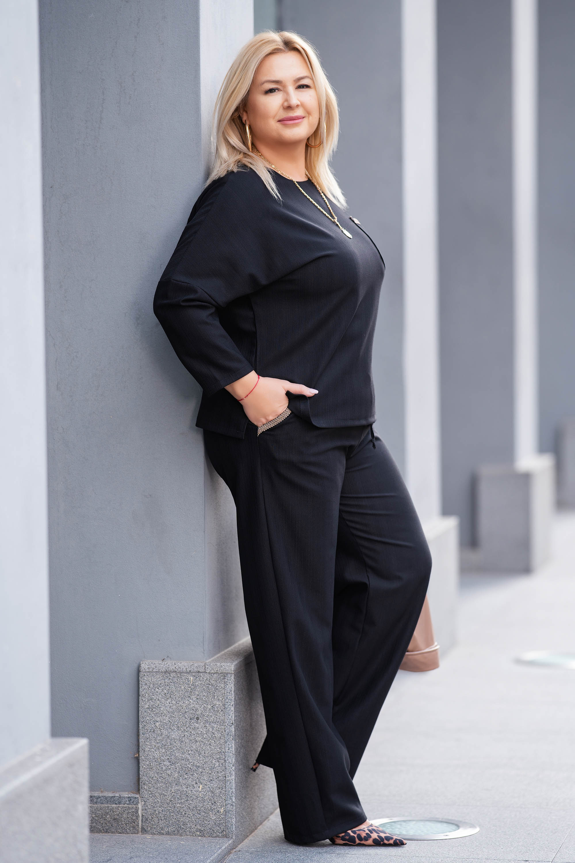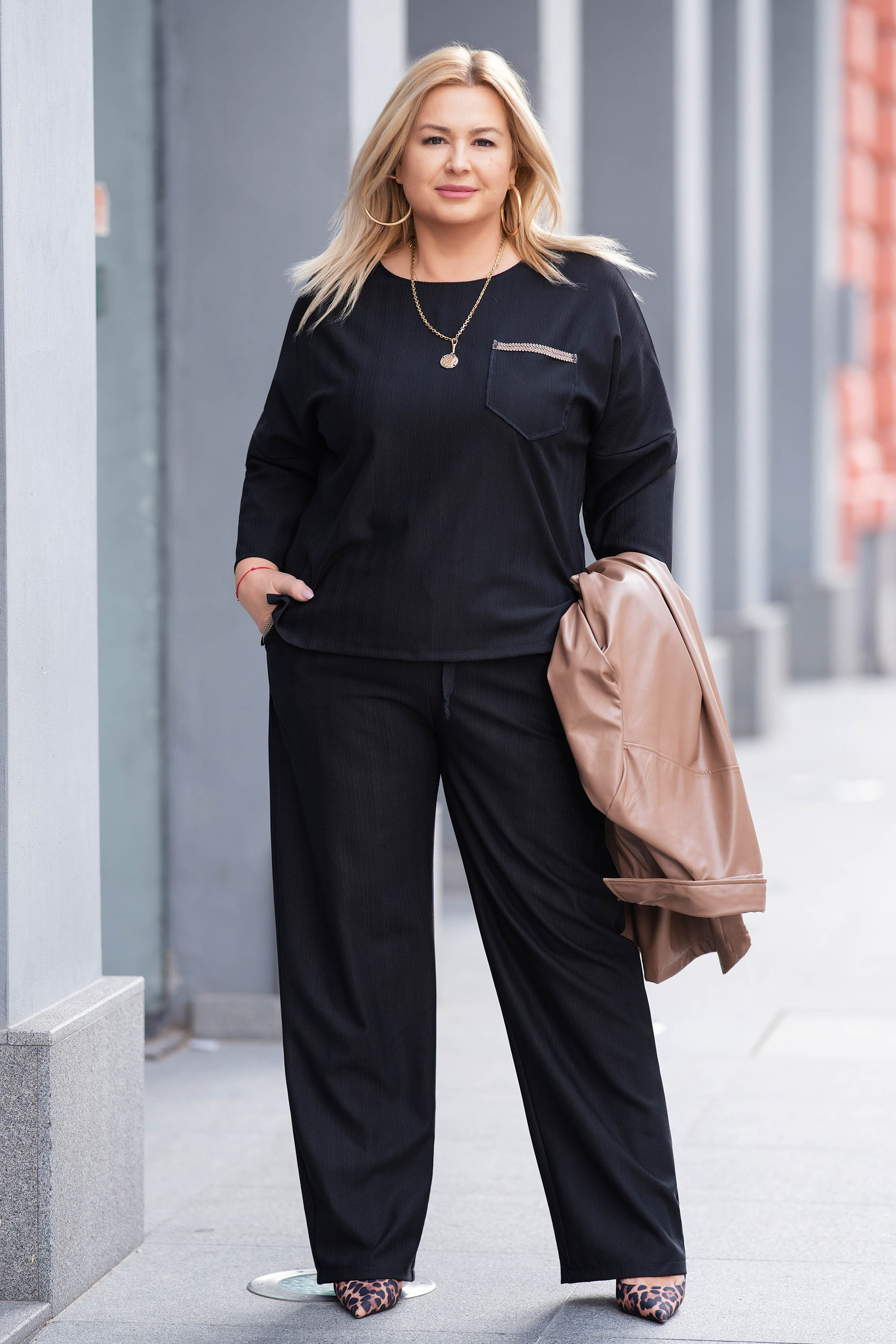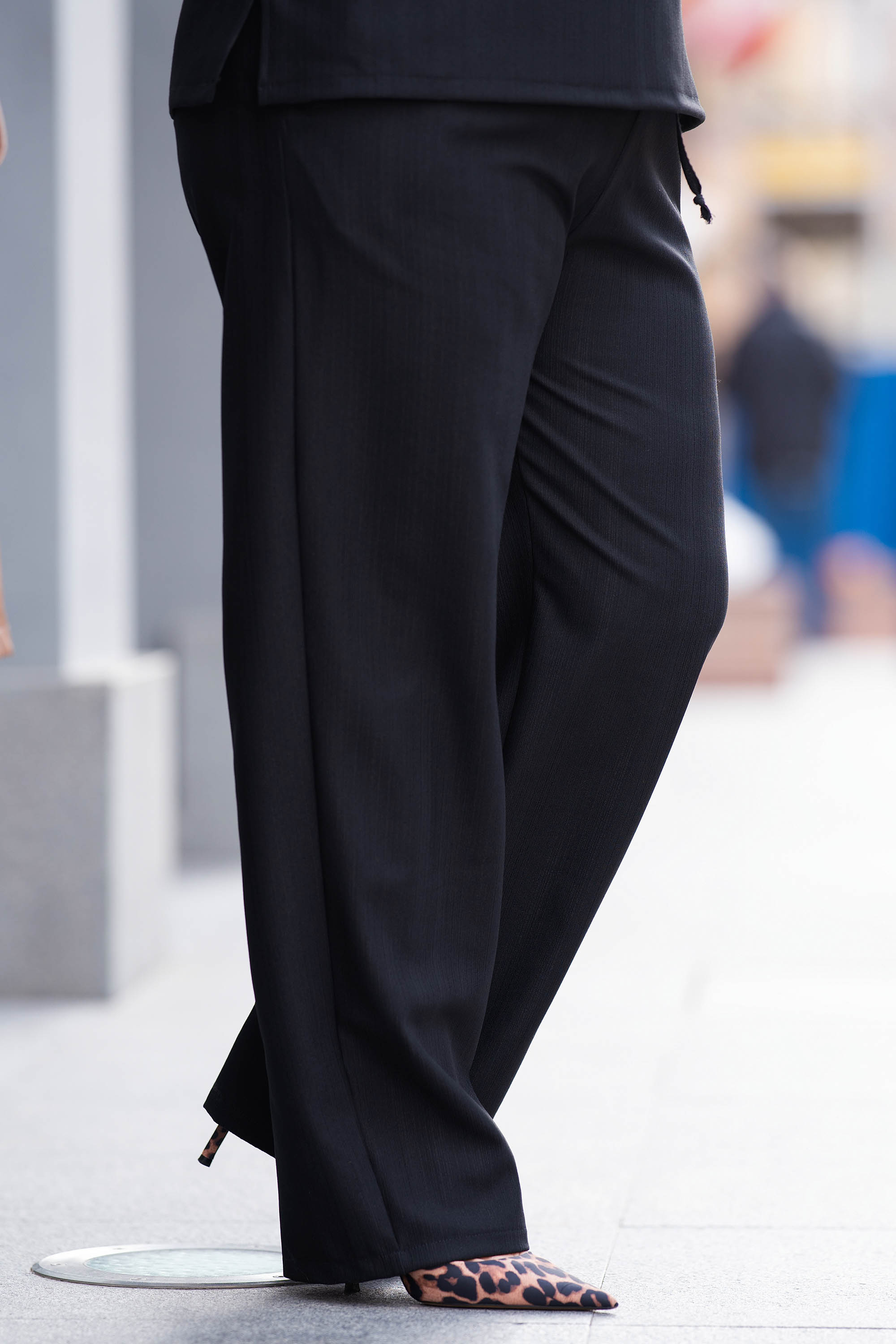 Комфортен дълъг панталон от мека и еластична материя с високо съдържание на вискоза. Еластичната талия с връзка и правата кройка осигуряват удобно прилягане. Подходящ както за съчетание с блузата от същата серия, така и за самостоятелно носене в ежедневието.
