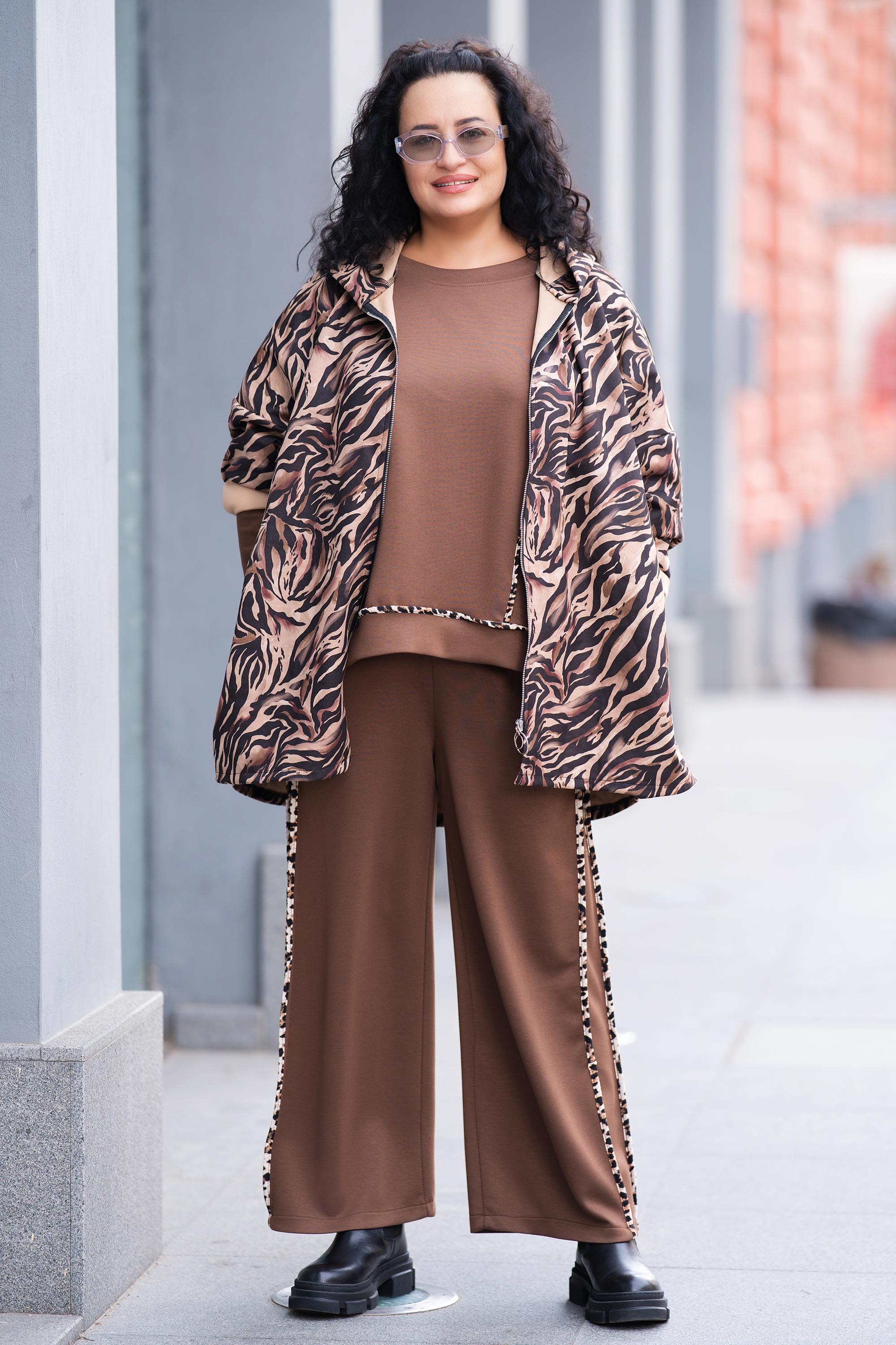 Макси преходно яке с тигров прин в черно и бежово