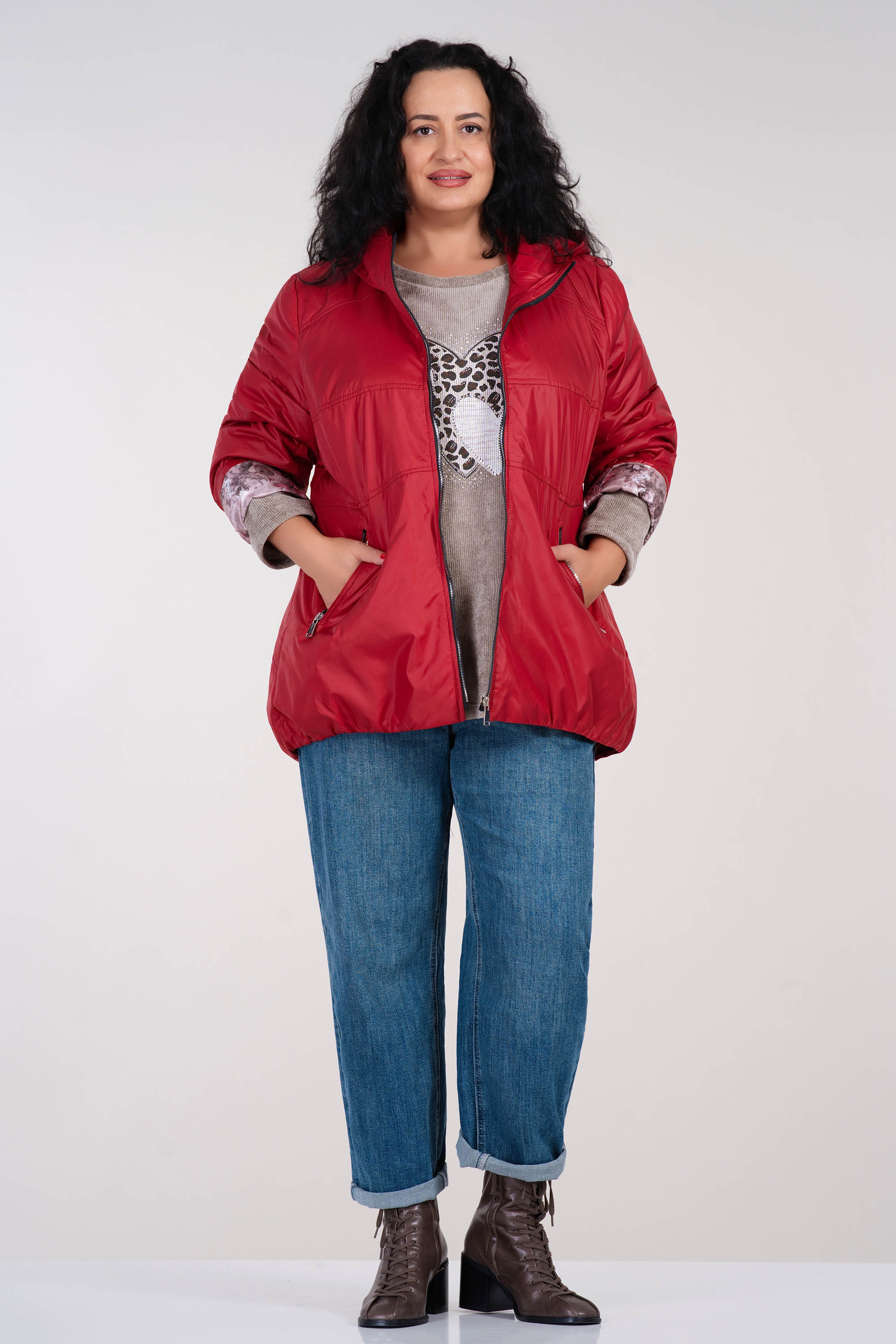 Ярко червено макси яке, изработено от лека и практична материя, подходящо за пролетта и есента. Моделът е снабден с качулка, два джоба с цип и хоризонтални тегели за по-добро прилягане. Цветният хастар създава ефектен акцент, който се откроява при навиване на ръкавите. Практично и стилно решение за ежедневието.