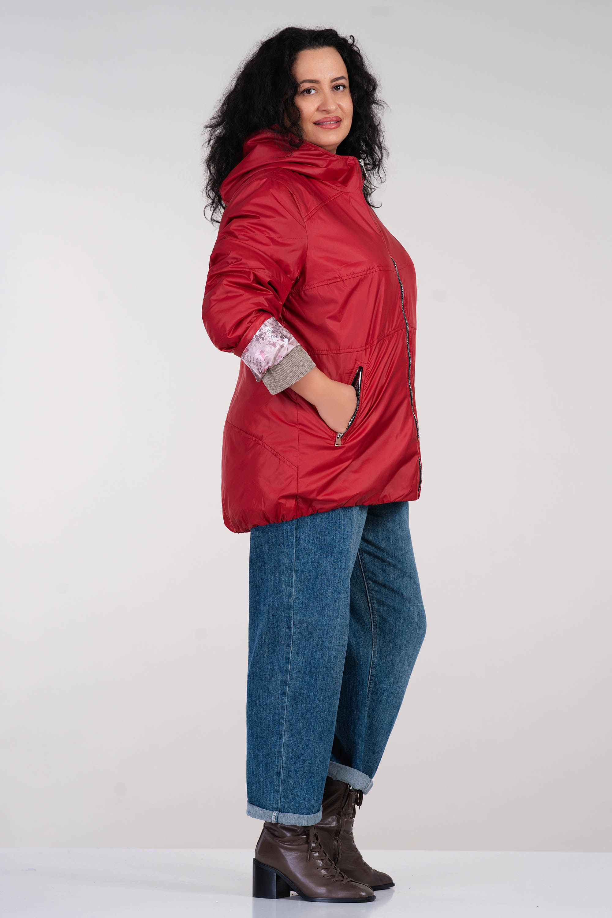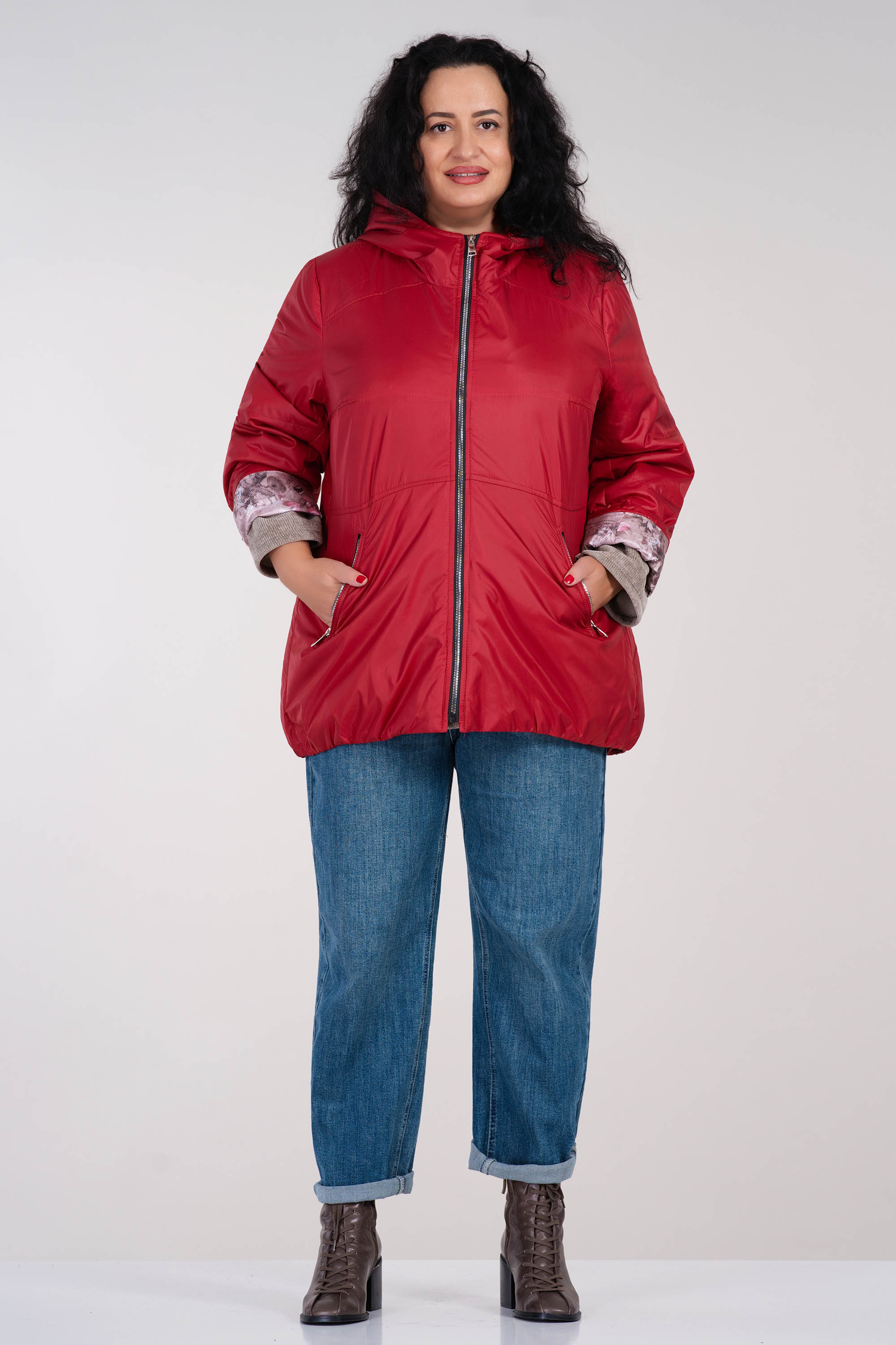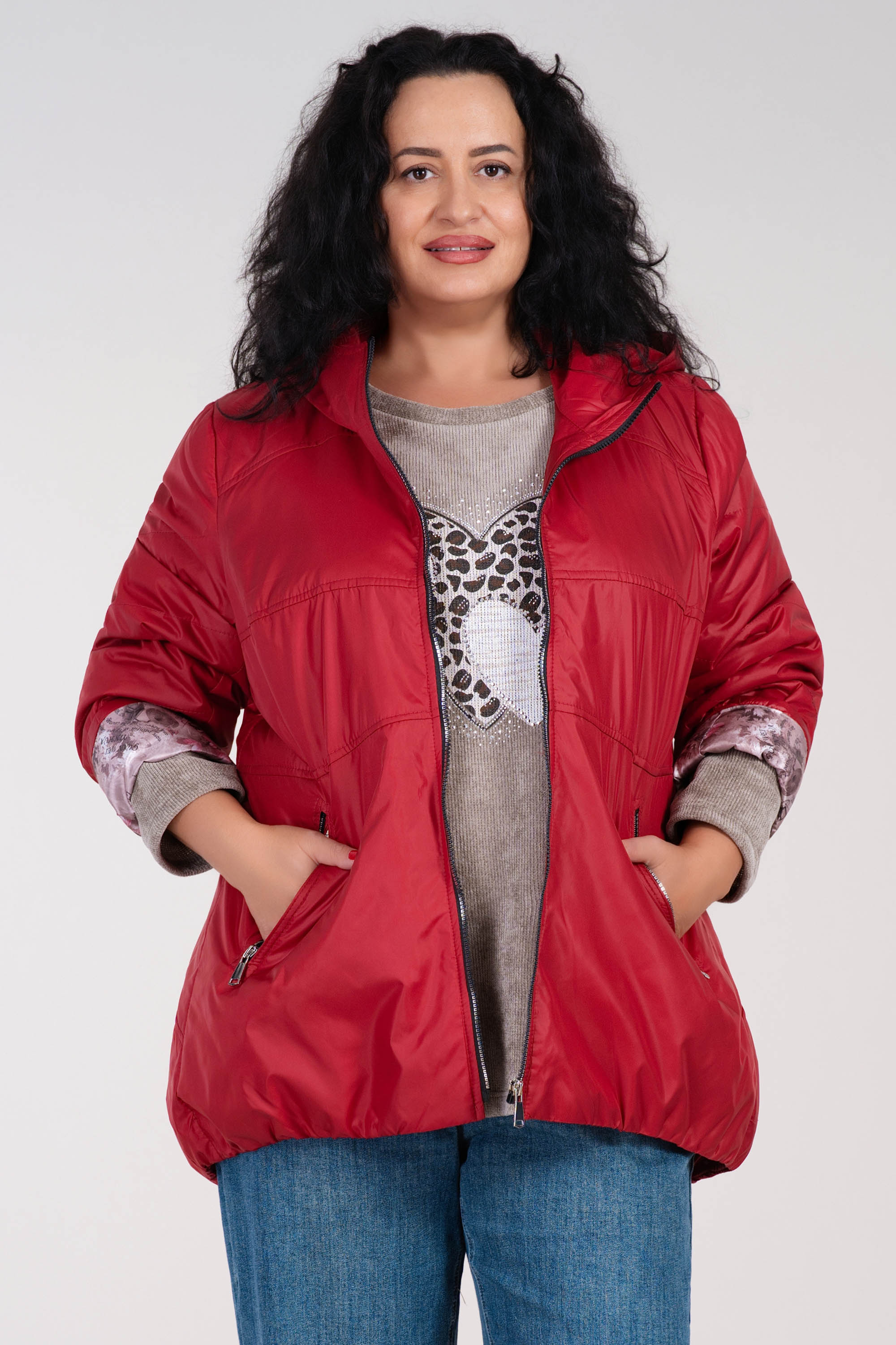 МАКСИ преходно яке в червено с качулка и цветен хастар