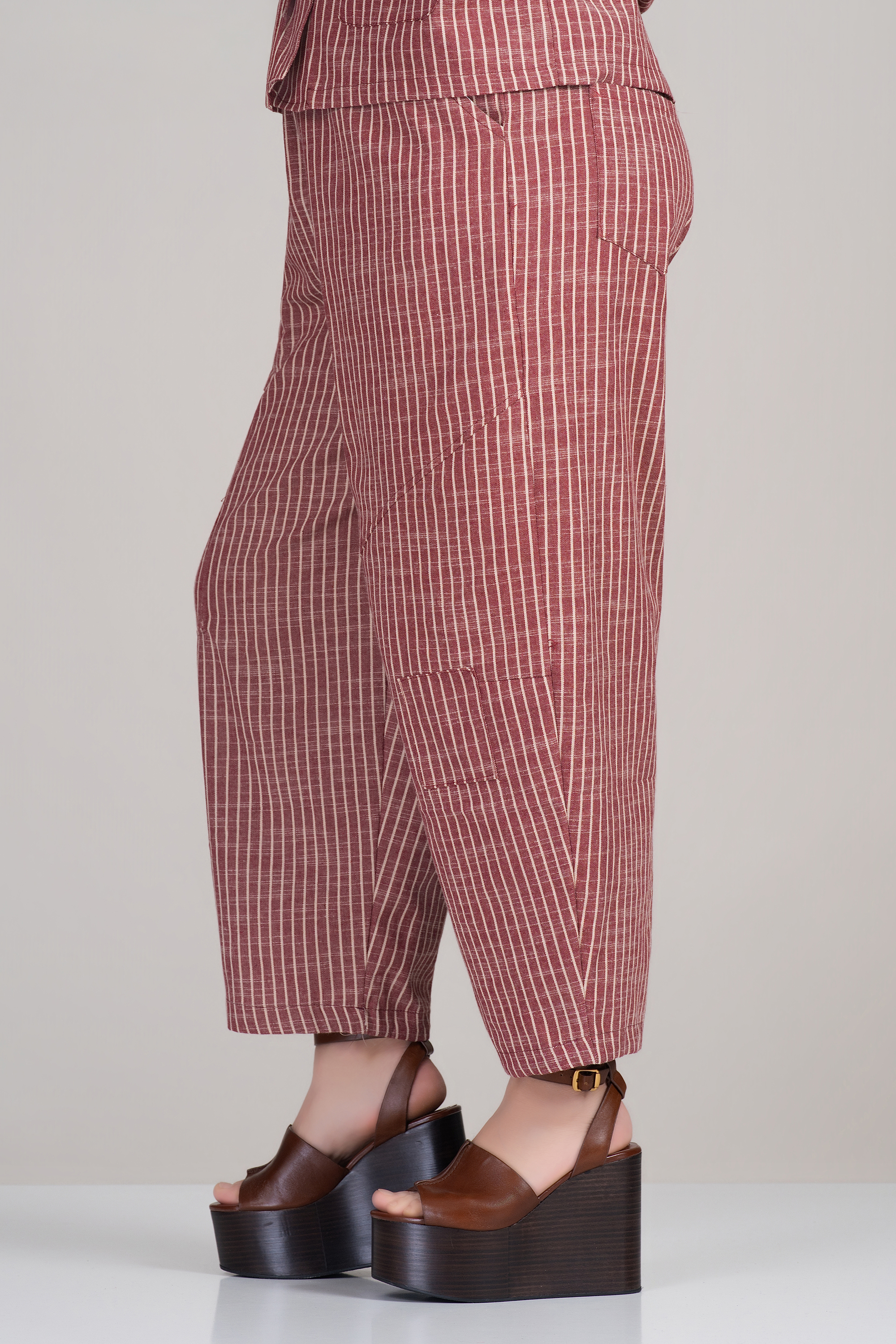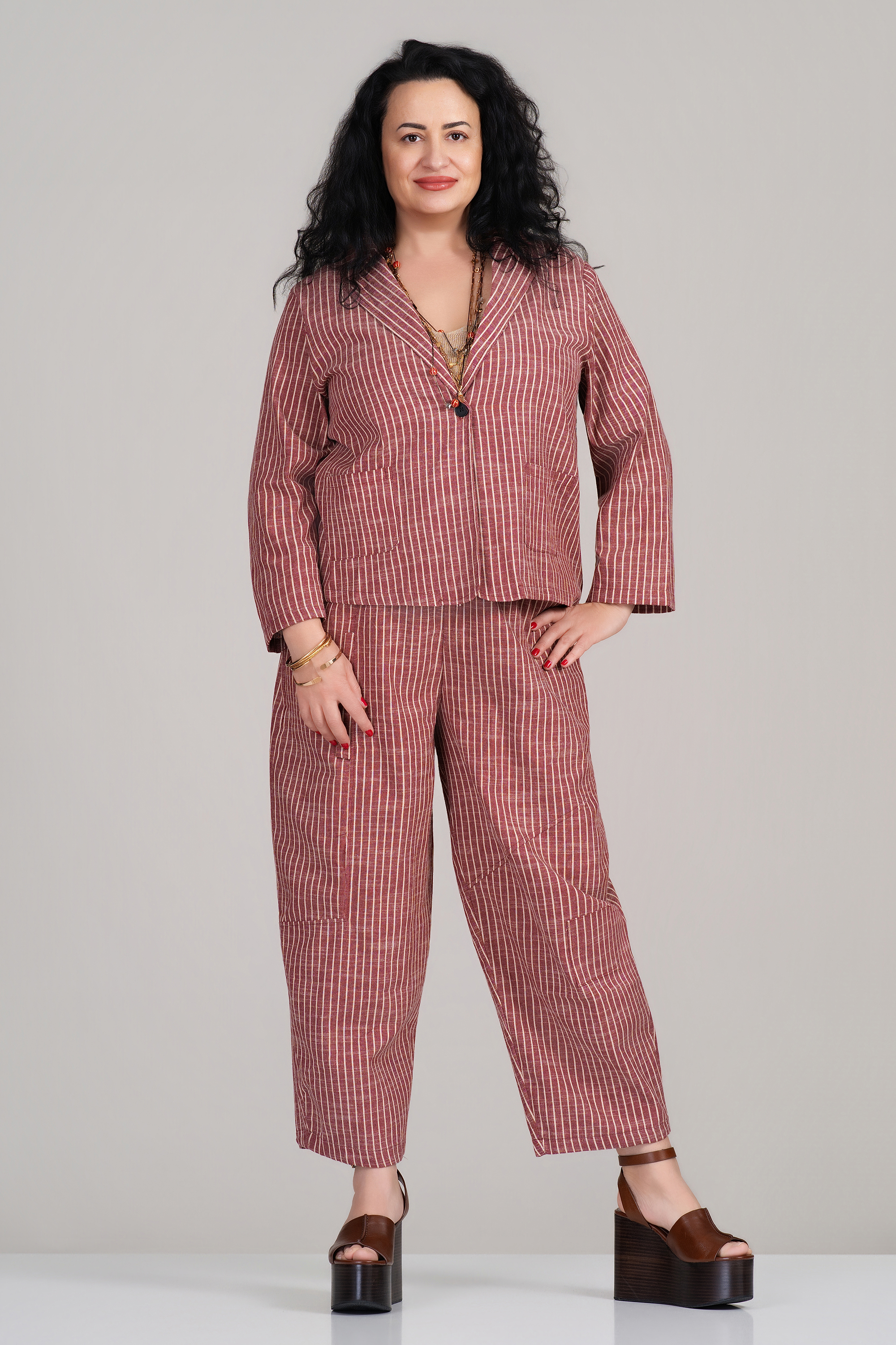 МАКСИ раиран комплект от сако и панталон в цвят керемида