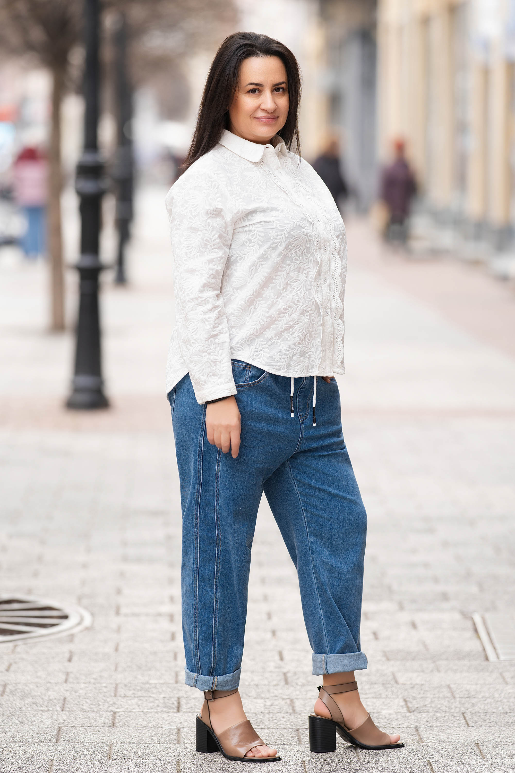 Елегантна и женствена, тази бяла риза от памук е украсена с изящна бродерия на листа и флорални елементи. С нея ще добавите стилен акцент към визията си – перфектна за комбинация с деним, лен или пола. Подходяща както за ежедневни, така и за по-специални поводи.