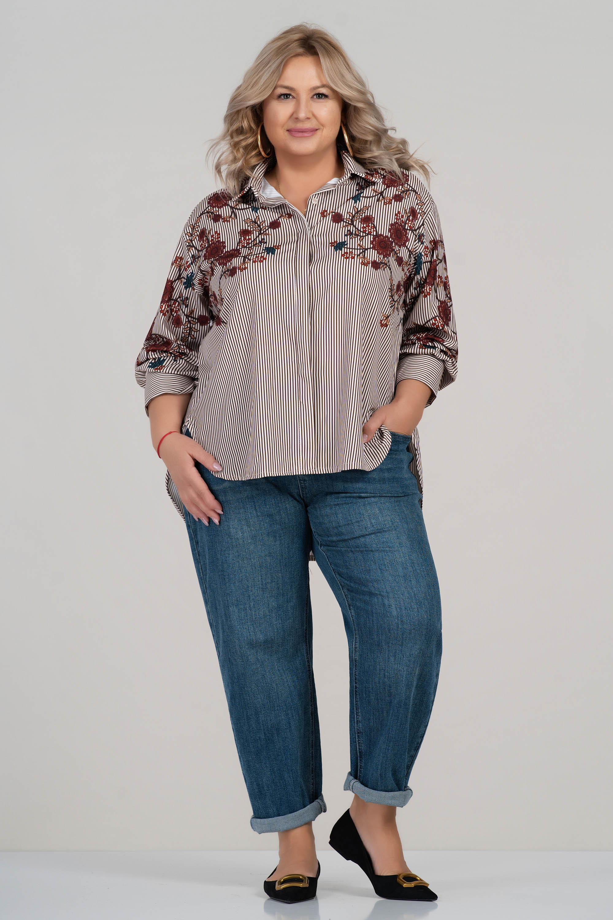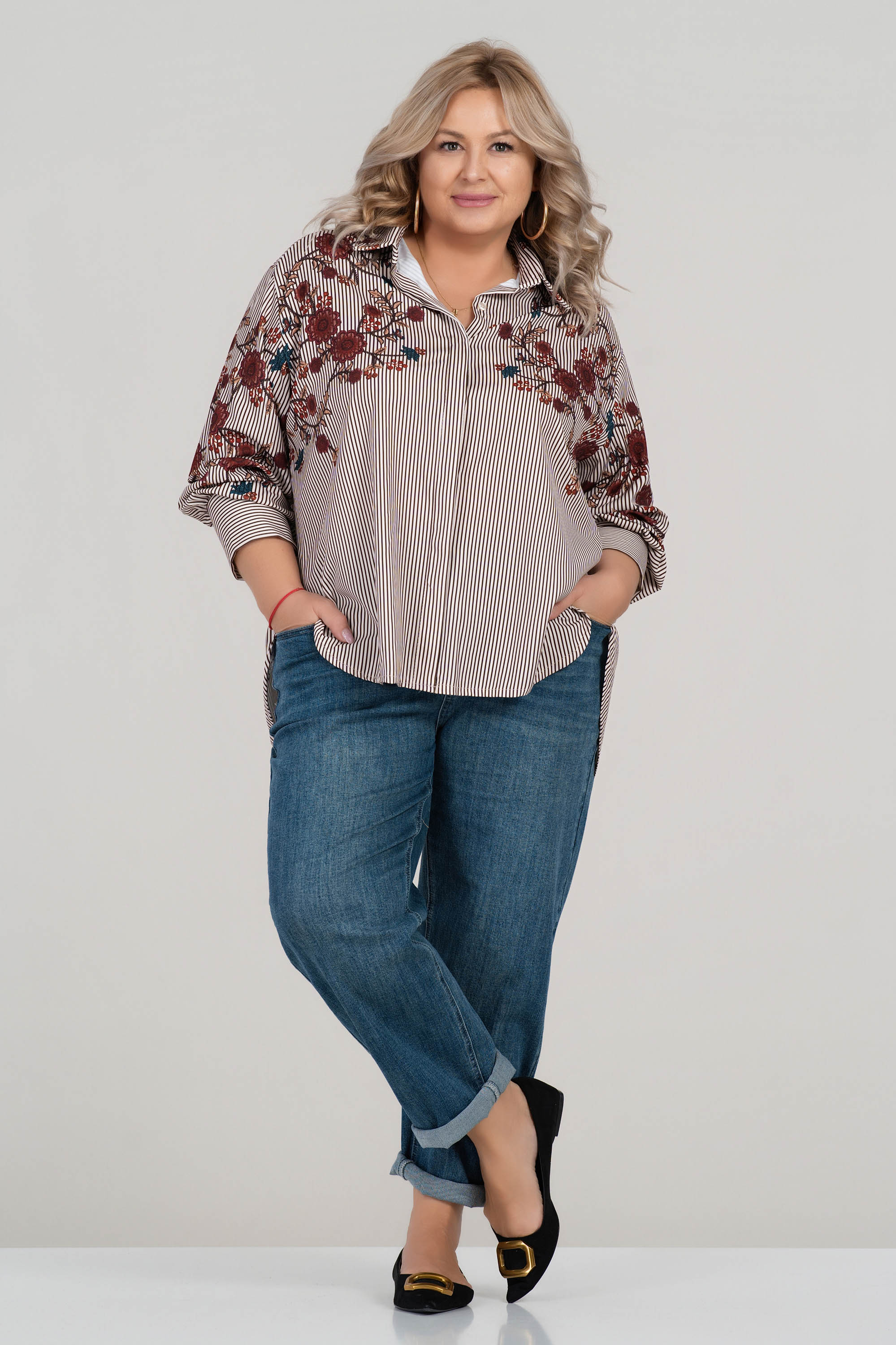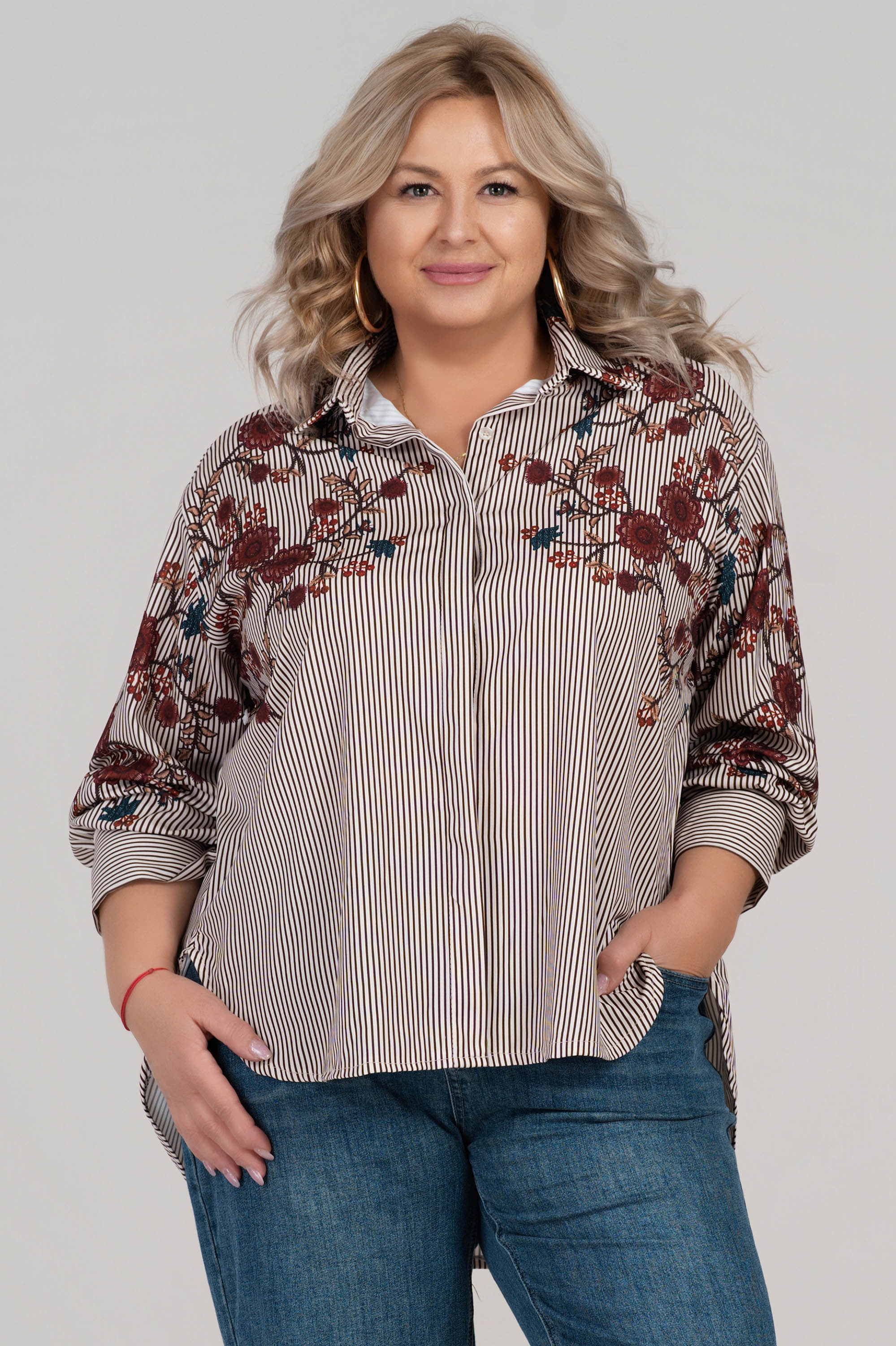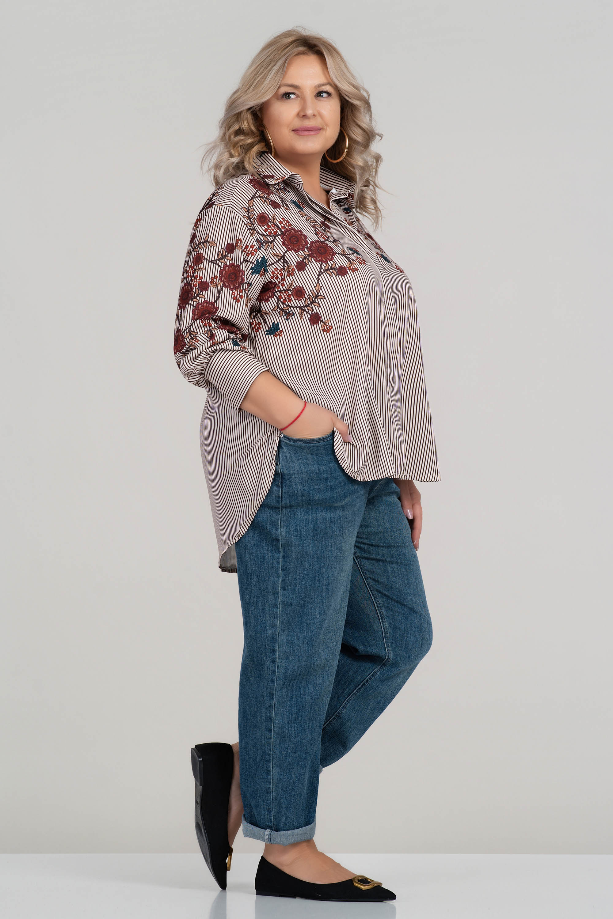 Риза, която съчетава фината структура на вертикалното райе с нежността на флоралния принт. Mатерията е лека, приятна на допир и подходяща за целогодишно носене. Кройката е свободна, което осигурява комфорт и свобода на движение. Дискретните цветове в бордо, червено, зелено и жълто придават артистична визия с лесно комбиниране в ежедневието.
