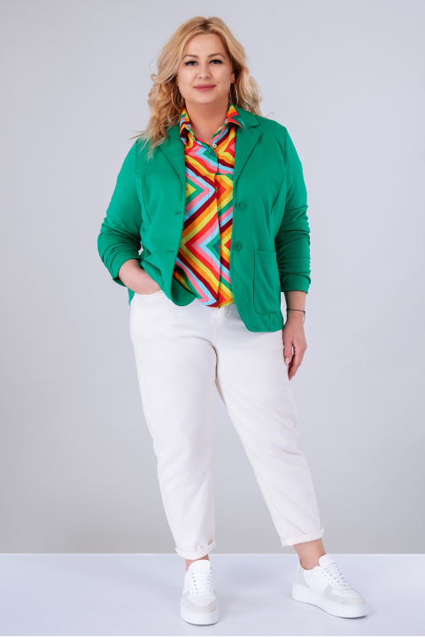 МАКСИ сако от памучно трико в зелено с набран ръкав