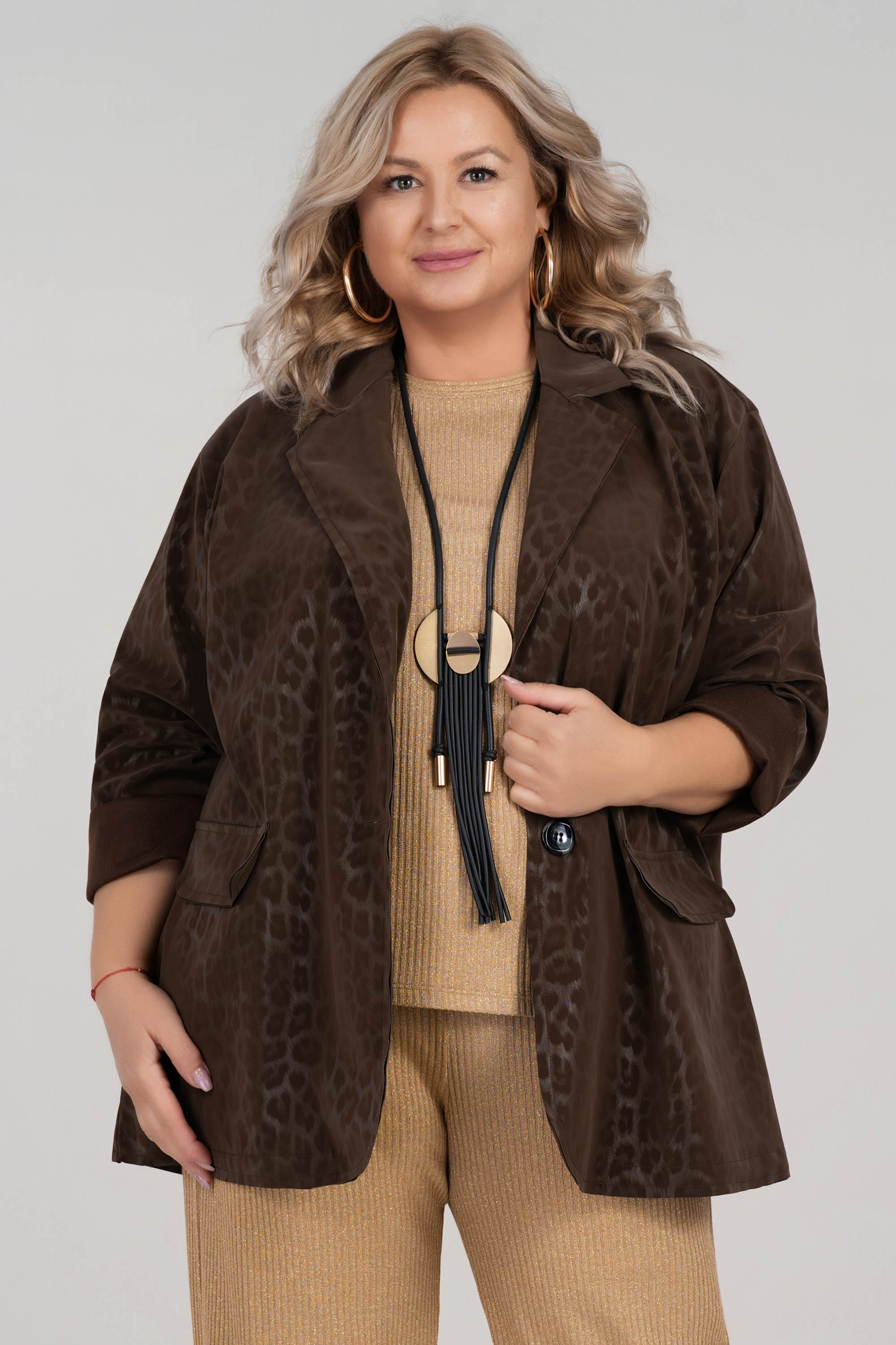Макси сако в кафяво с леопардов принт и лек отблясък