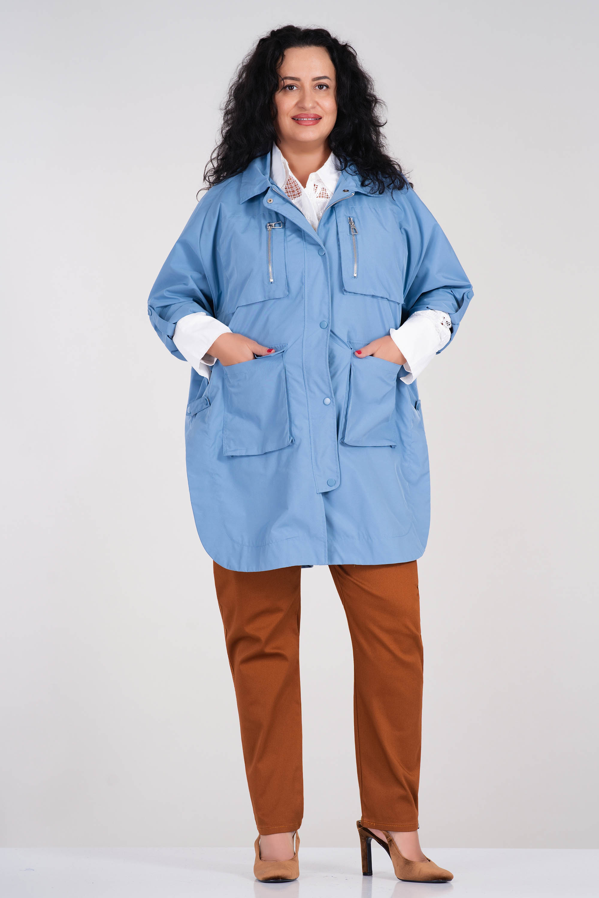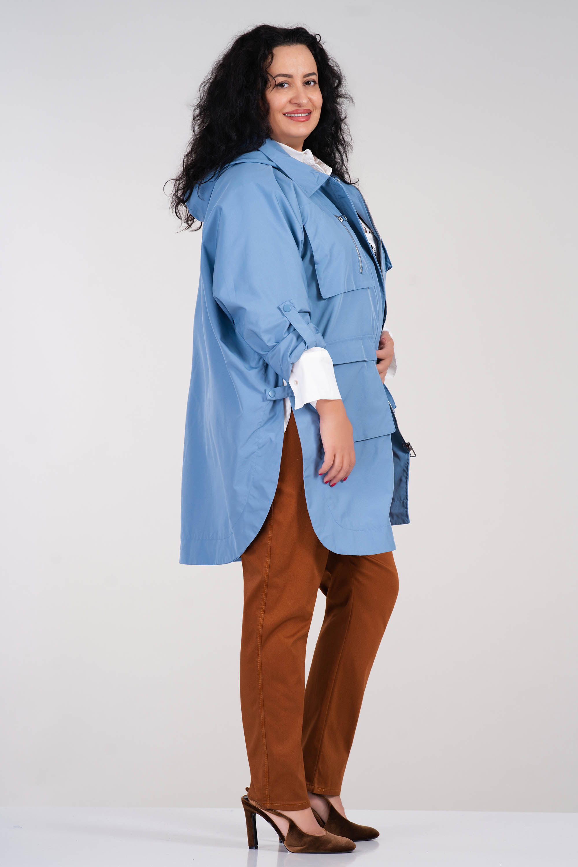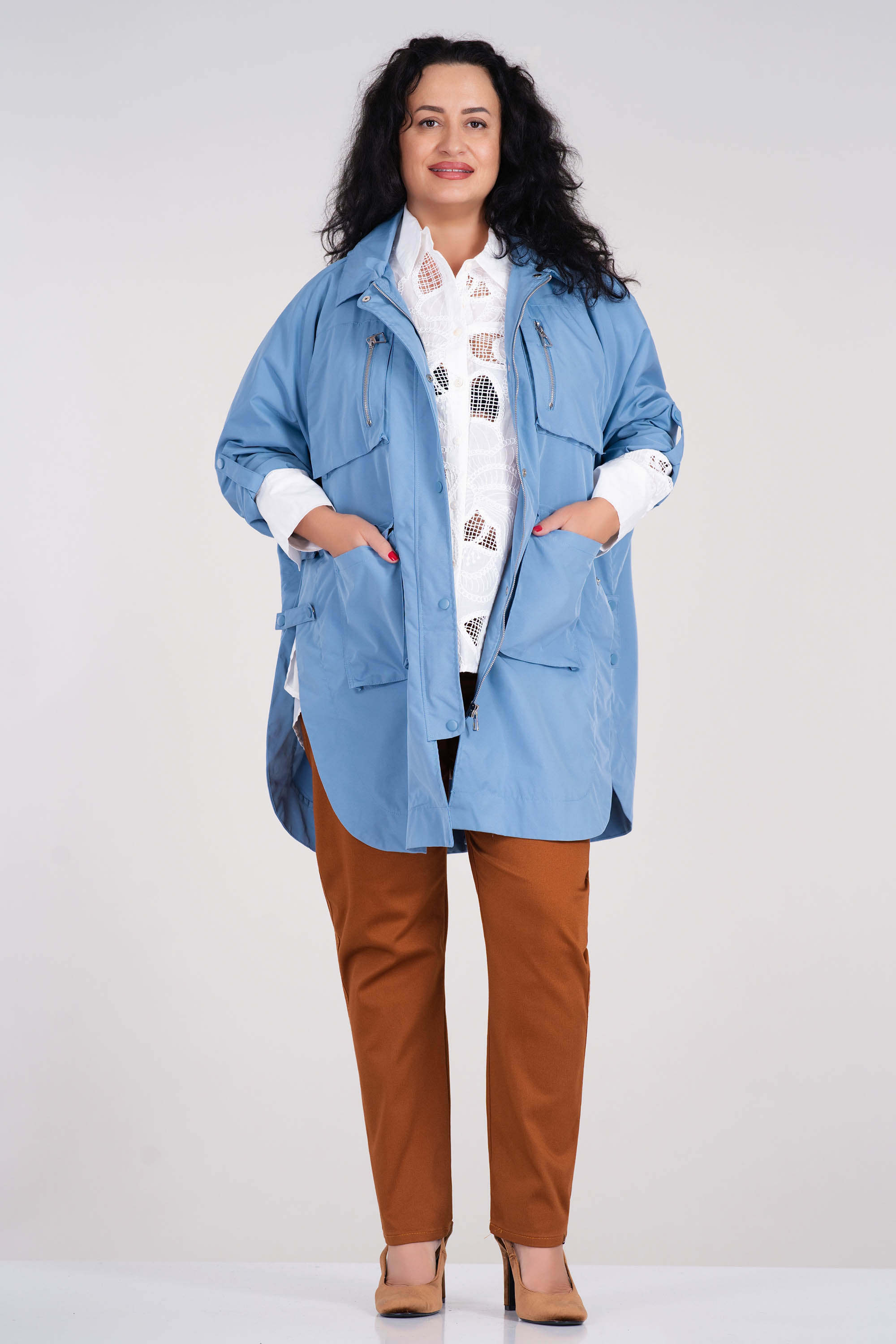 МАКСИ шлифер в синьо с регулиращ се ръкав и финкционални джобове