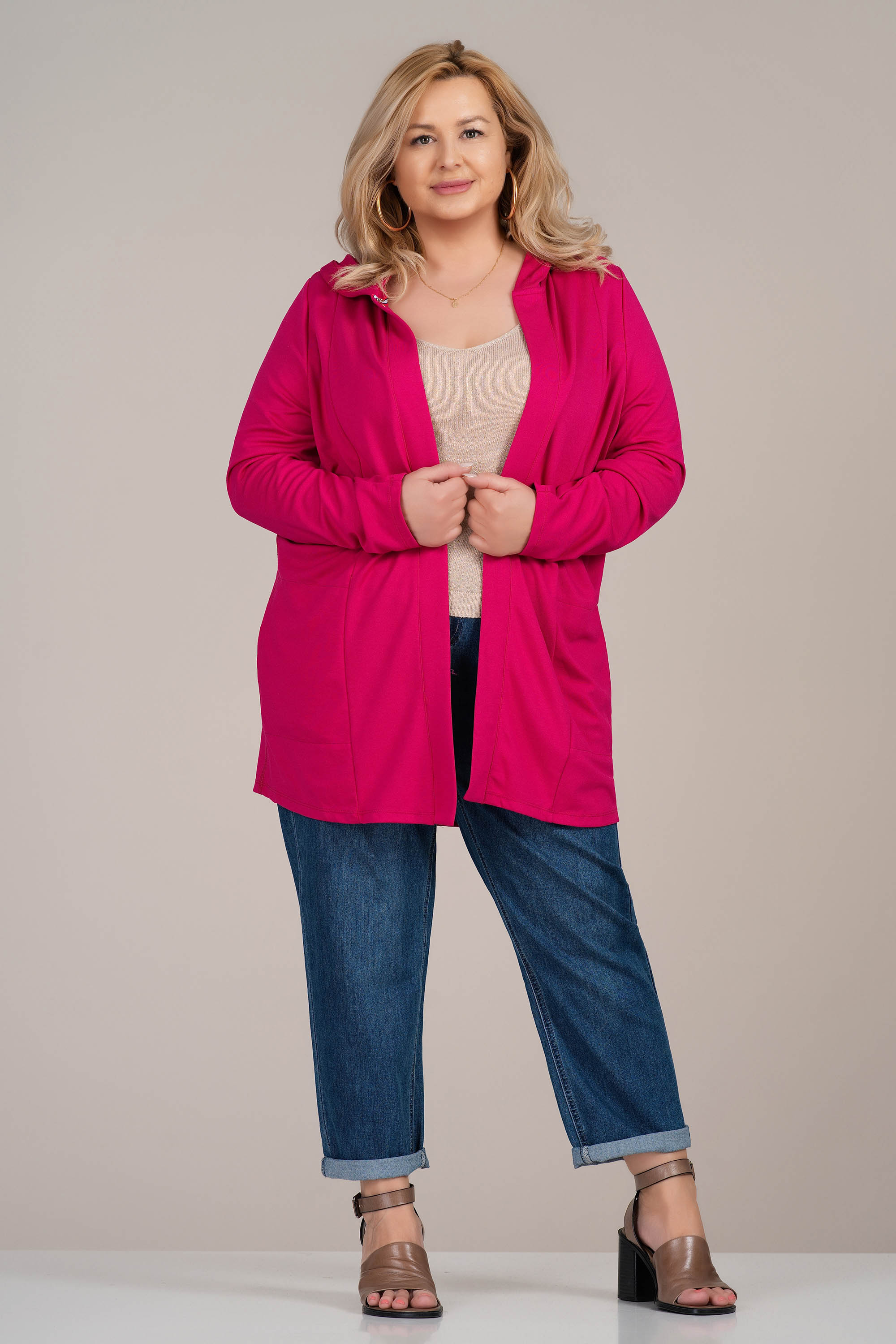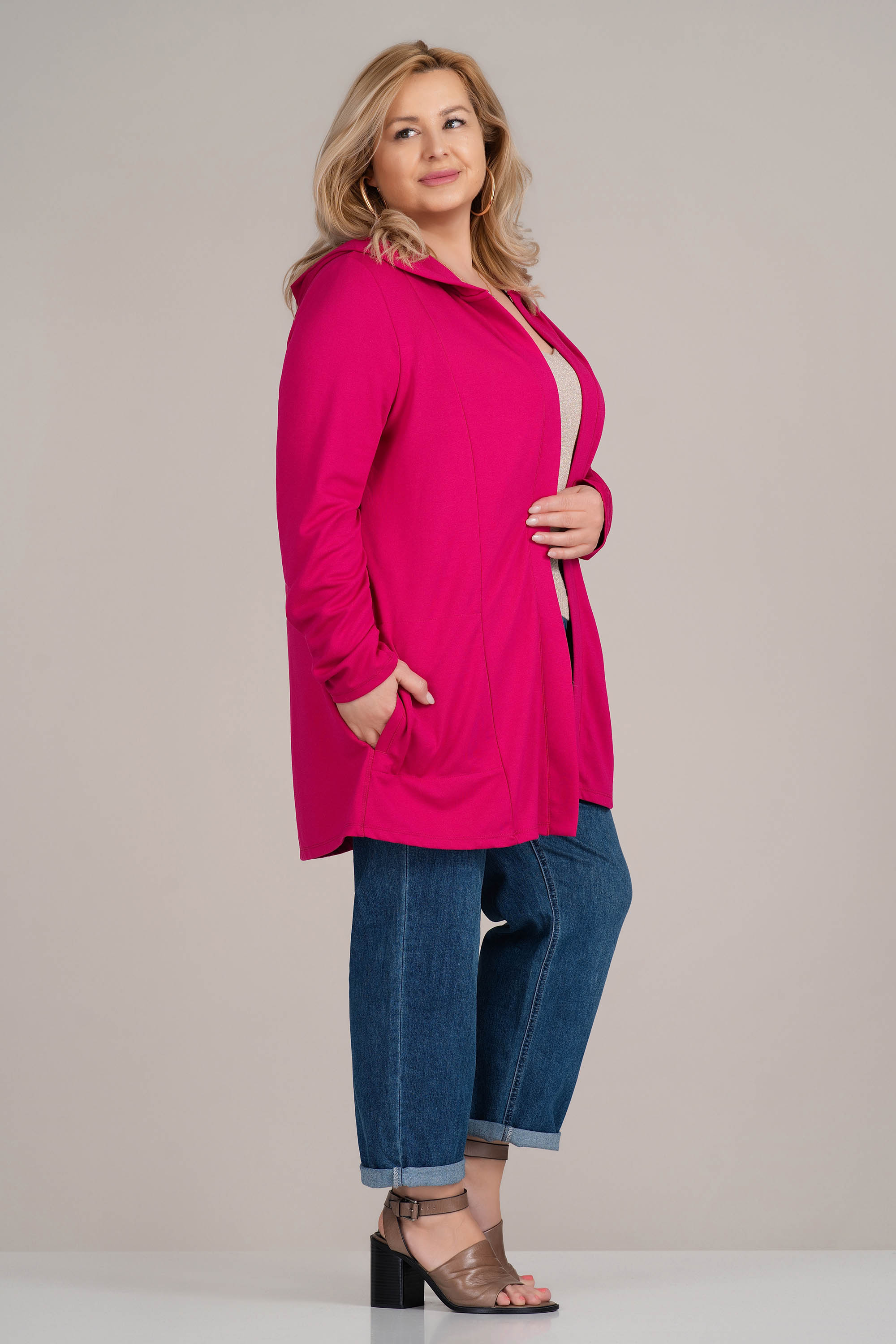 МАКСИ спортно сако в цикламено розово с качулка