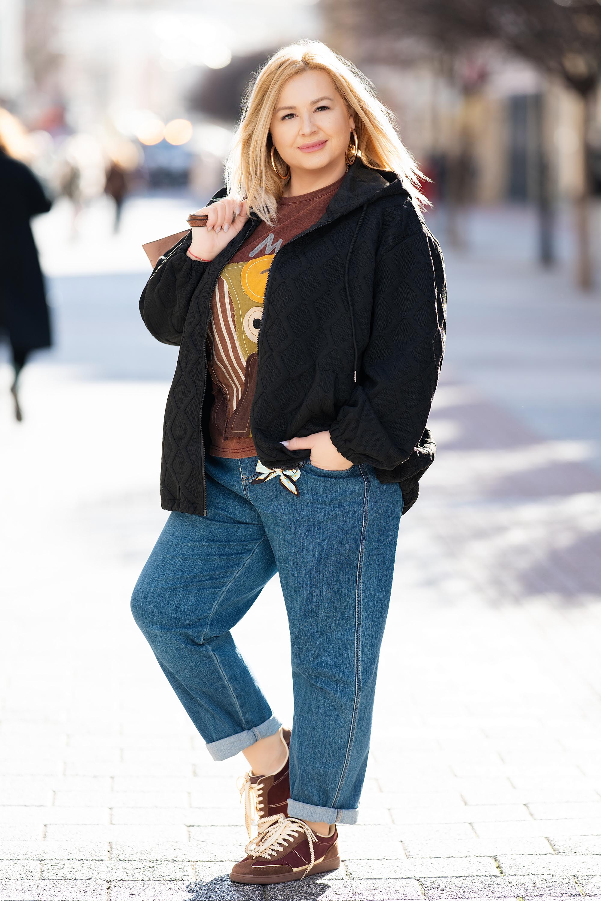 Създаден за комфорт и визия, този макси суитшърт в класическо черно се отличава с текстура тип ромбоиди и изчистена линия. Качулката с връзки и функционалният цип го превръщат в удобен избор за активното ежедневие. Отлично се комбинира с деним или спортен панталон за небрежно стилна визия.