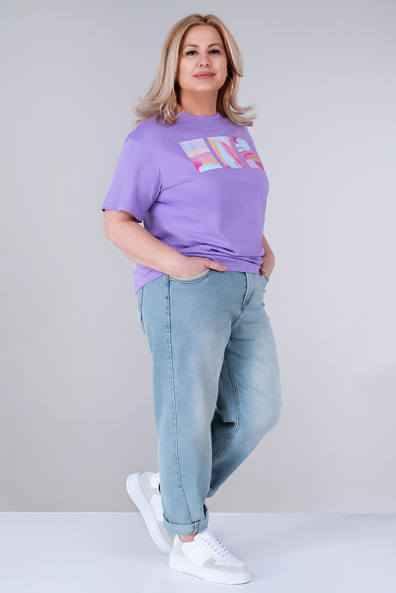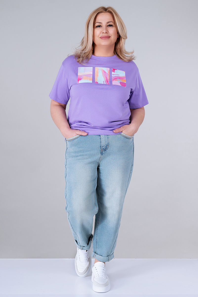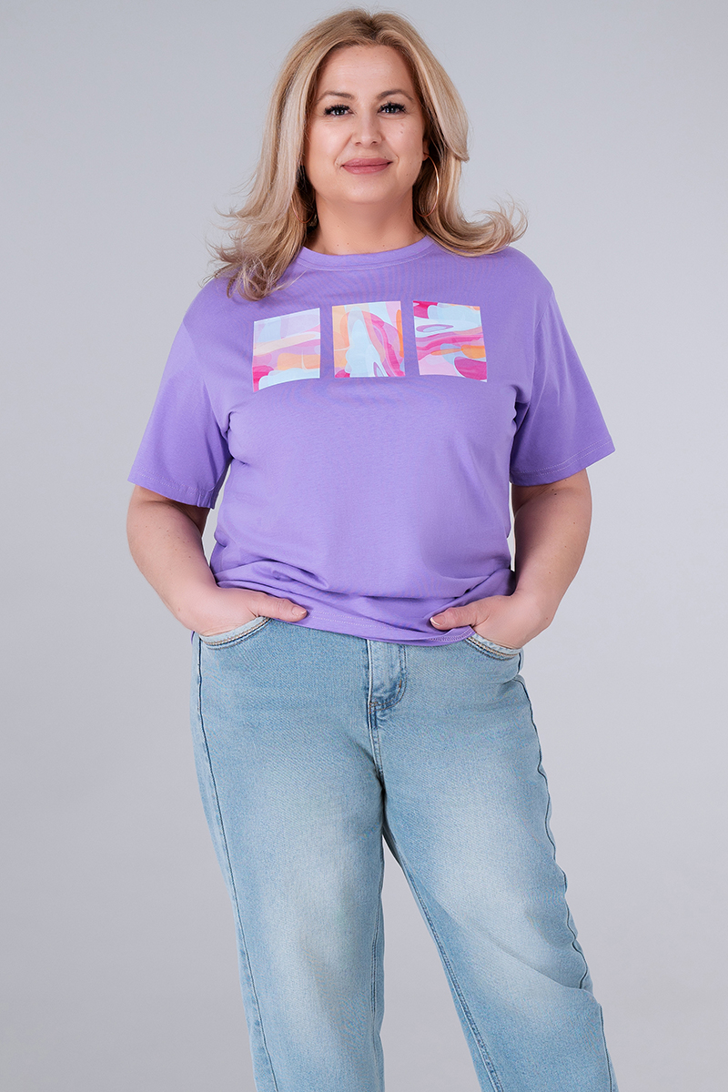 МАКСИ тениска от памук в лилаво с щампа правоъгълници с акварелен принт