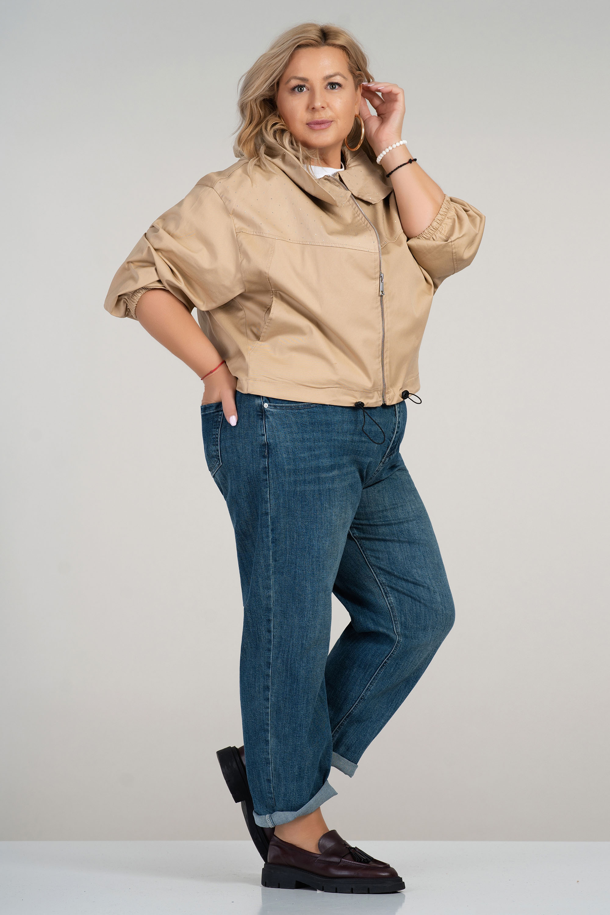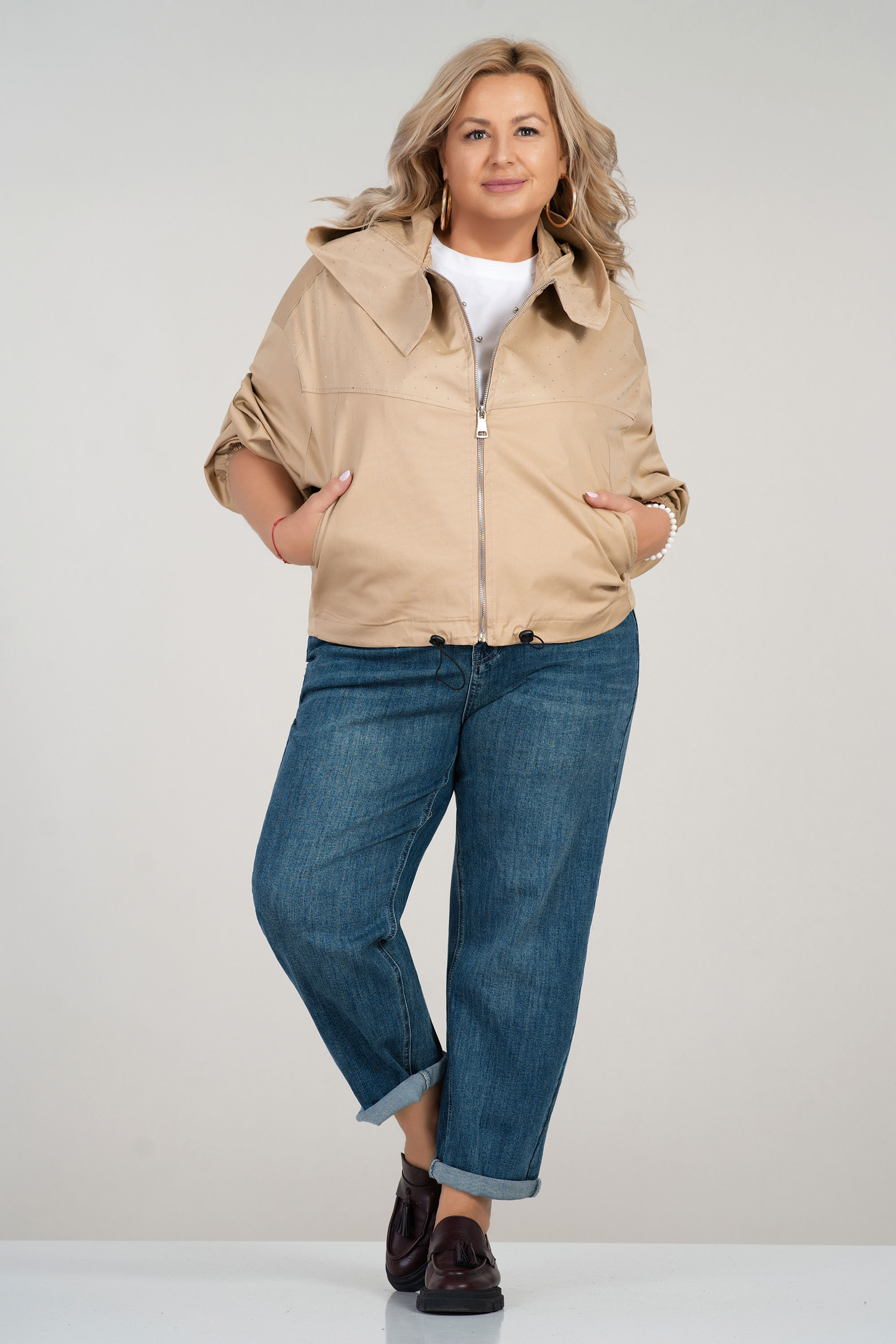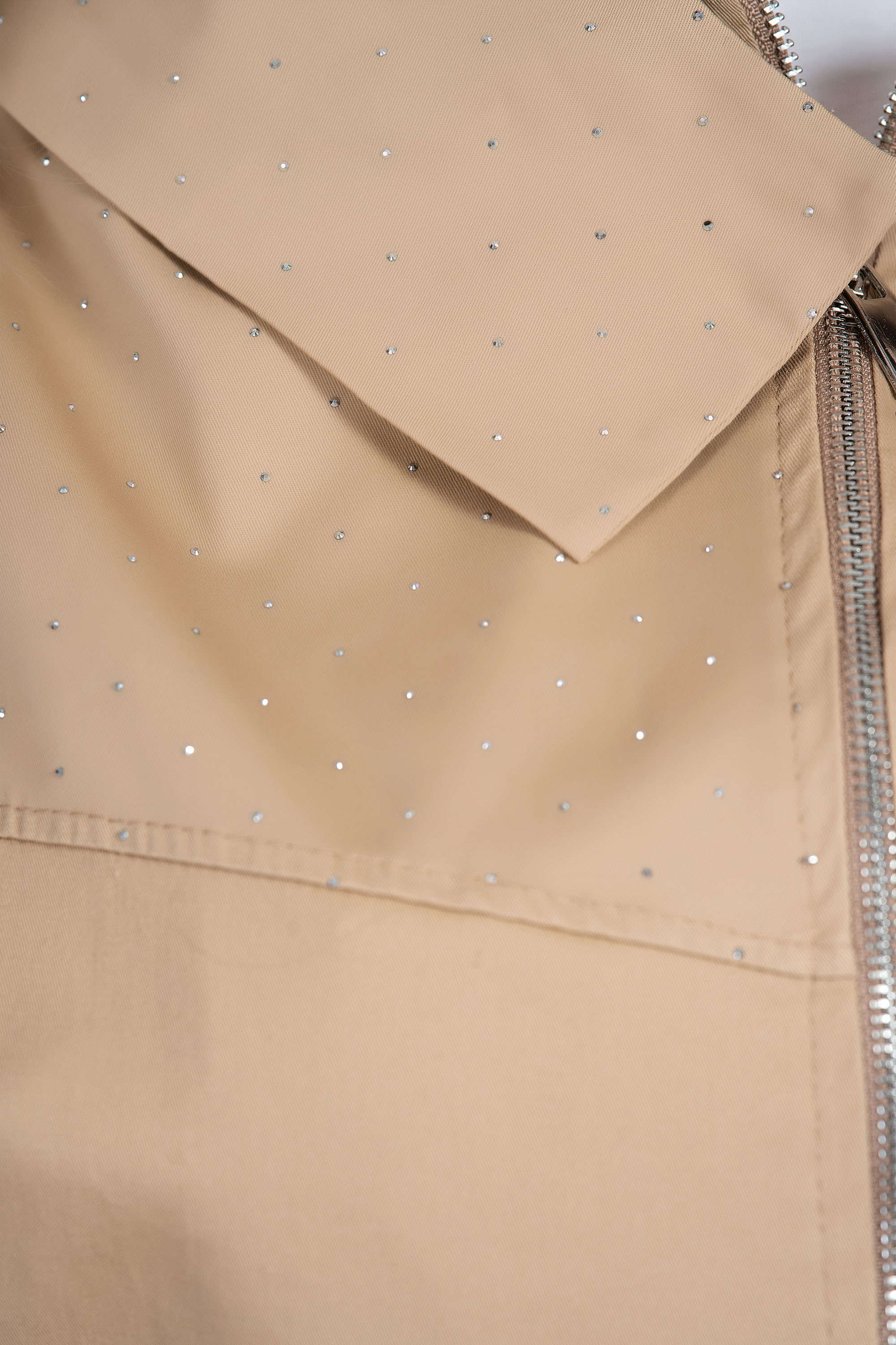 МАКСИ тънко яке в бежово с цип и декорирани ситни камъни