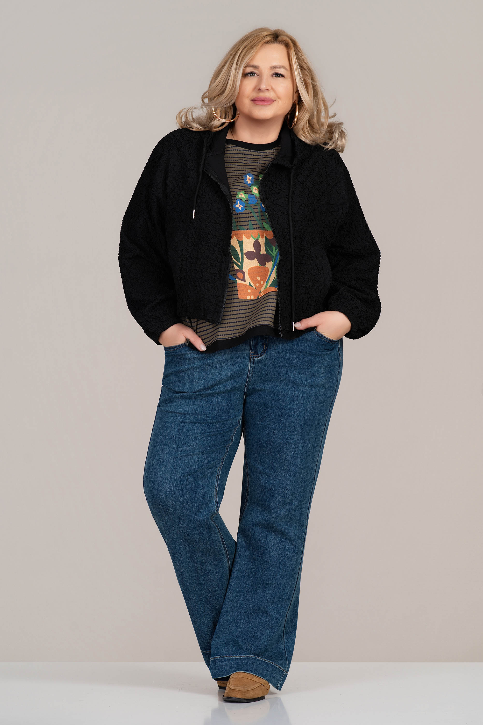 Леко и функционално, това пролетно яке е изработено от тънка материя с релефен принт. Кройката е права с връзки на талията за регулиране, а качулката добавя практичен щрих. Закопчаването с цип и джобовете го правят удобно решение за преходните сезони. Подходящо за градска визия и ежедневно носене.