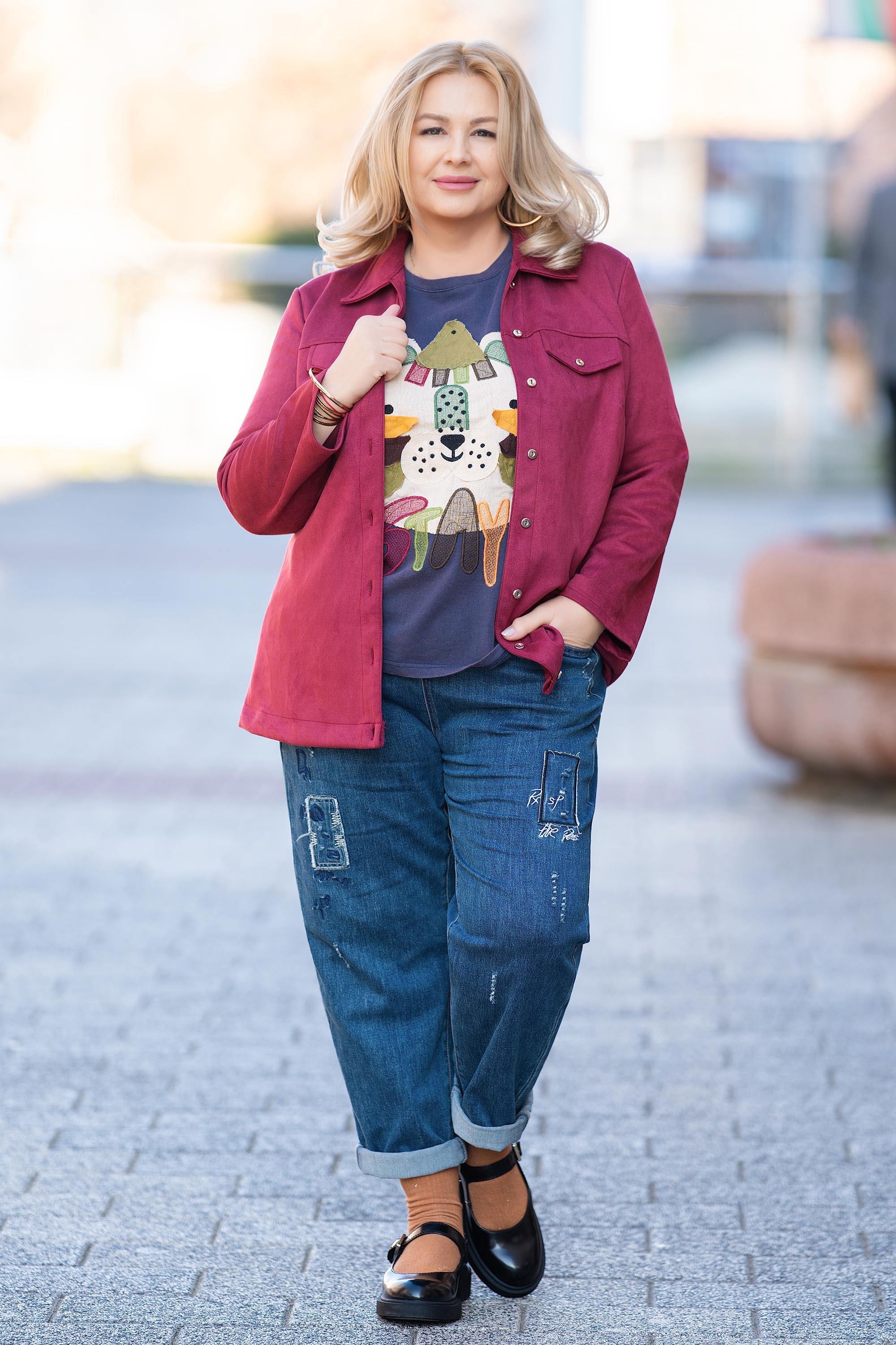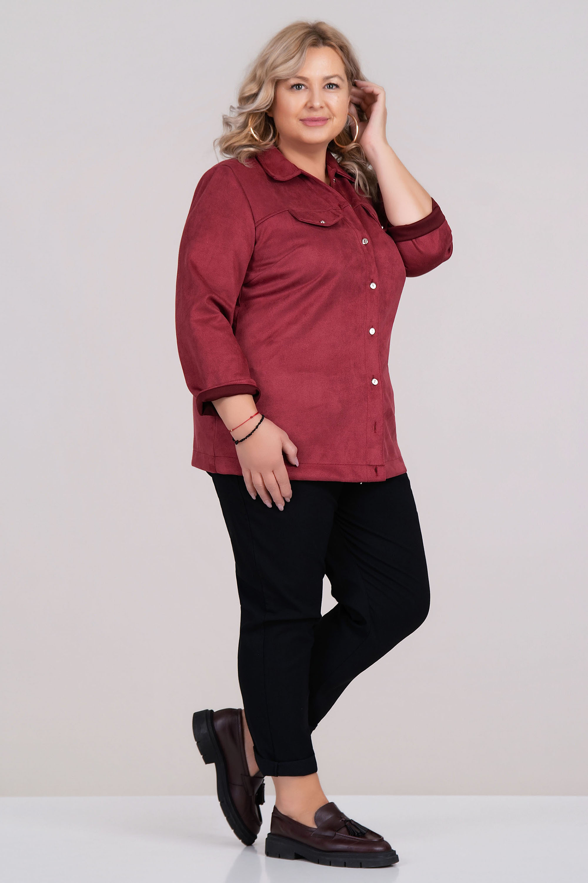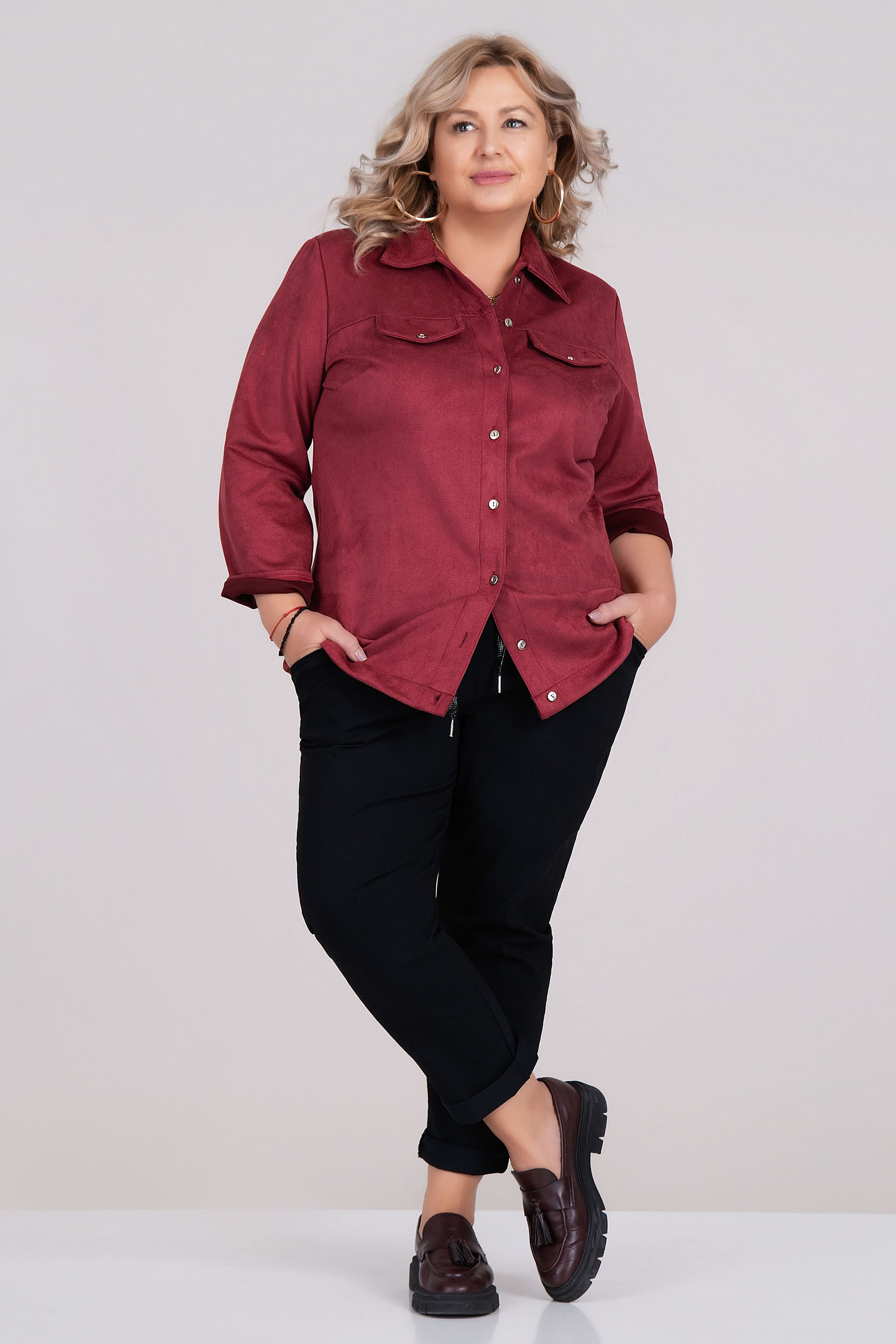 Модерно макси яке в тъмнорозово, съчетаващо комфорт и свобода на движение. Изработено от кадифен велур с визия на риза, с прав силует и акцент върху функционалните джобове със стилни метални копчета. Моделът е чудесен избор както за градски разходки, така и за по-ежедневни поводи съчетавайки практичност и удобство с модерен дизайн. Лесно се съчетава с дънки и панталони през преходните сезони.
