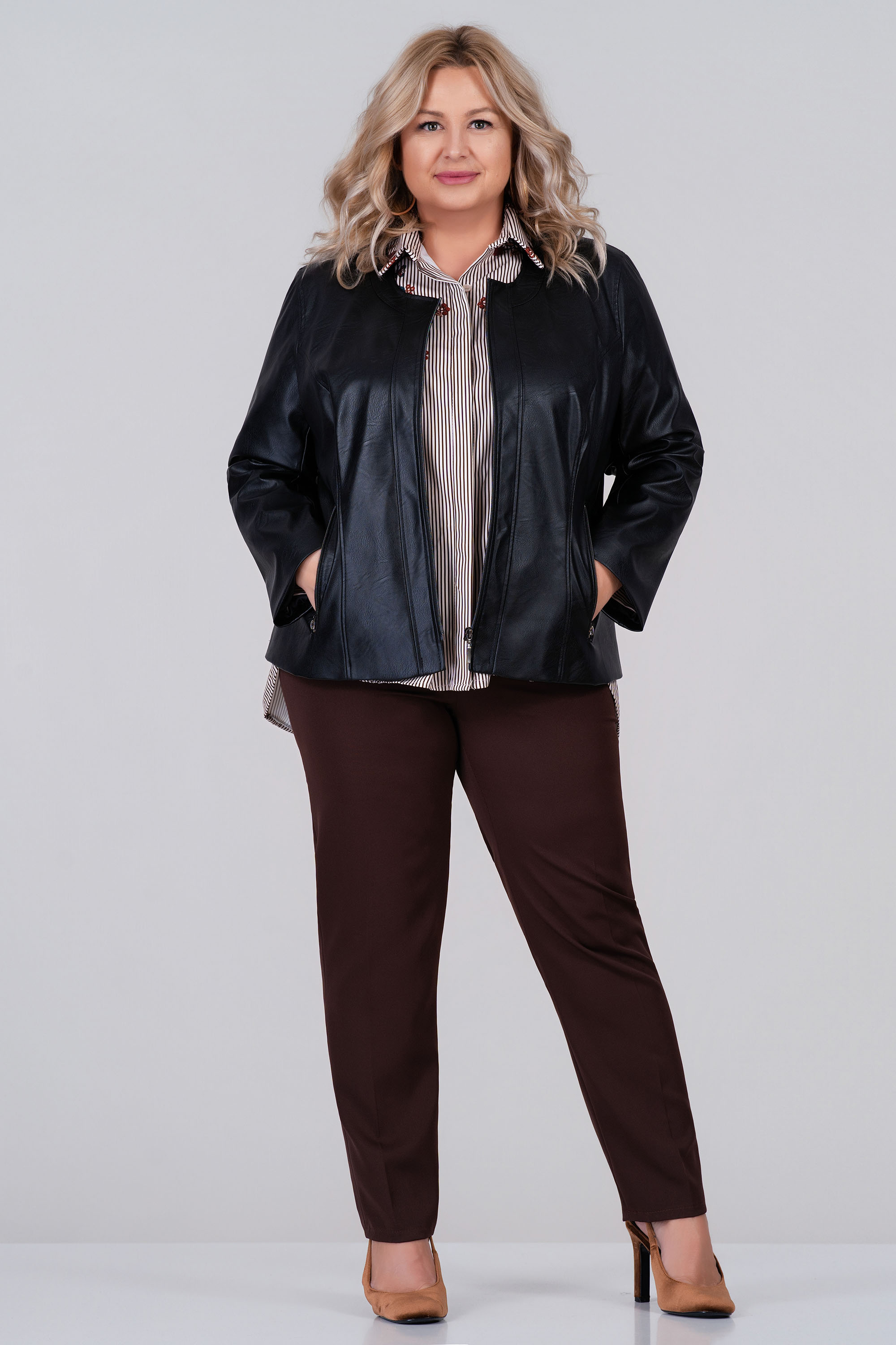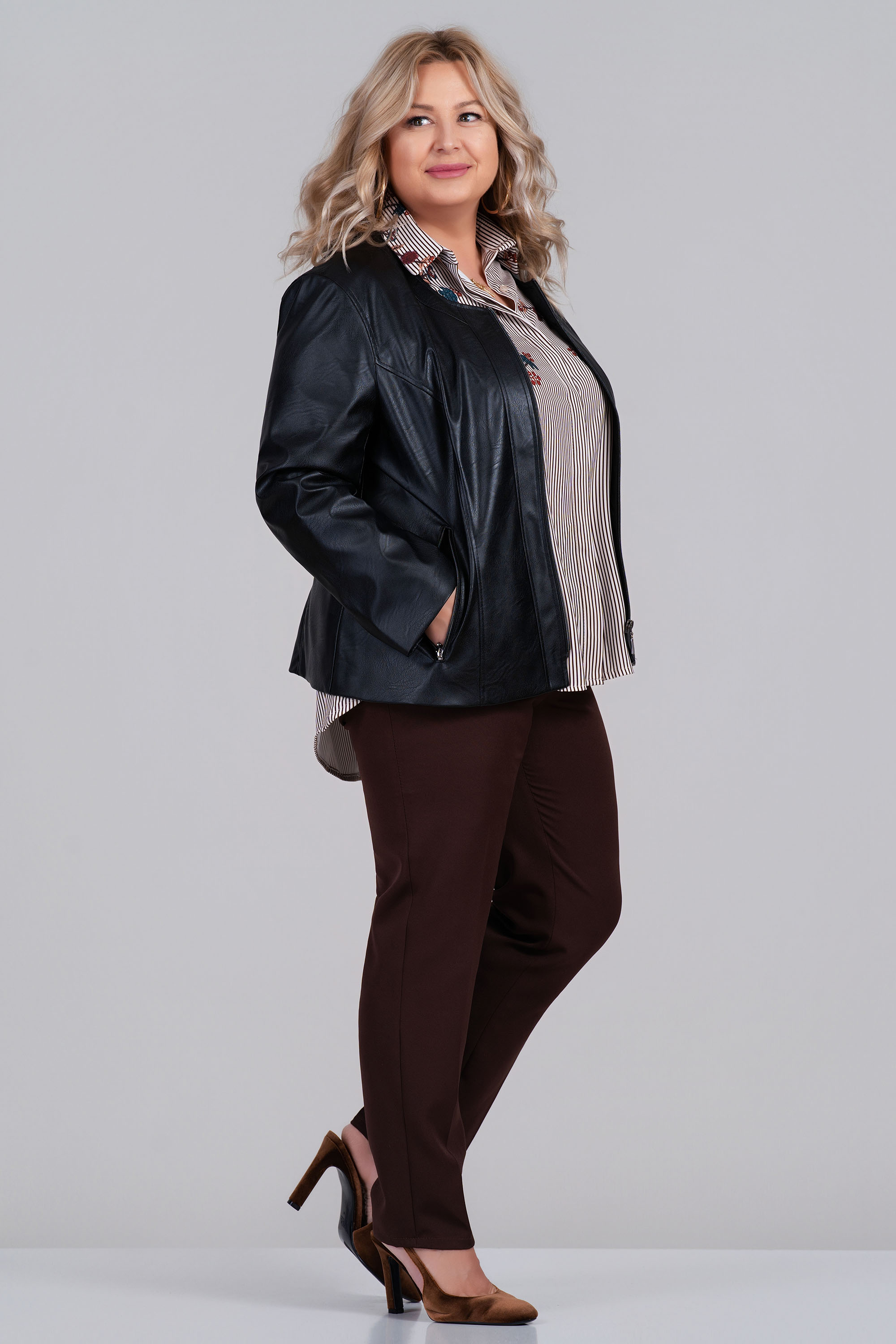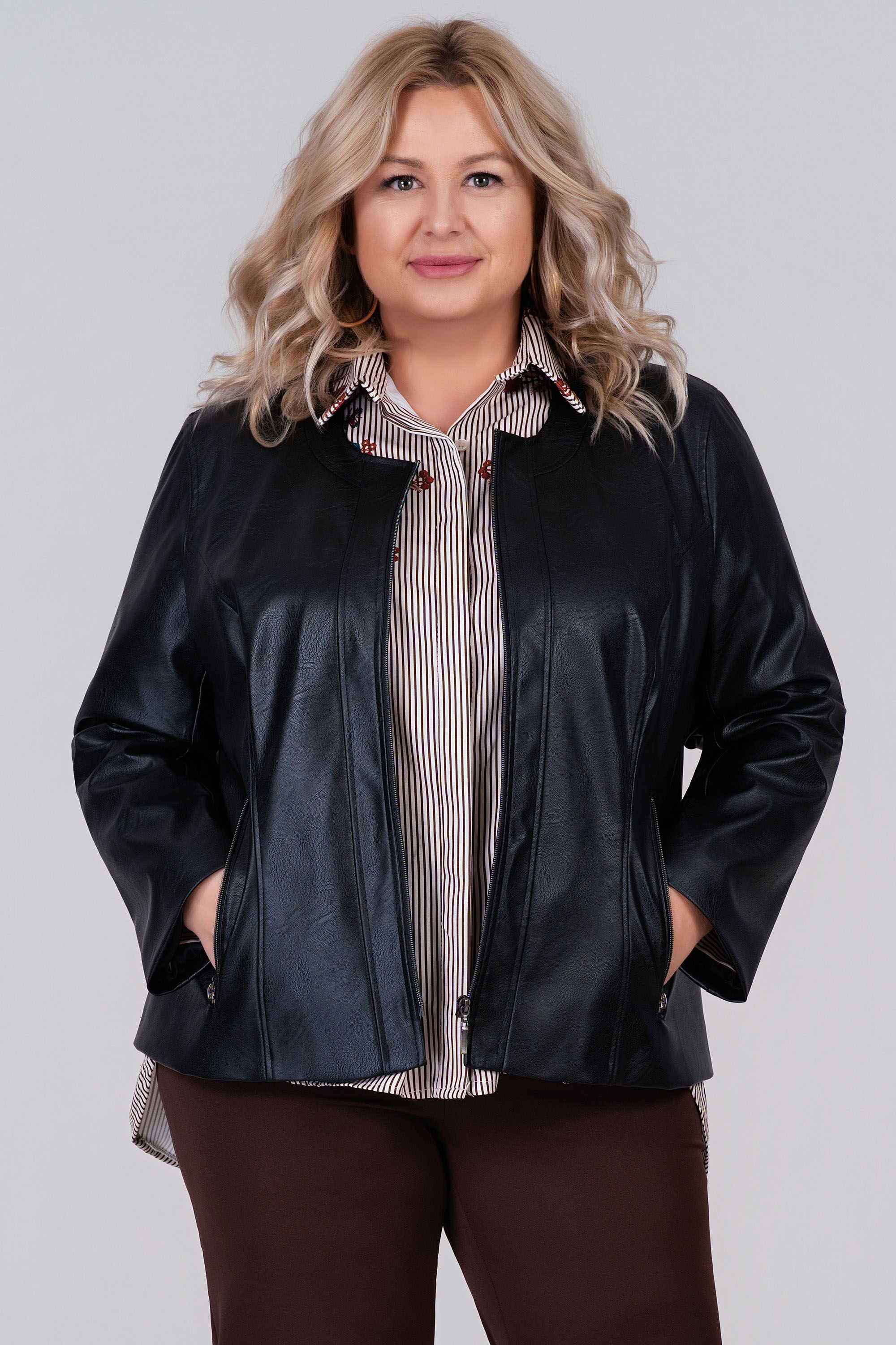Вечна класика- черно макси яке от еко кожа- стилна и универсална връхна дреха, която съчетава модерна визия и практичност. Дизайнът е изчистен и минималистичен, със силует в права и леко вталена линия, която подчертава фигурата, без да бъде прекалено прилепнала. Дължината достига до ханша, което го прави универсално и удобно за съчетаване с поли, рокли и панталони. Закопчава се с цип отпред. Изработено е от висококачествена еко кожа с лек сатиниран блясък, която е едновременно мека и гъвкава, но и достатъчно устойчива. Цветът е класическо черно, подчертаващо елегантността и позволяващо лесно комбиниране с всякакви цветове и десени. Детайлите включват дискретни странични джобове, скрити в шева за по-изчистен силует, както и фини и равномерни шевове. Вътрешната подплата е лека и комфортна, създаваща приятно усещане при носене. Това яке е изключително подходящо за разнообразни поводи – може да се носи ежедневно върху рокля с принт или в комбинация с дънки и тениска за непринуден стил, а също така стои чудесно и в офис среда върху панталон и риза. За вечерни излизания се комбинира отлично с елегантна рокля и обувки на ток.