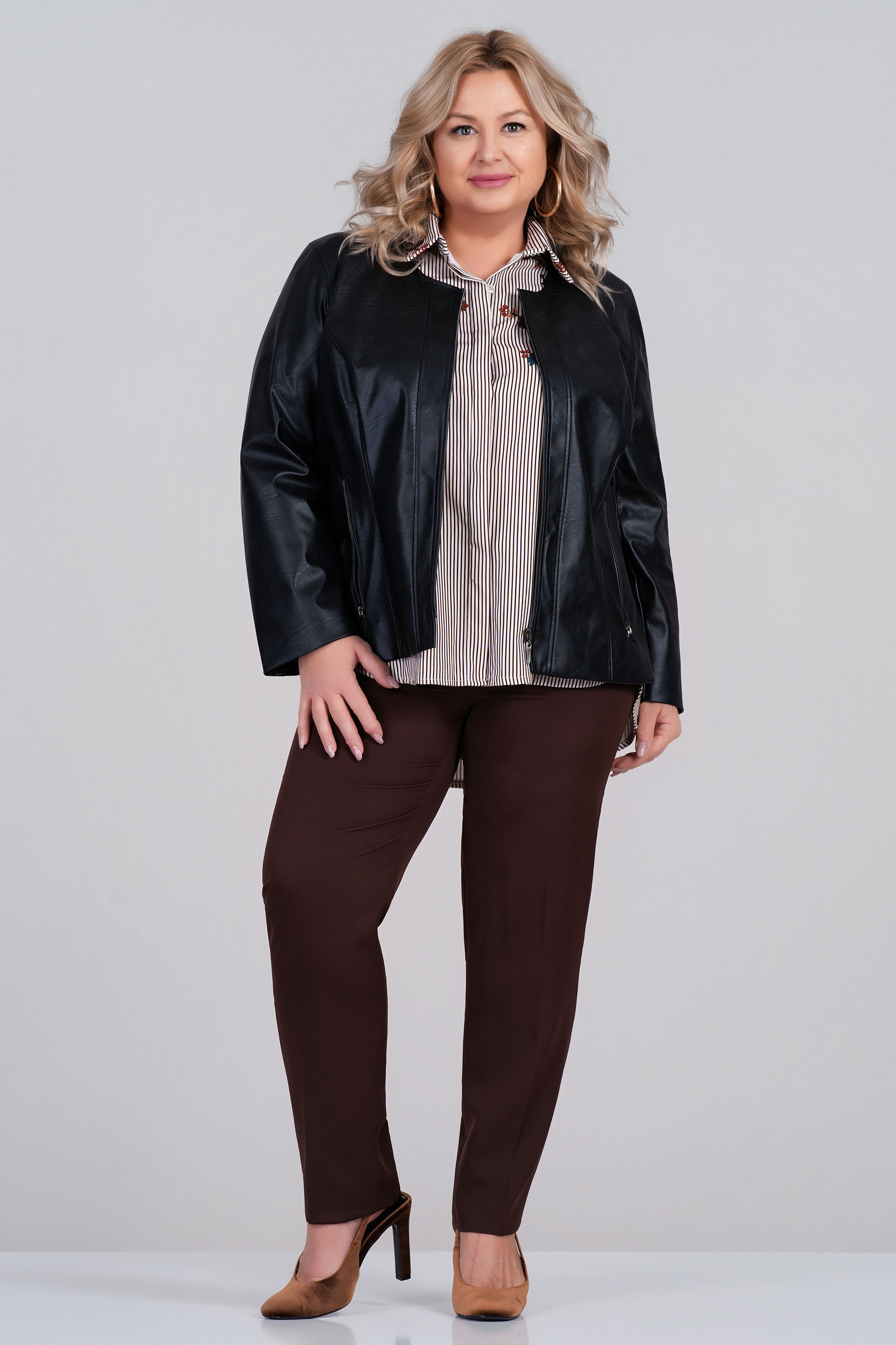 Моделът е висок 165см. и е облечен с размер 50
